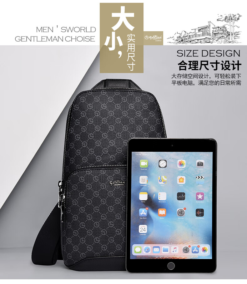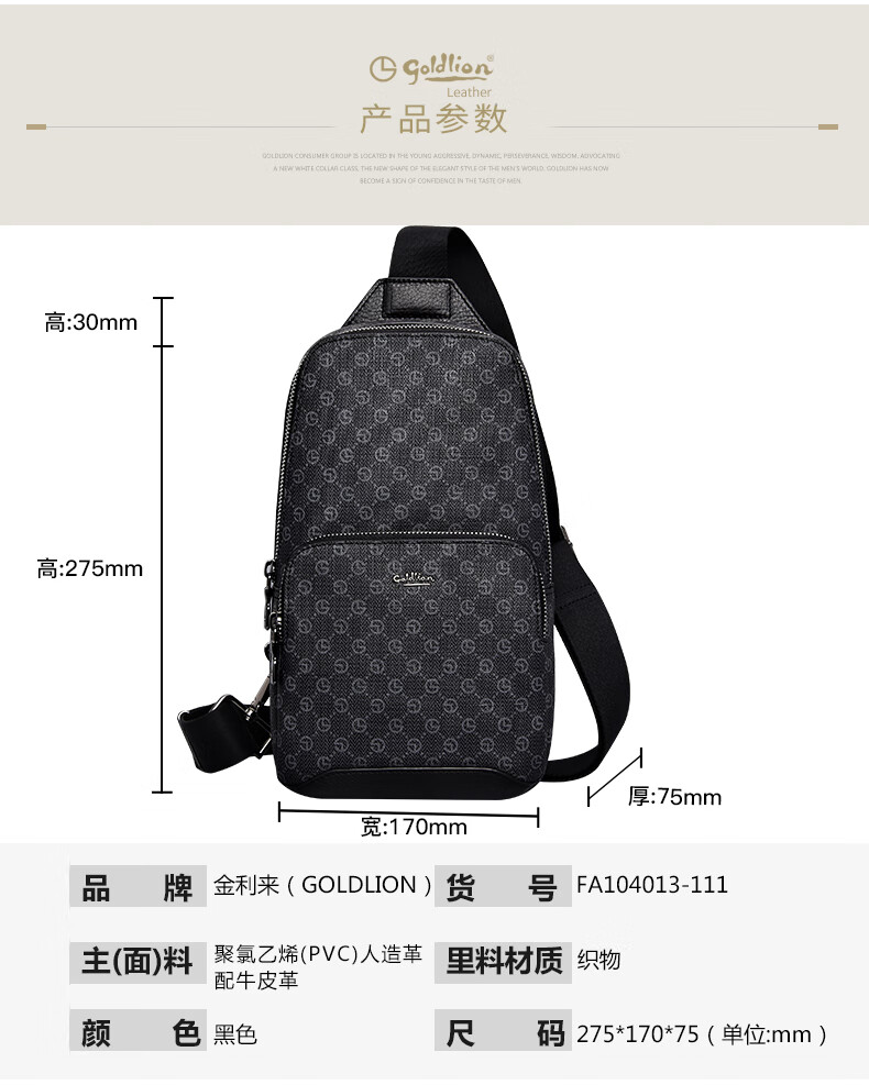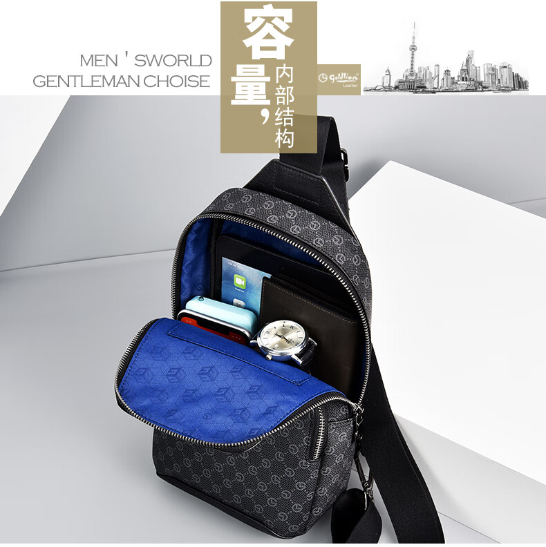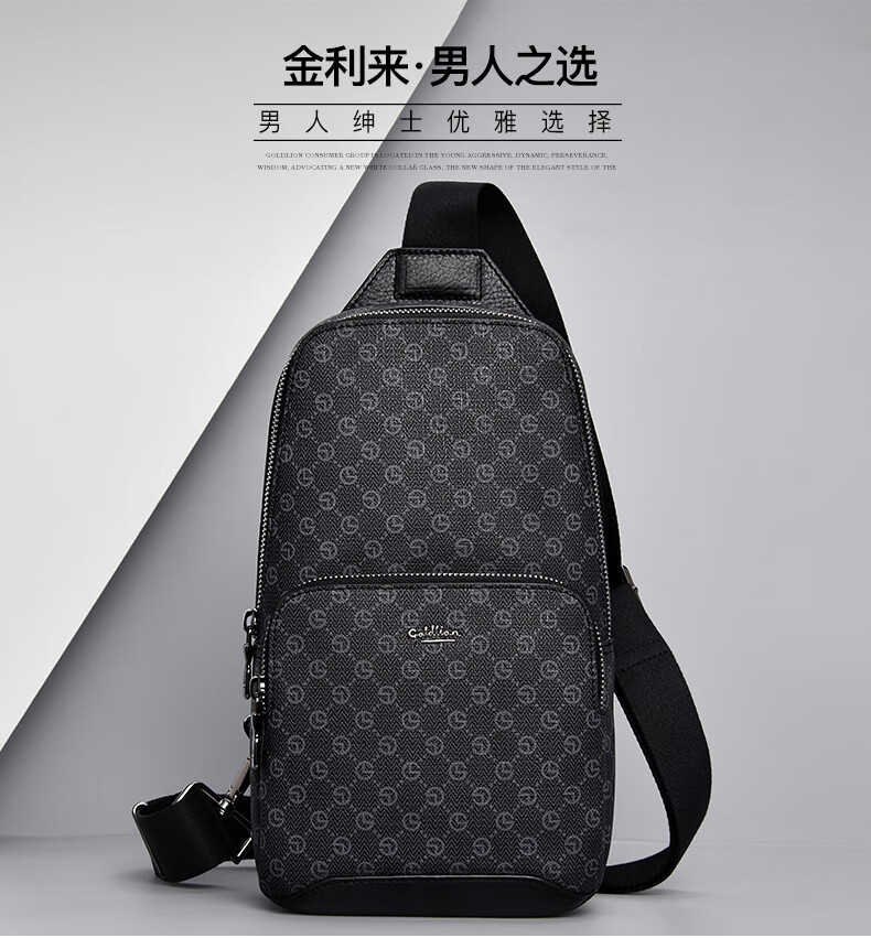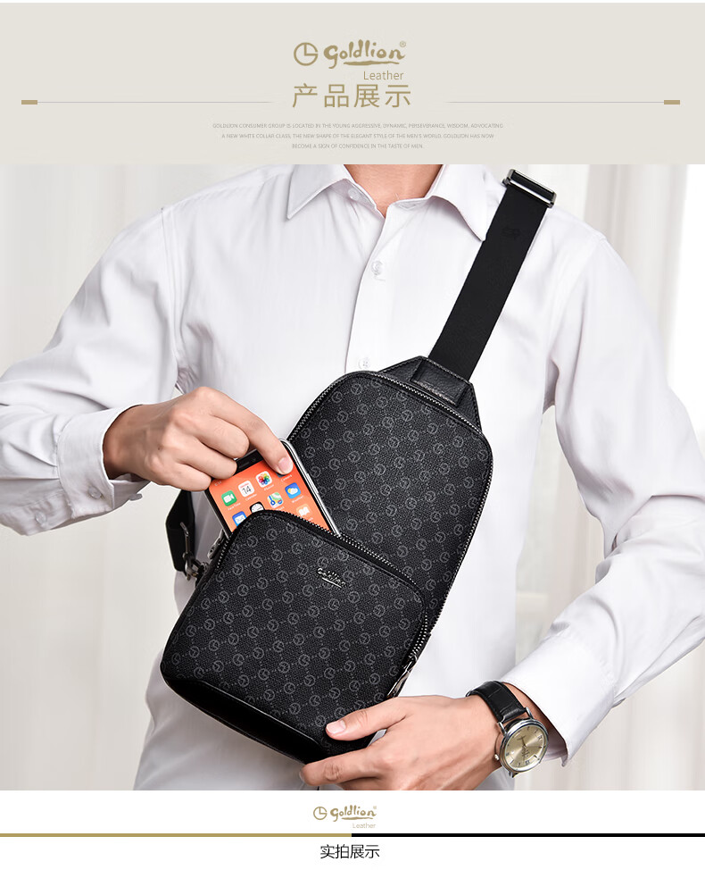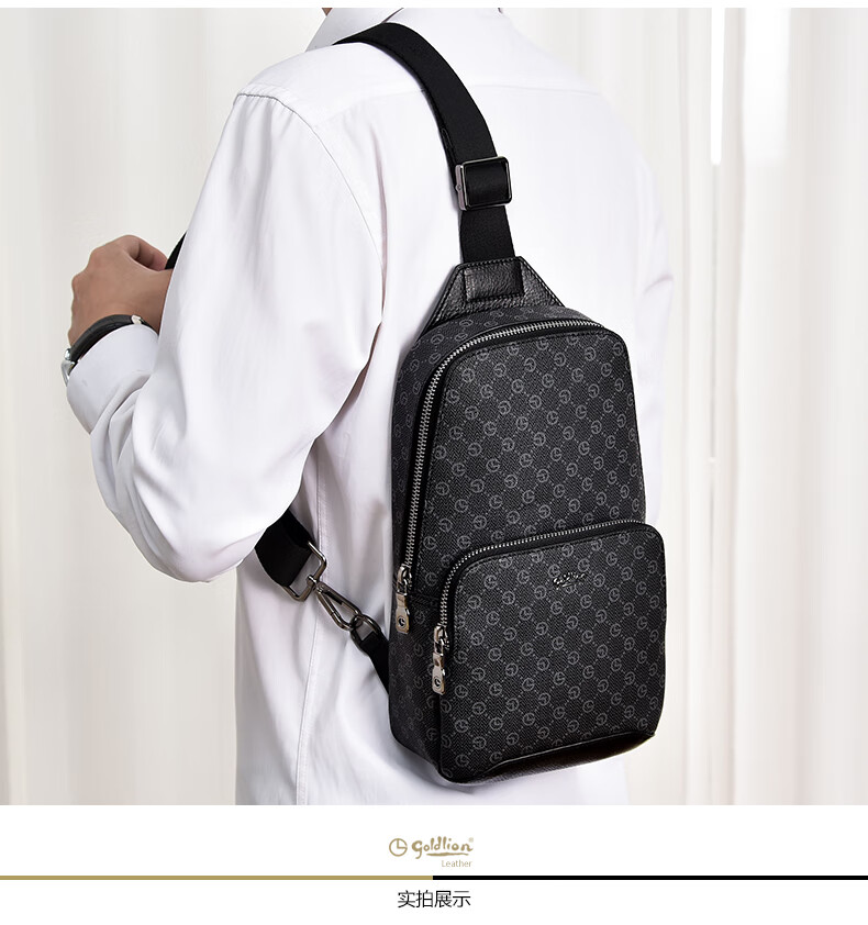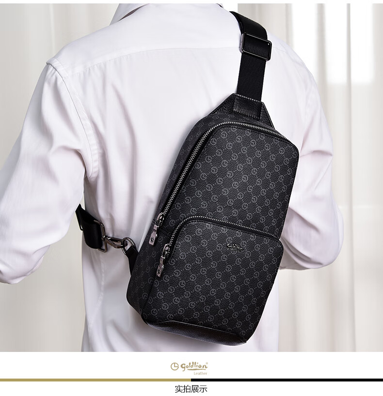 Goldlion Chest Bag Men's 2024 New Shoulder Bag Business Fashion Backpack Crossbody Shoulder Bag Men's Style 1 Dark Gray
