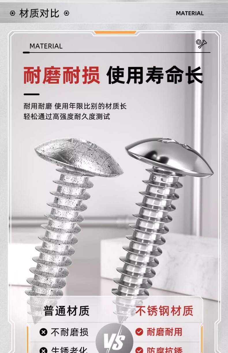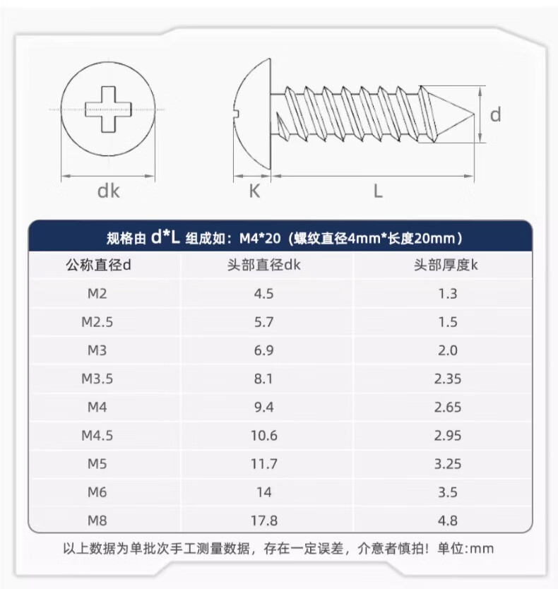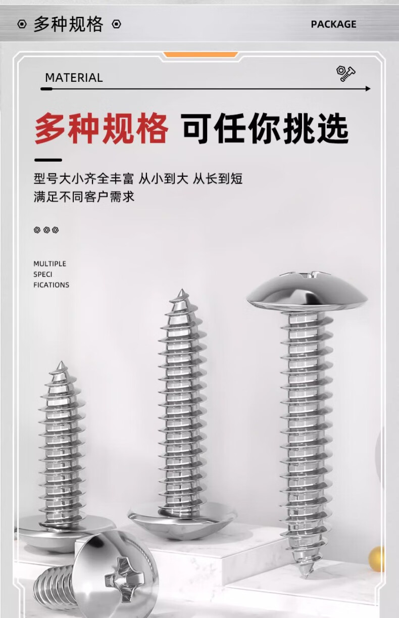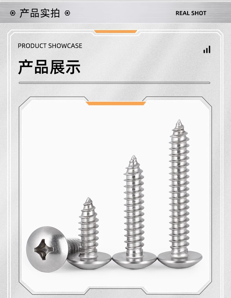 Fengji 304 stainless steel cross large flat head self-tapping screws mushroom head wood screws flat head umbrella head round head M3M4M5M6 M6*60-5 only