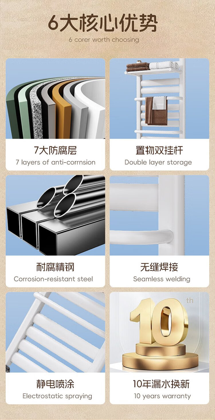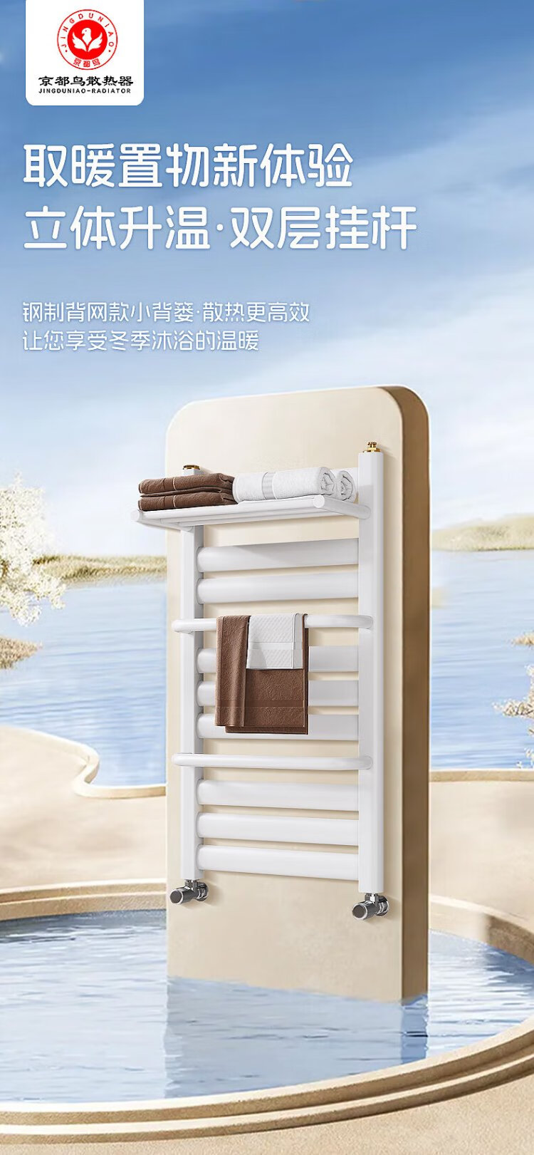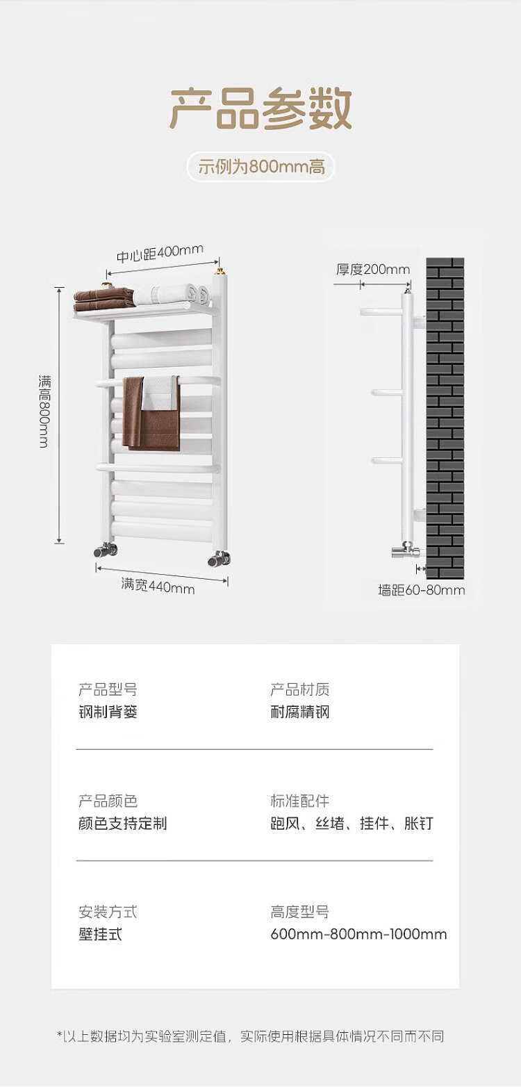 Kyoto Bird Steel Small Back Basket Radiator Household Plumbing Bathroom Toilet Central Heating Wall-Mounted Radiator Steel Classic - High 800 400 Center - Matt White