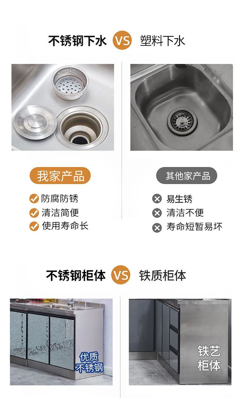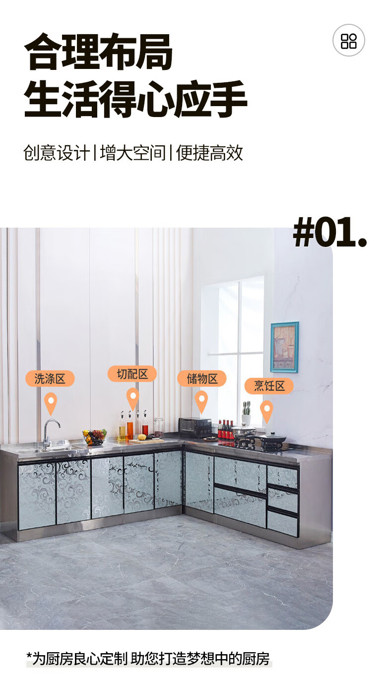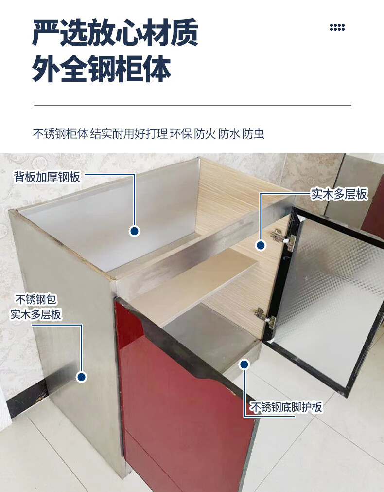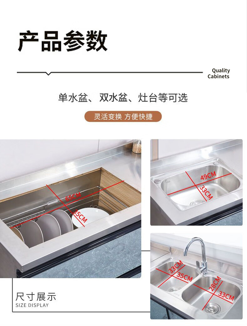 Qinkai stainless steel kitchen cabinets, stove cabinets, integrated combination household storage cupboards, rental house combination cabinets, economical main picture