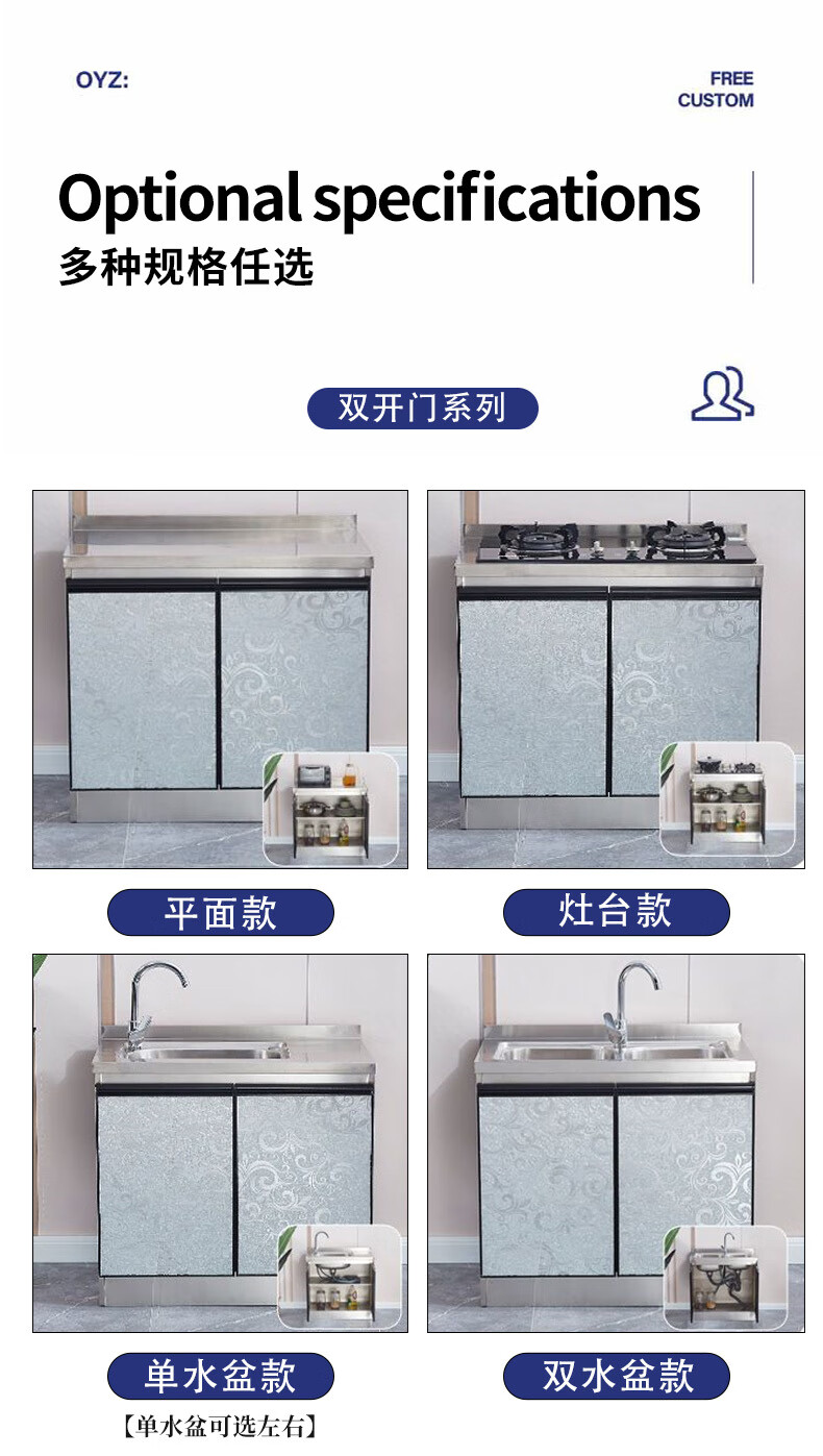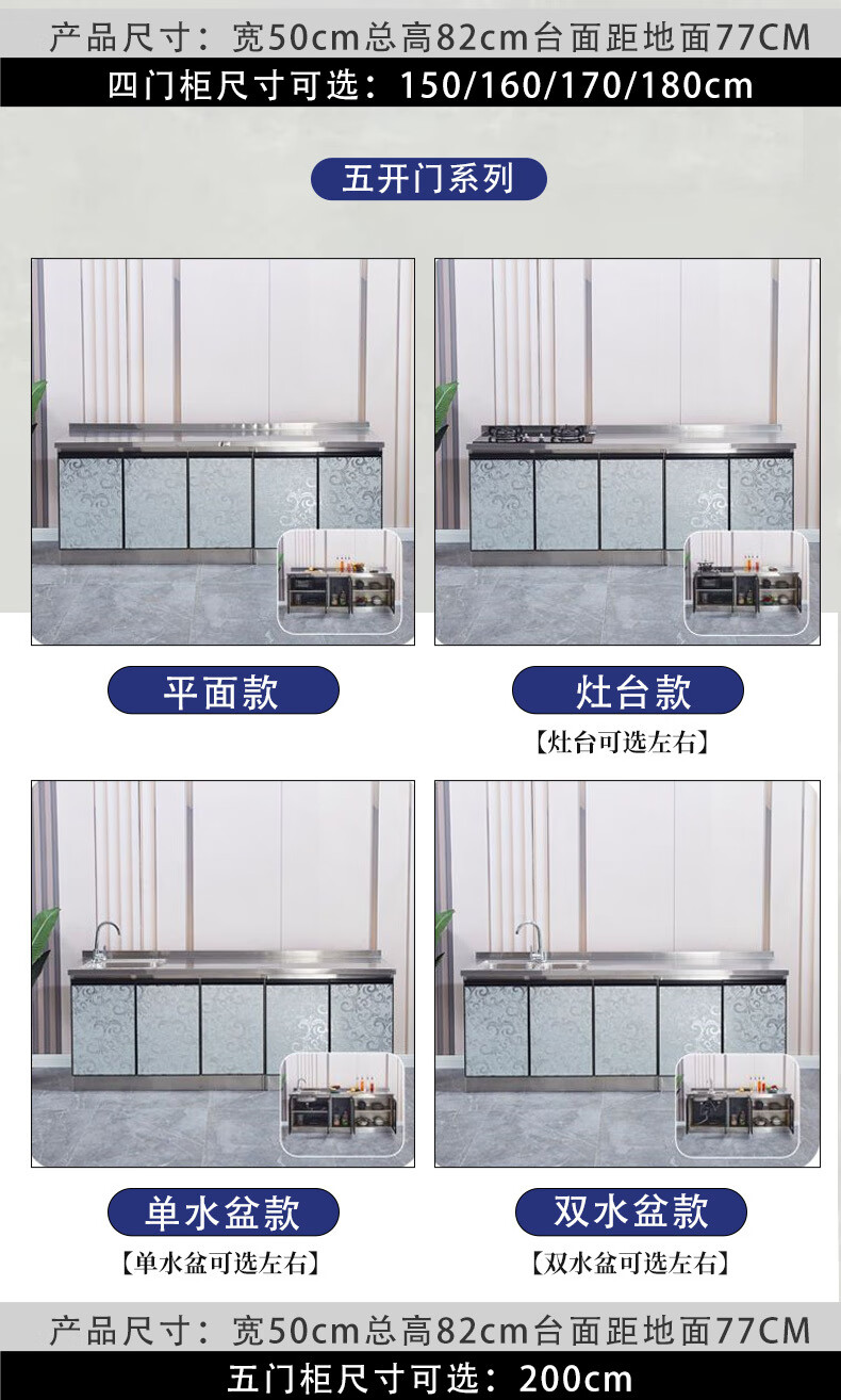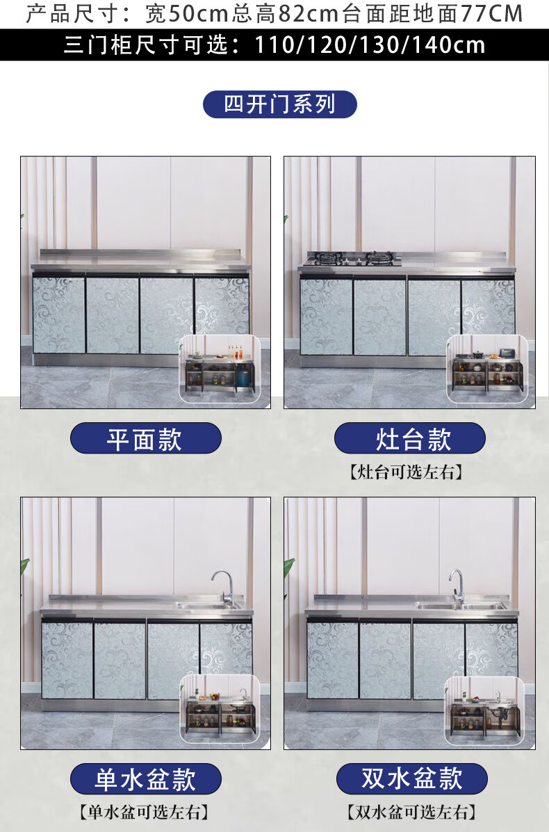 Qinkai stainless steel kitchen cabinets, stove cabinets, integrated combination household storage cupboards, rental house combination cabinets, economical main picture