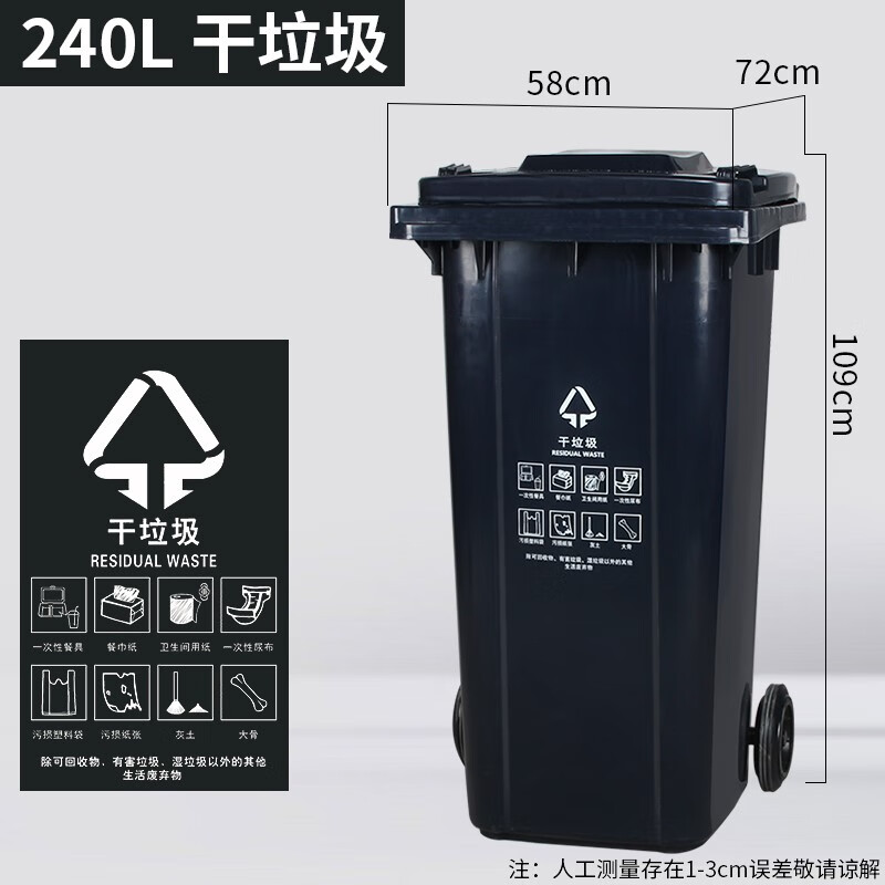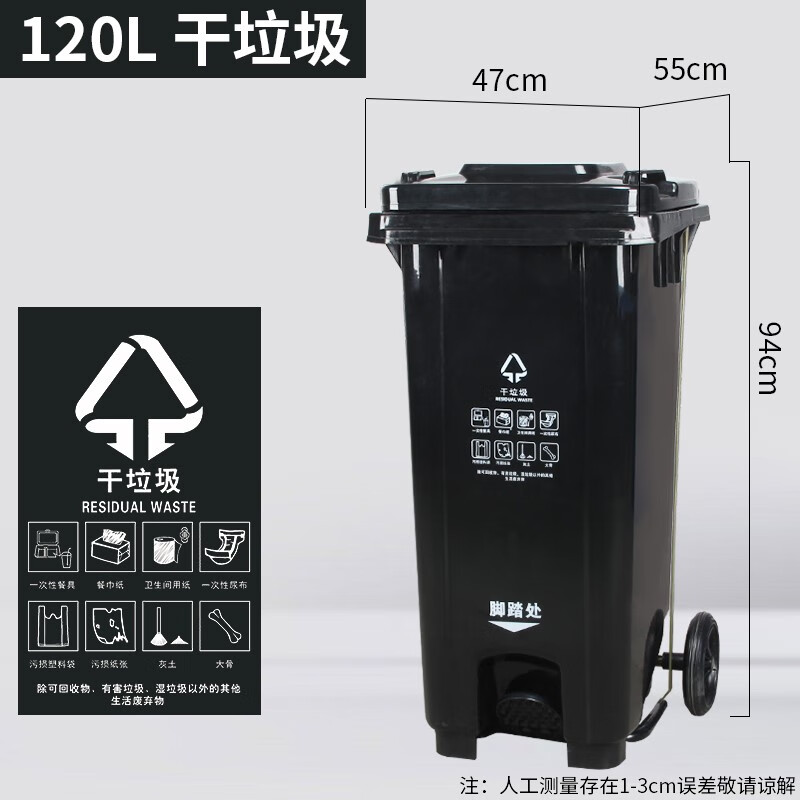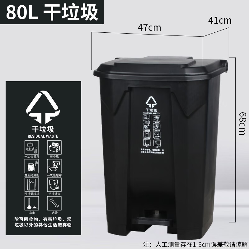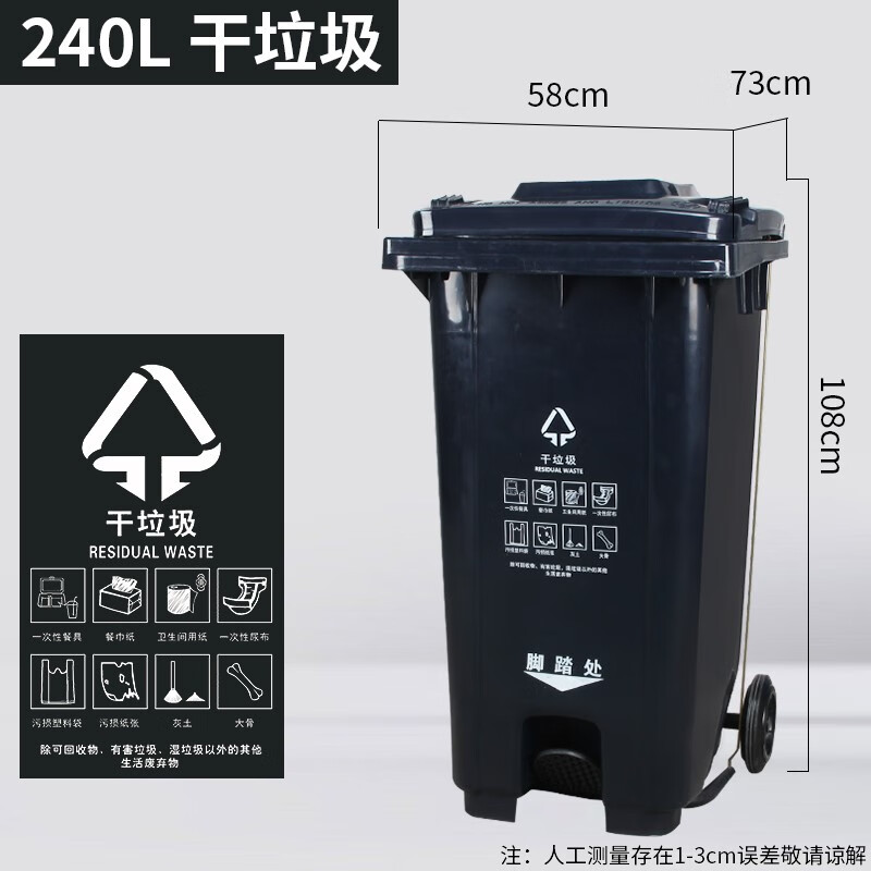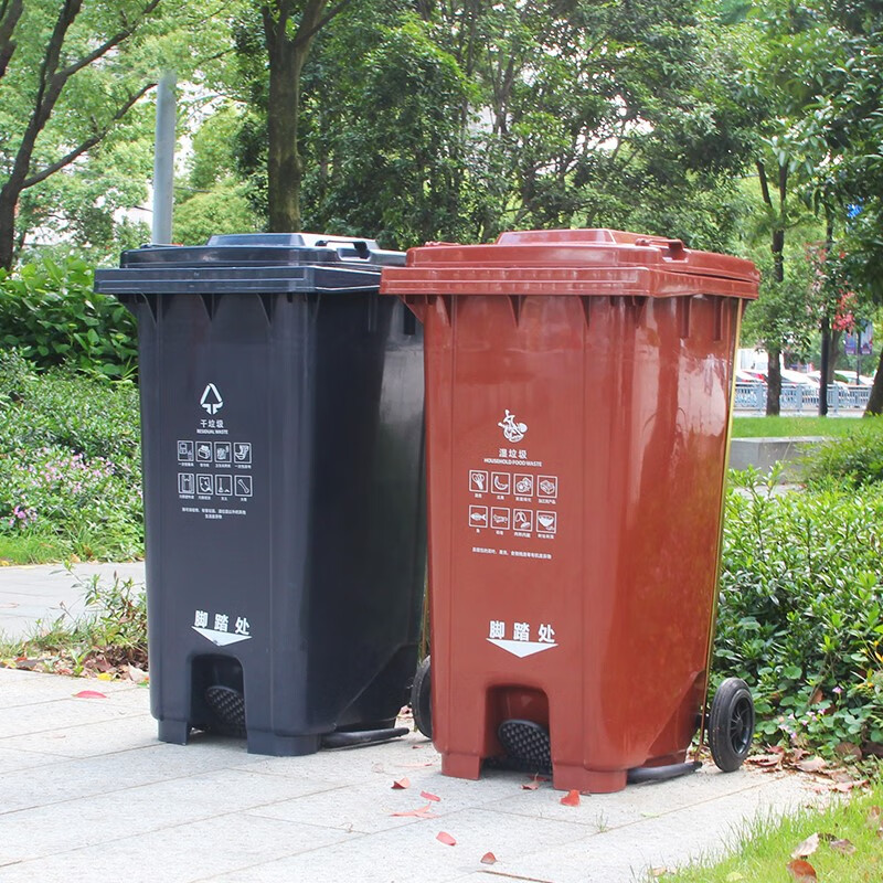 240L Shanghai dry and wet classification trash can outdoor commercial large-capacity large foot-operated wheeled and covered foot-operated 50 80L extra thick foot-operated black dry garbage