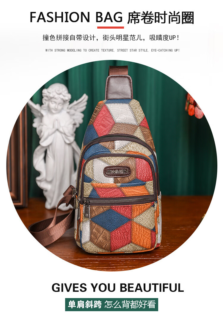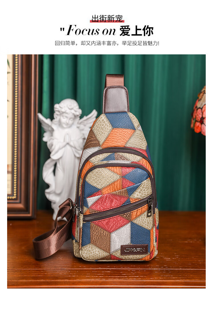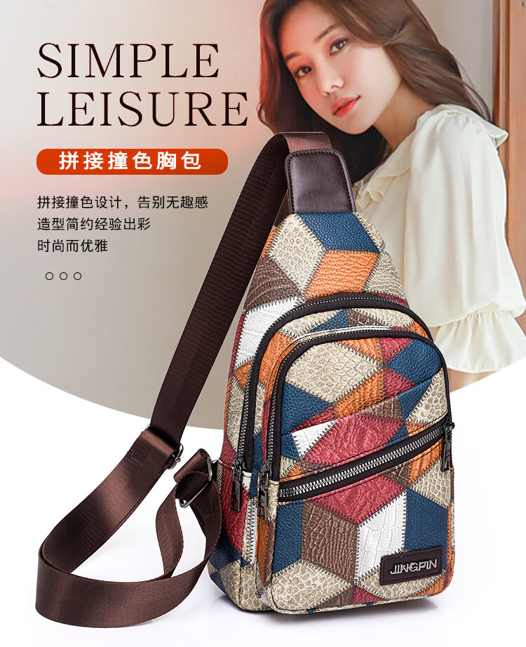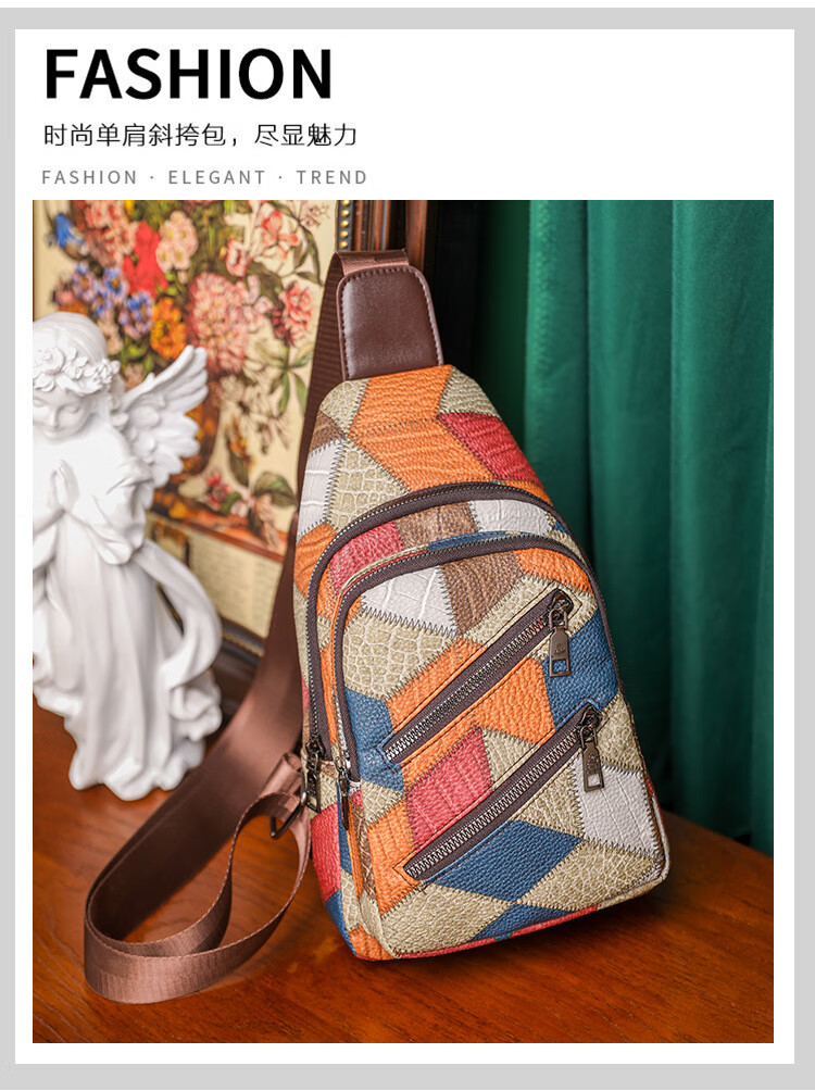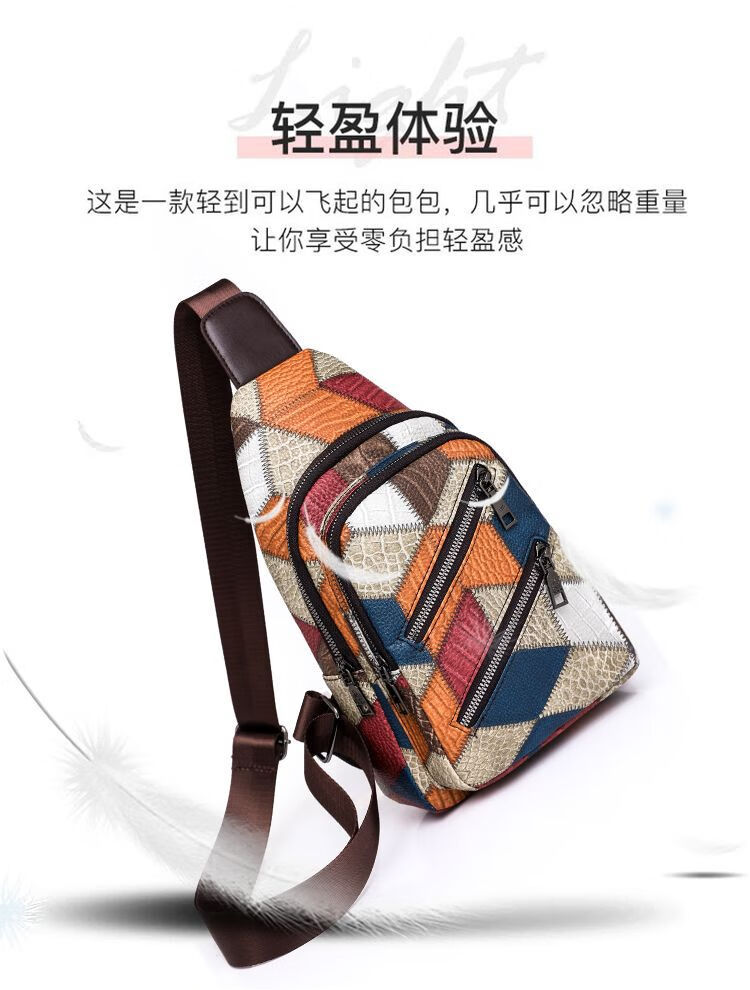 Kangaroo women's trendy, comfortable and casual soft leather new Korean style fashionable and versatile one-shoulder cross-body printed coin chest bag single zipper