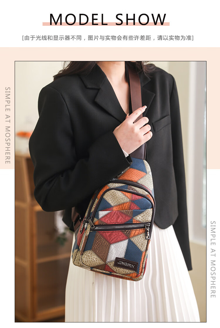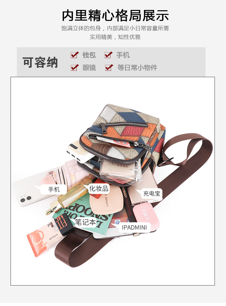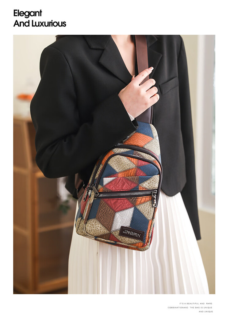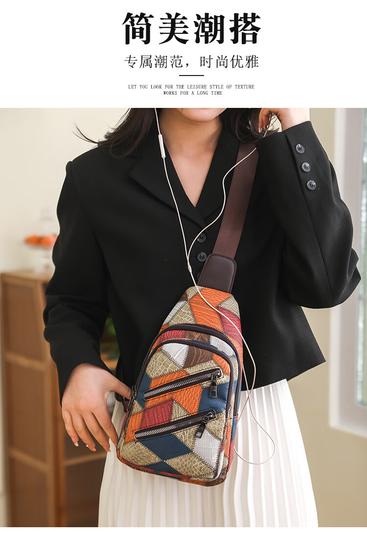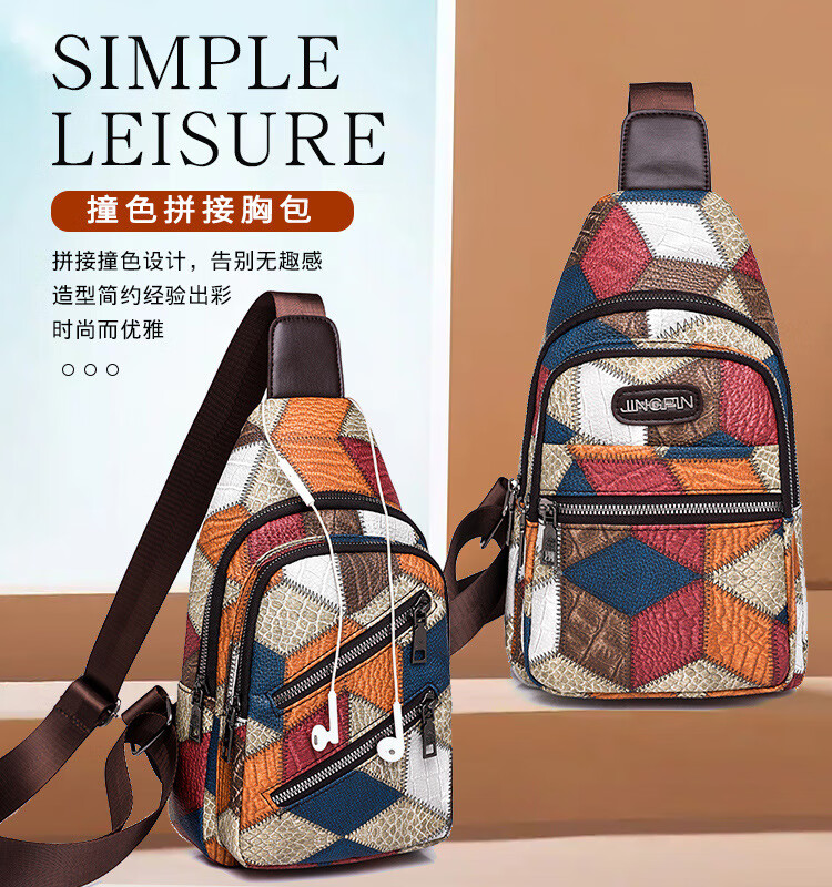 Kangaroo women's trendy, comfortable and casual soft leather new Korean style fashionable and versatile one-shoulder cross-body printed coin chest bag single zipper