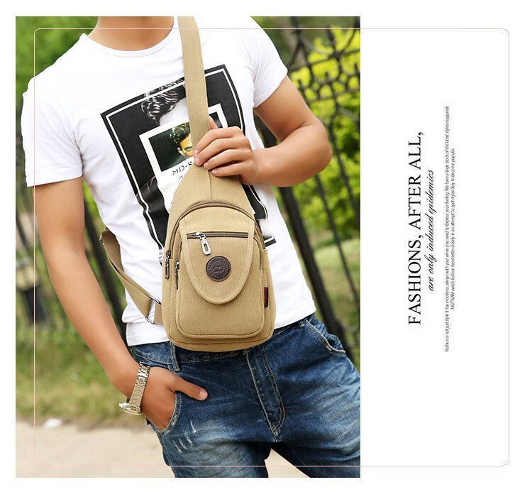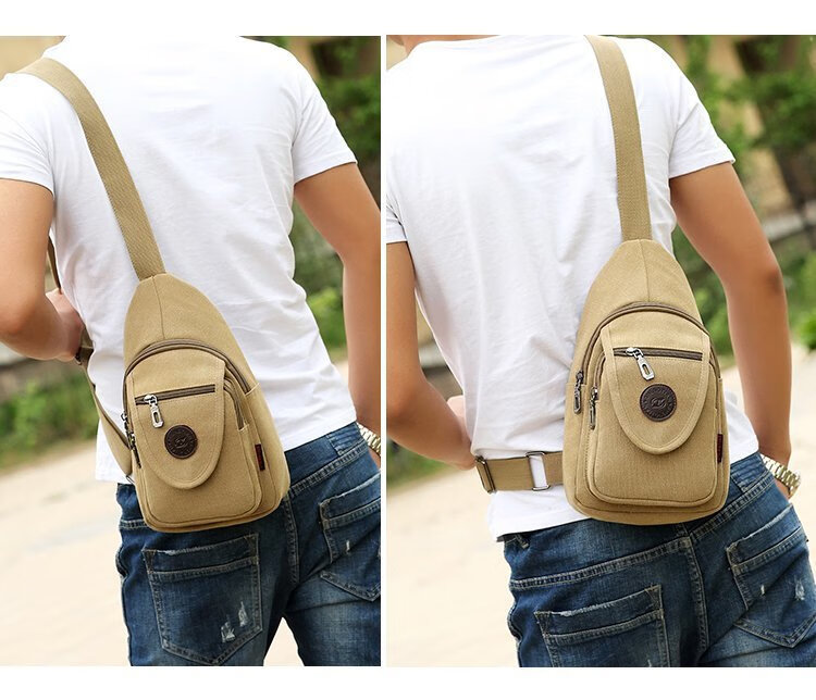 Kangaroo Men's Fashionable, Casual, Versatile, Fashionable and Lightweight New Canvas Bag, Casual Shoulder Crossbody Waist Bag, Dark Brown