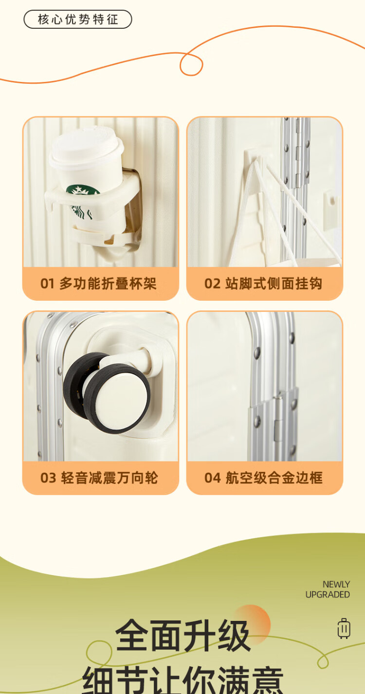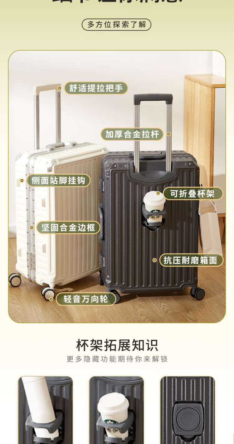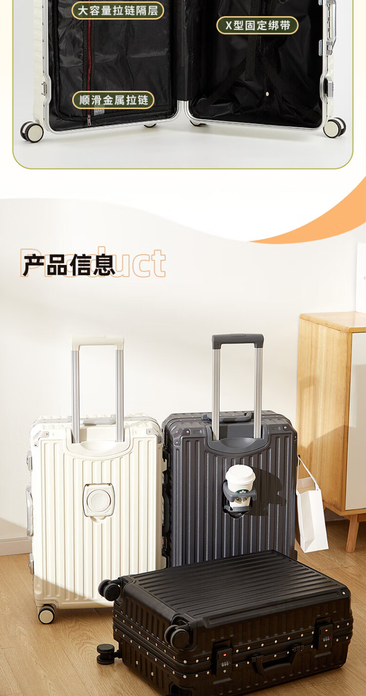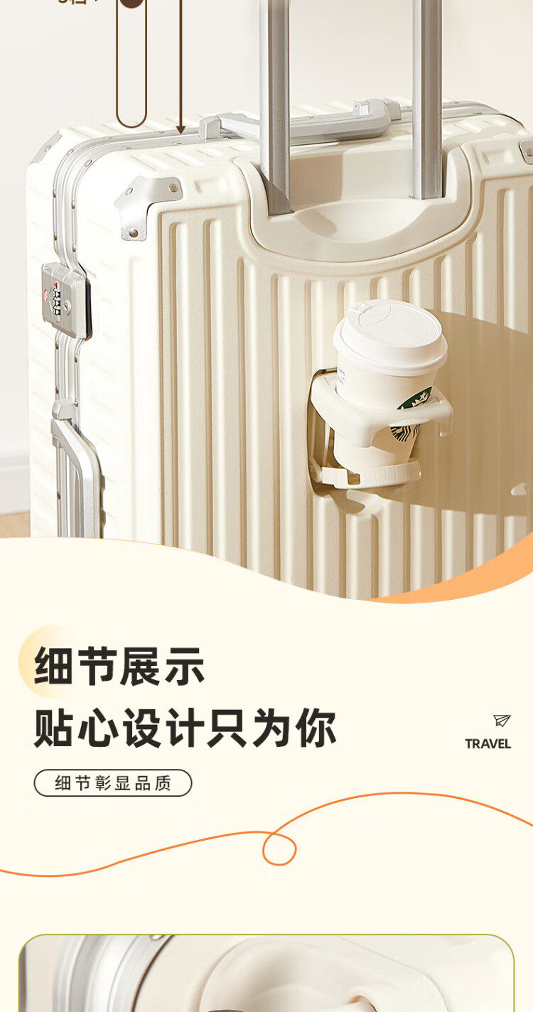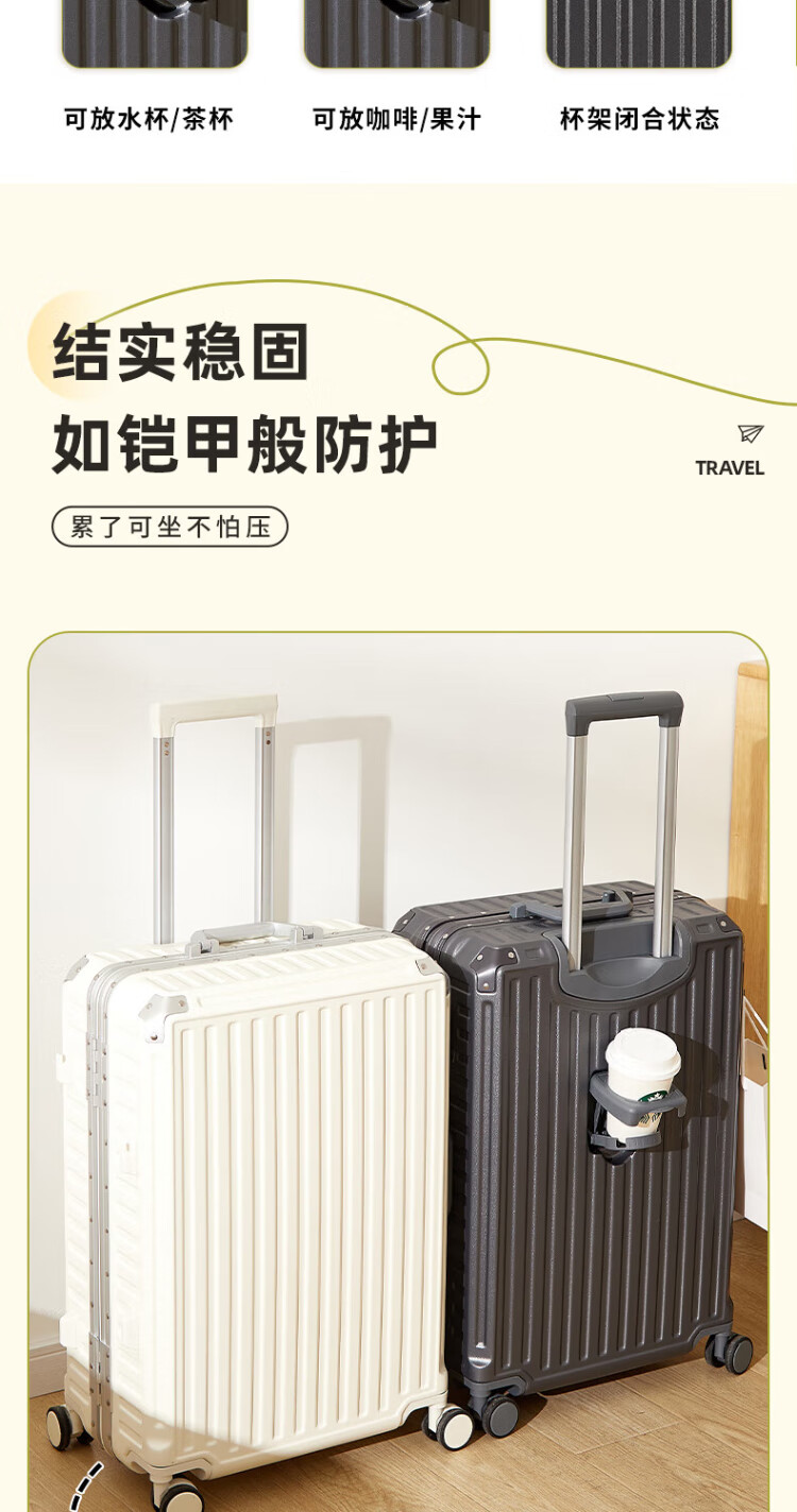 Pull-back suitcase trolley case aluminum frame travel back-to-school boarding case thickened compression code box cup holder leather suitcase rideable white cup holder side hook 26 inches long-distance travel