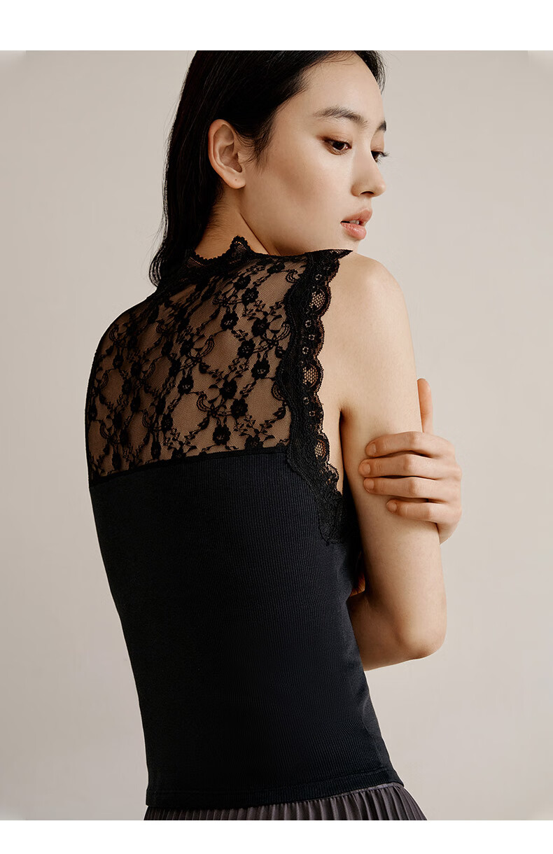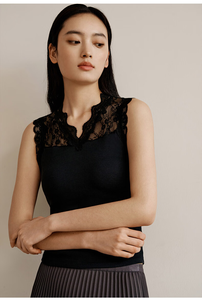 Jinsanta bra-free mulberry silk ribbed bra-in base vest for women with breast pads, comfortable inner base, black M