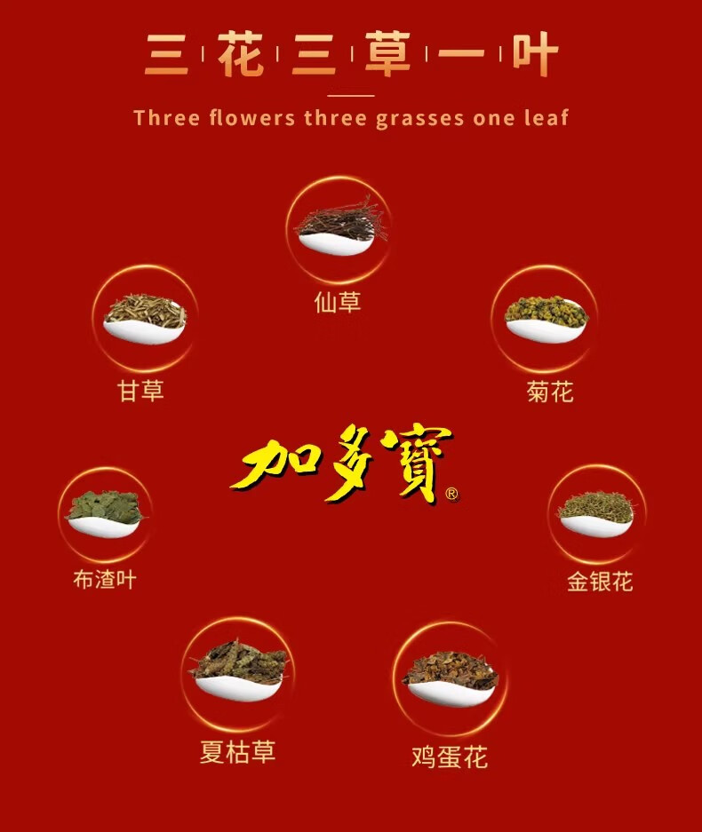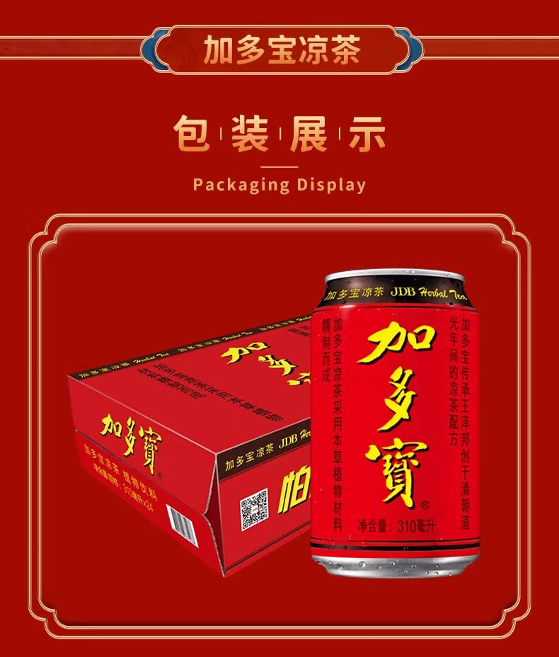 Jiaduobao herbal tea drinks are afraid of getting burned. Red canned herbal tea 310ml*24 cans. Full box of plant drinks tea drinks. Jiaduobao 310ml*6 cans.