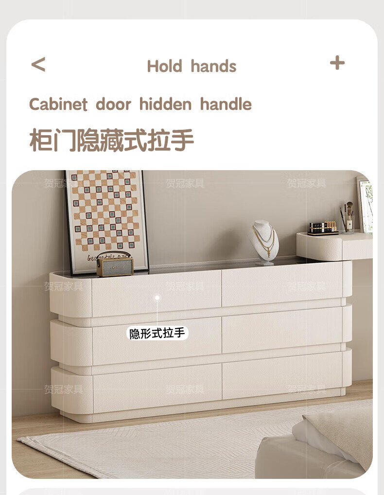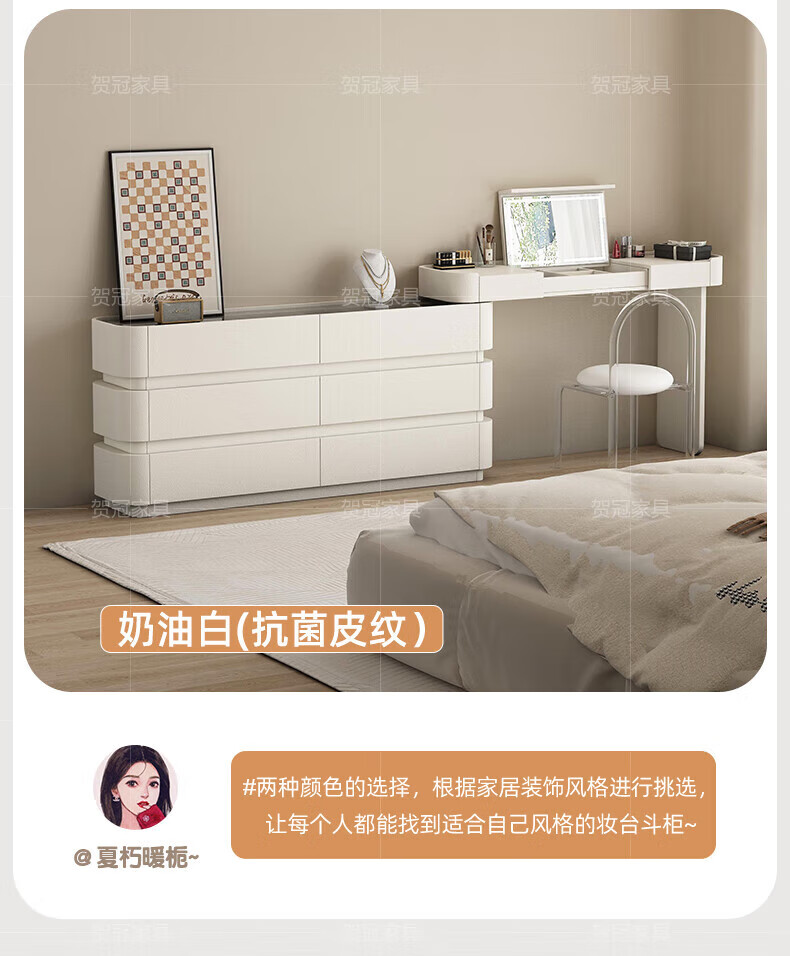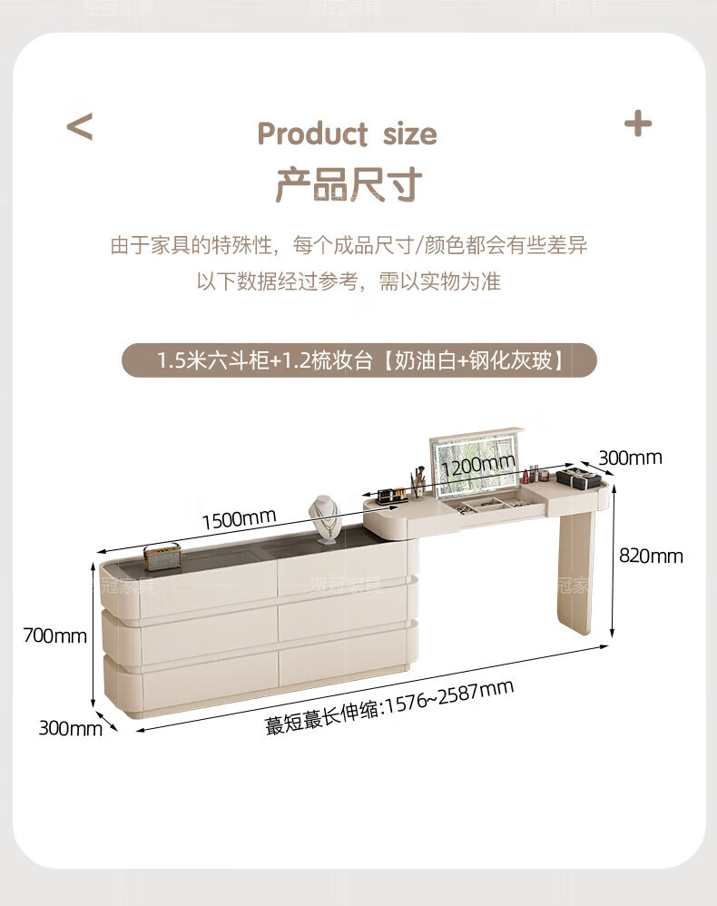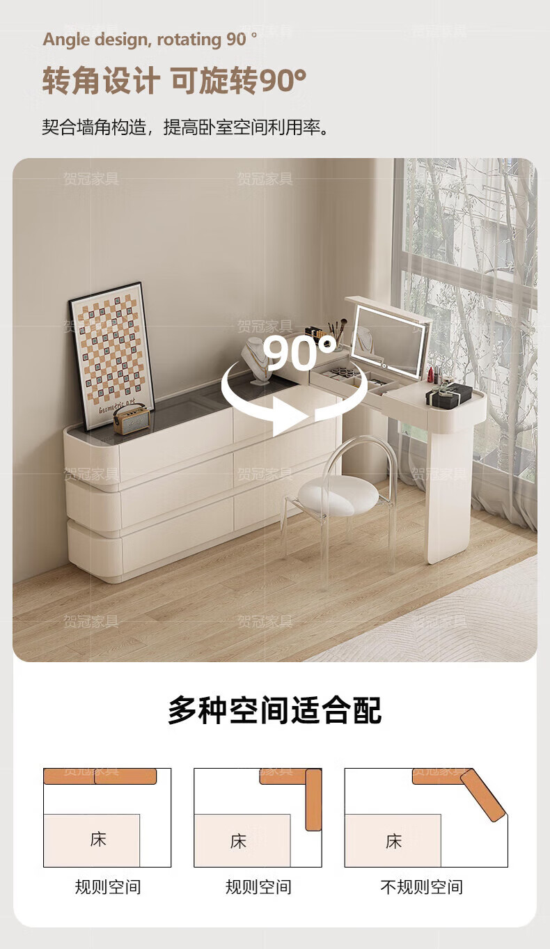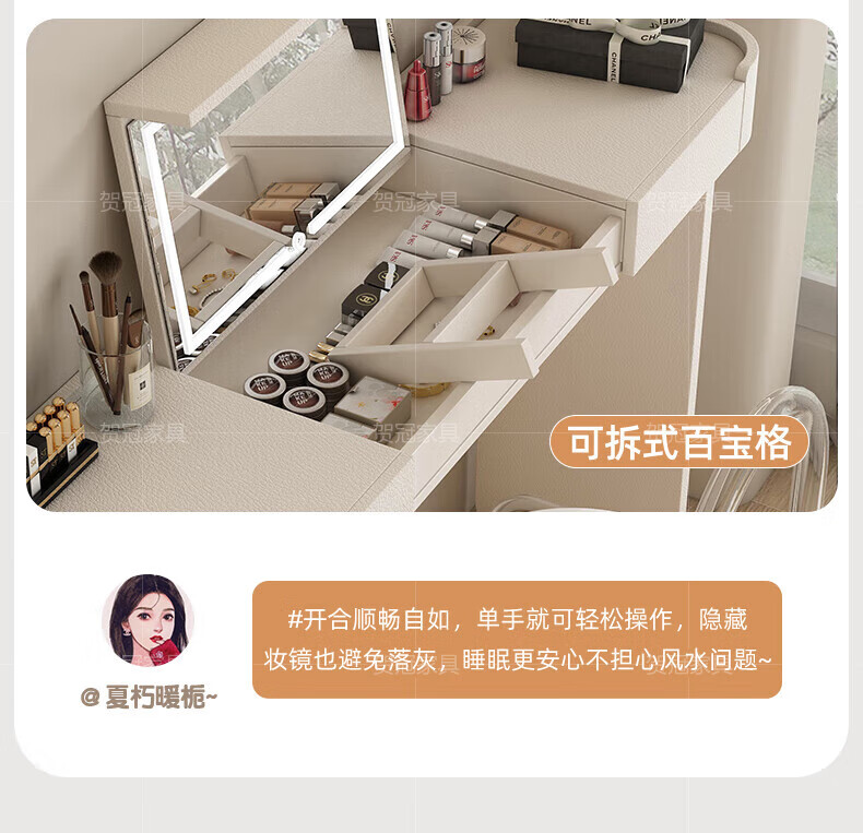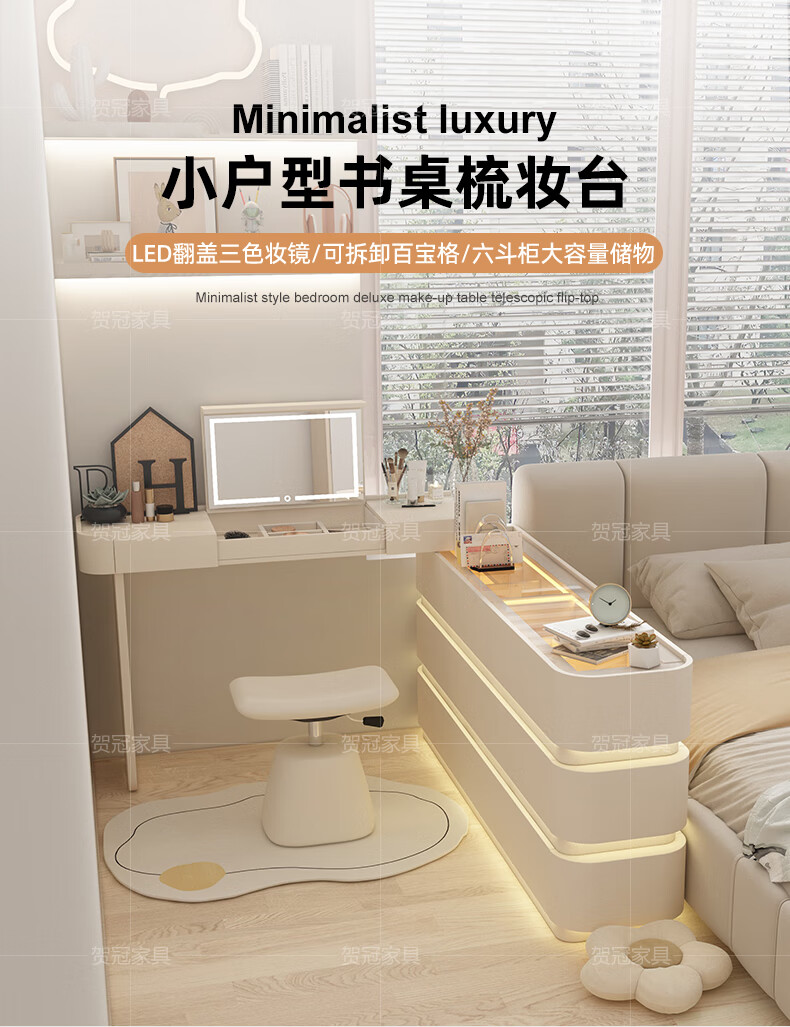 He Guan solid wood retractable bedroom desk and dresser integrated L-shaped cream style French bedside cabinet flip-top makeup mirror with light cabinet light strip-1.2 meter cabinet-ENF all solid wood