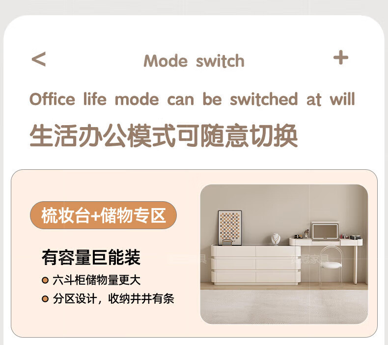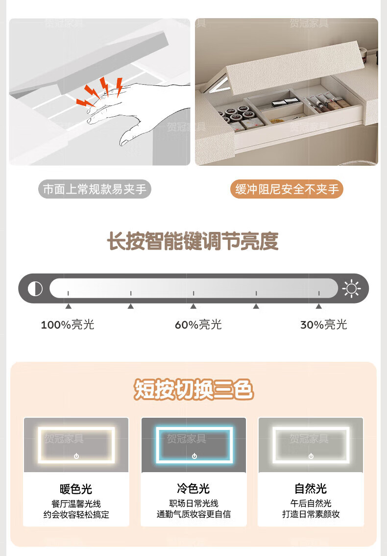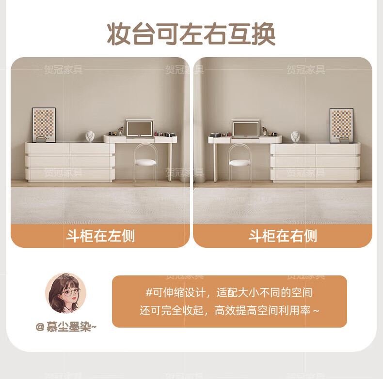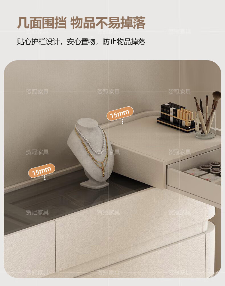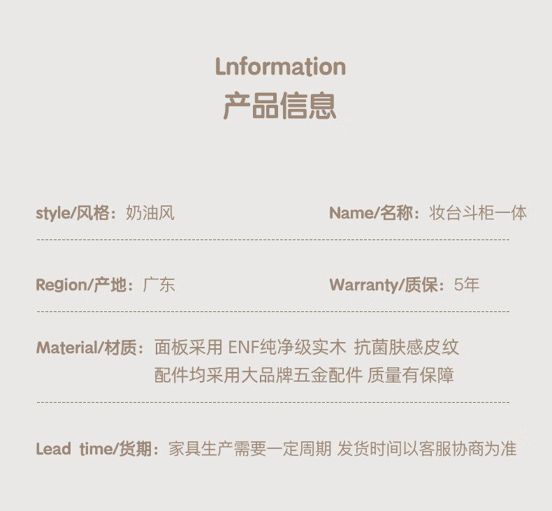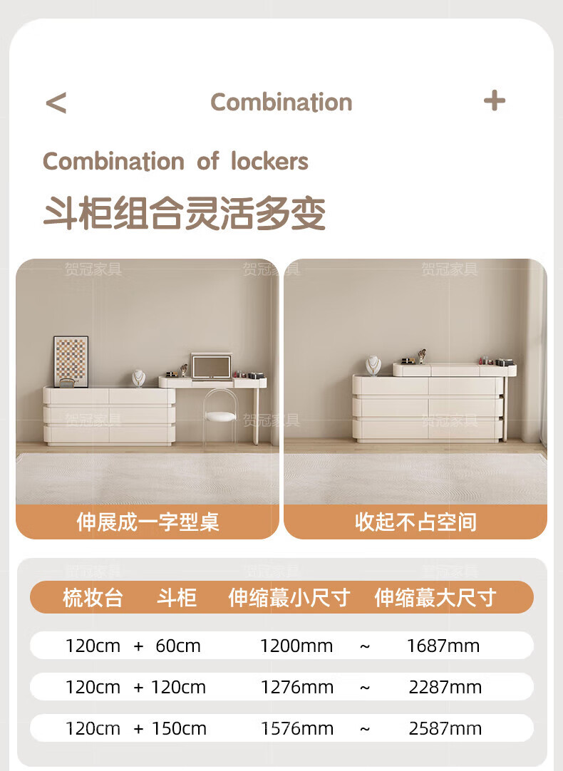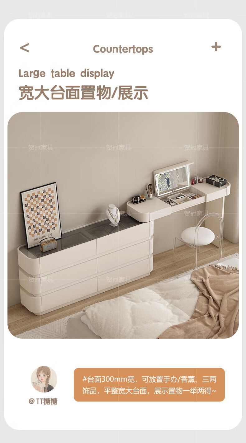 He Guan solid wood retractable bedroom desk and dresser integrated L-shaped cream style French bedside cabinet flip-top makeup mirror with light cabinet light strip-1.2 meter cabinet-ENF all solid wood