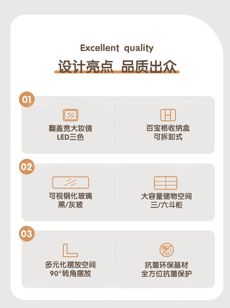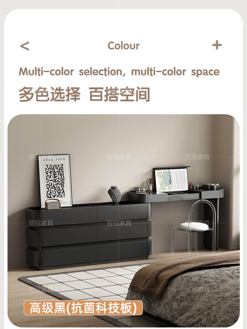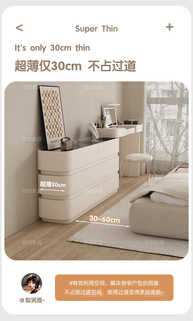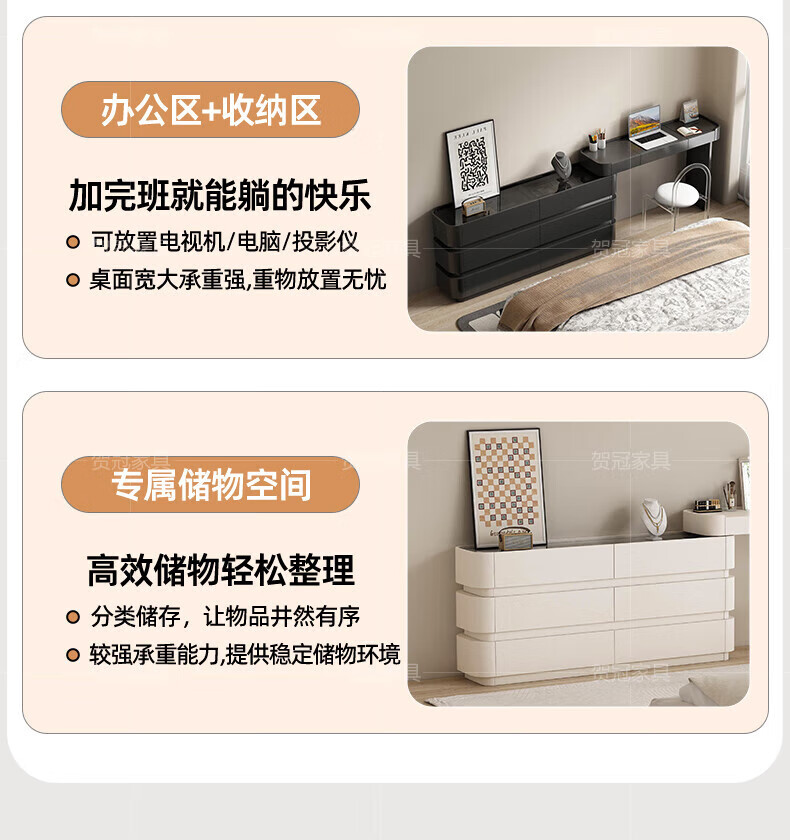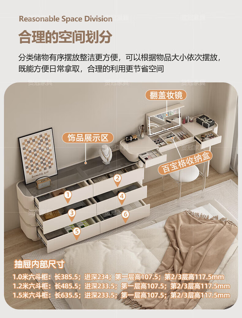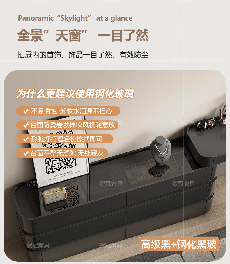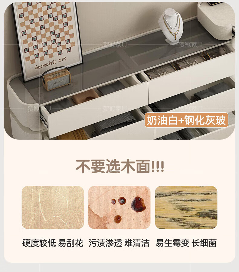 He Guan solid wood retractable bedroom desk and dresser integrated L-shaped cream style French bedside cabinet flip-top makeup mirror with light cabinet light strip-1.2 meter cabinet-ENF all solid wood