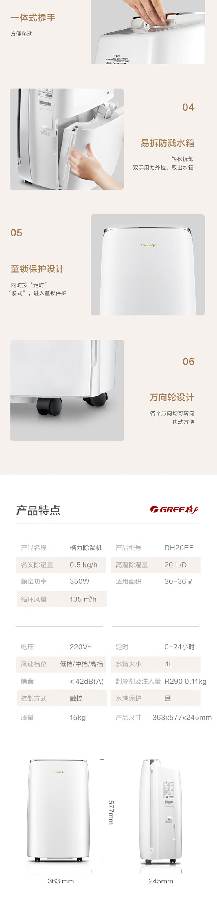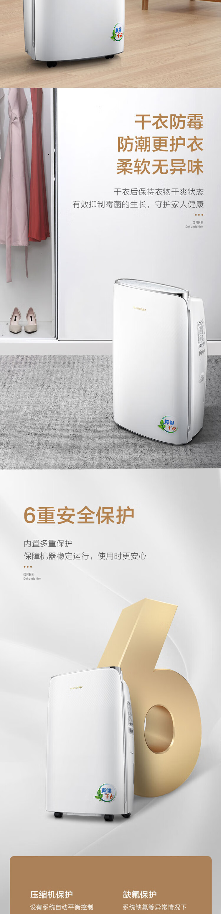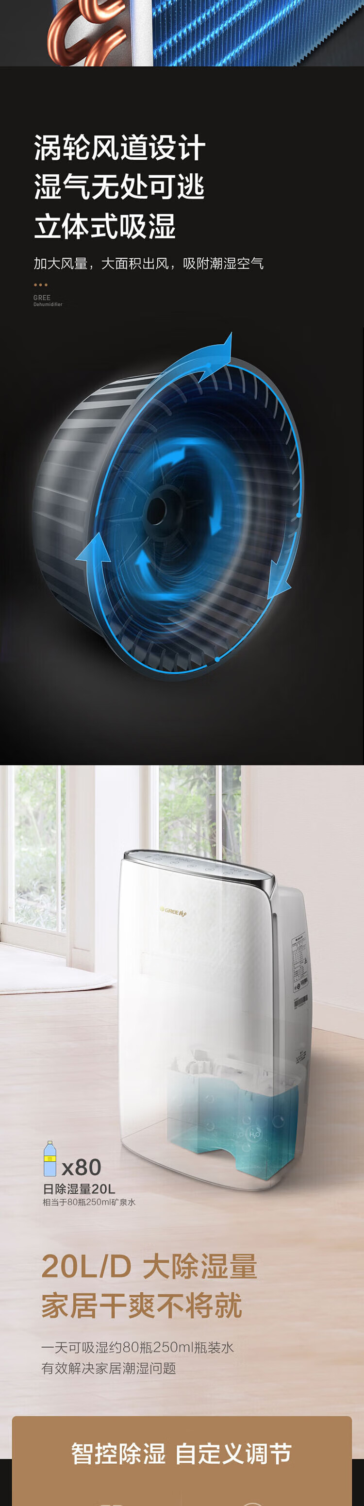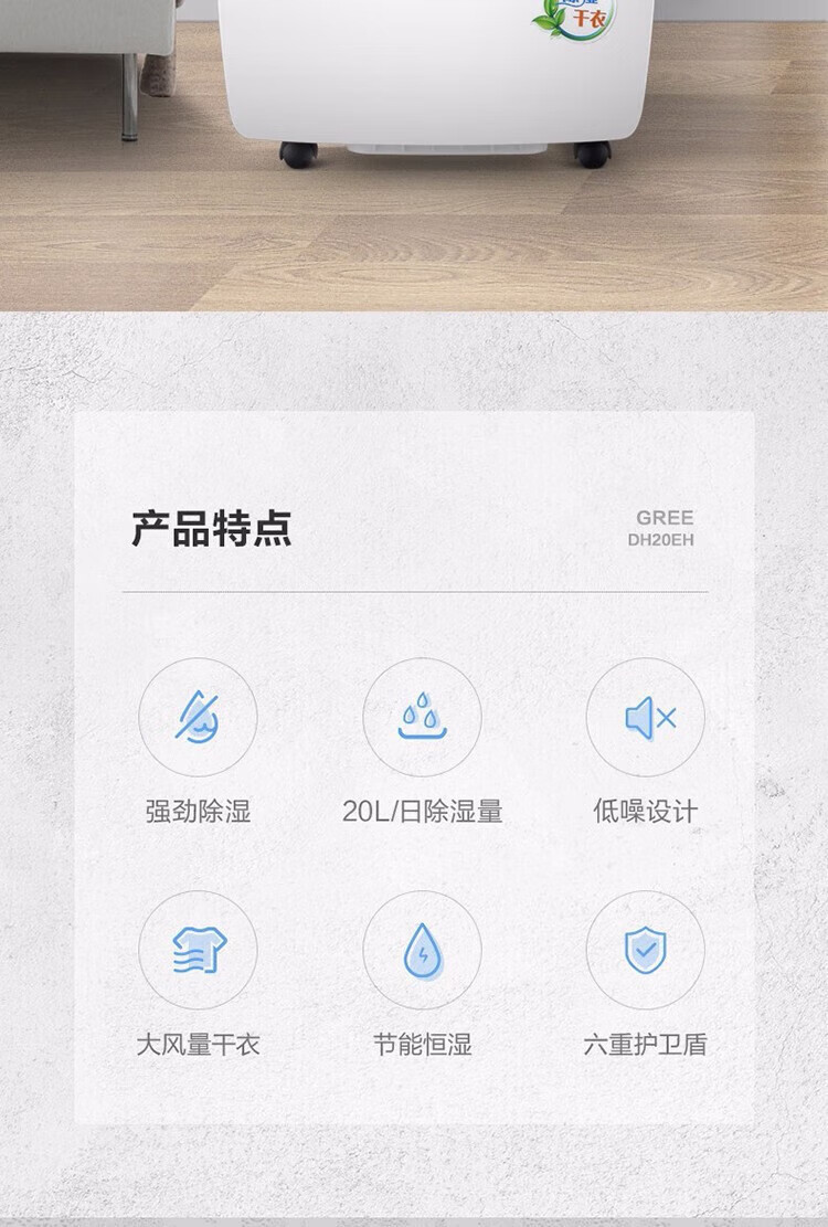 Gree home dehumidifier bedroom living room light sound low noise indoor energy-saving timed constant humidity dehumidifier room office dehumidifier basement powerful dry clothes purification dehumidifier 40L/day 70-120 DH40EFA1A