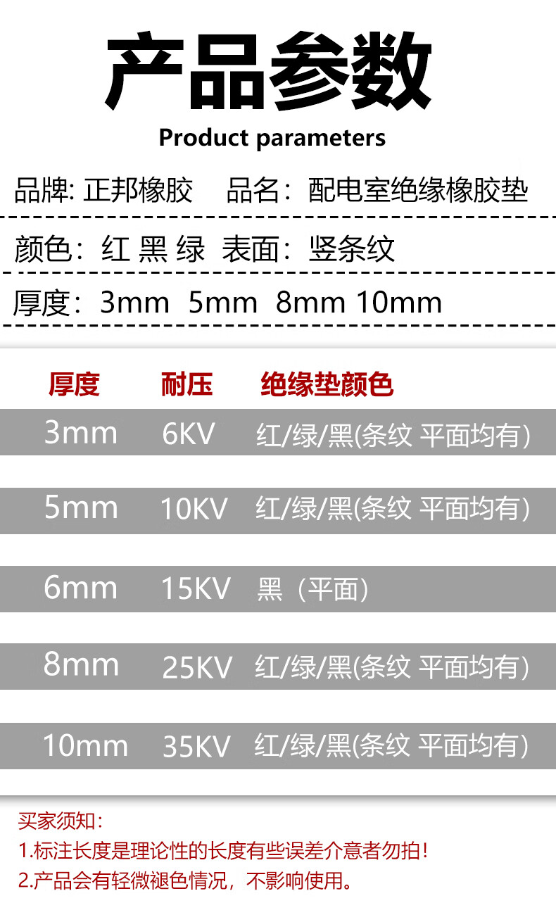 Insulating rubber mat, power distribution room carpet anti-slip rubber, pressure-resistant rubber plate insulating leather, green and red stripes, anti-slip 35 8mm*0.5m*0.5m red strip