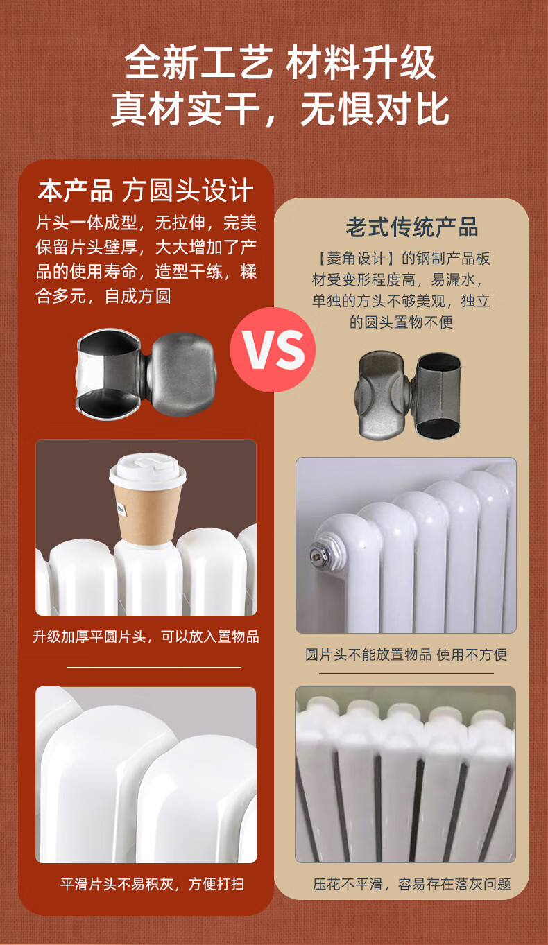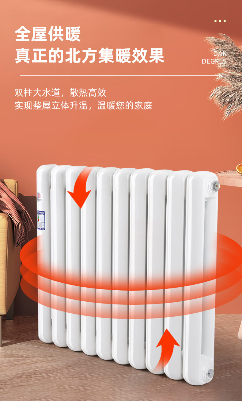 Huili radiator household water heating 7030 steel two-column radiator central heating large waterway wall-mounted vertical surface installation project 7030 thickened square head center distance 60 cm 6 columns