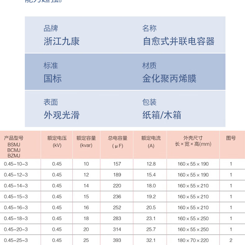 Zhejiang Jiukang self-healing low-voltage parallel power capacitor BSMJ0.4/0.45/0.48/0.525 three-phase 10KVAR 400V