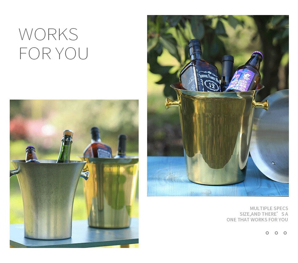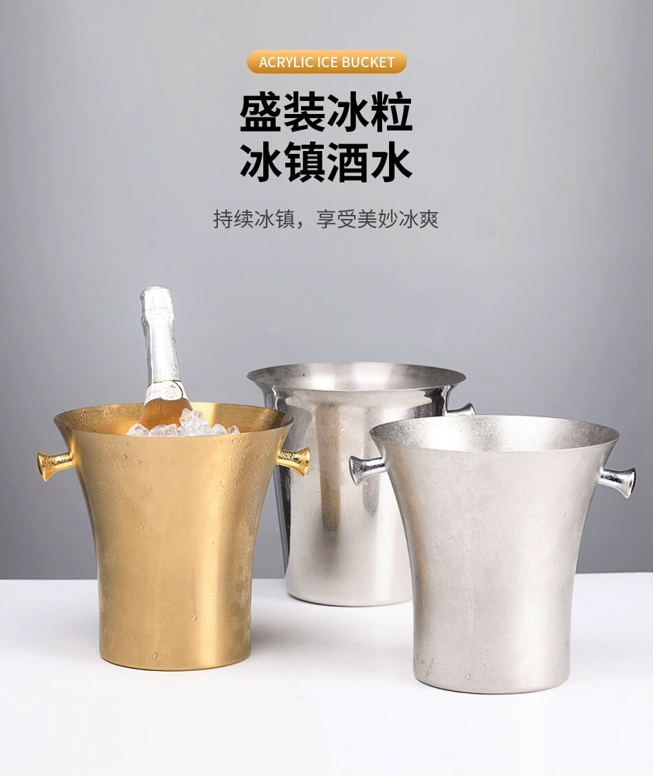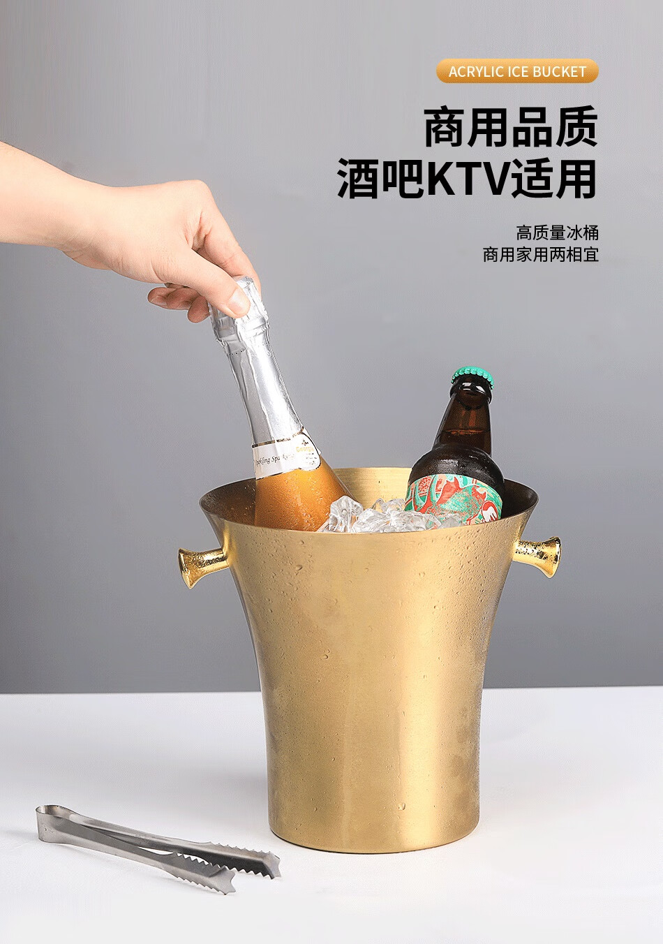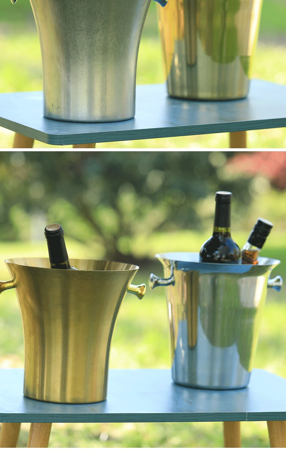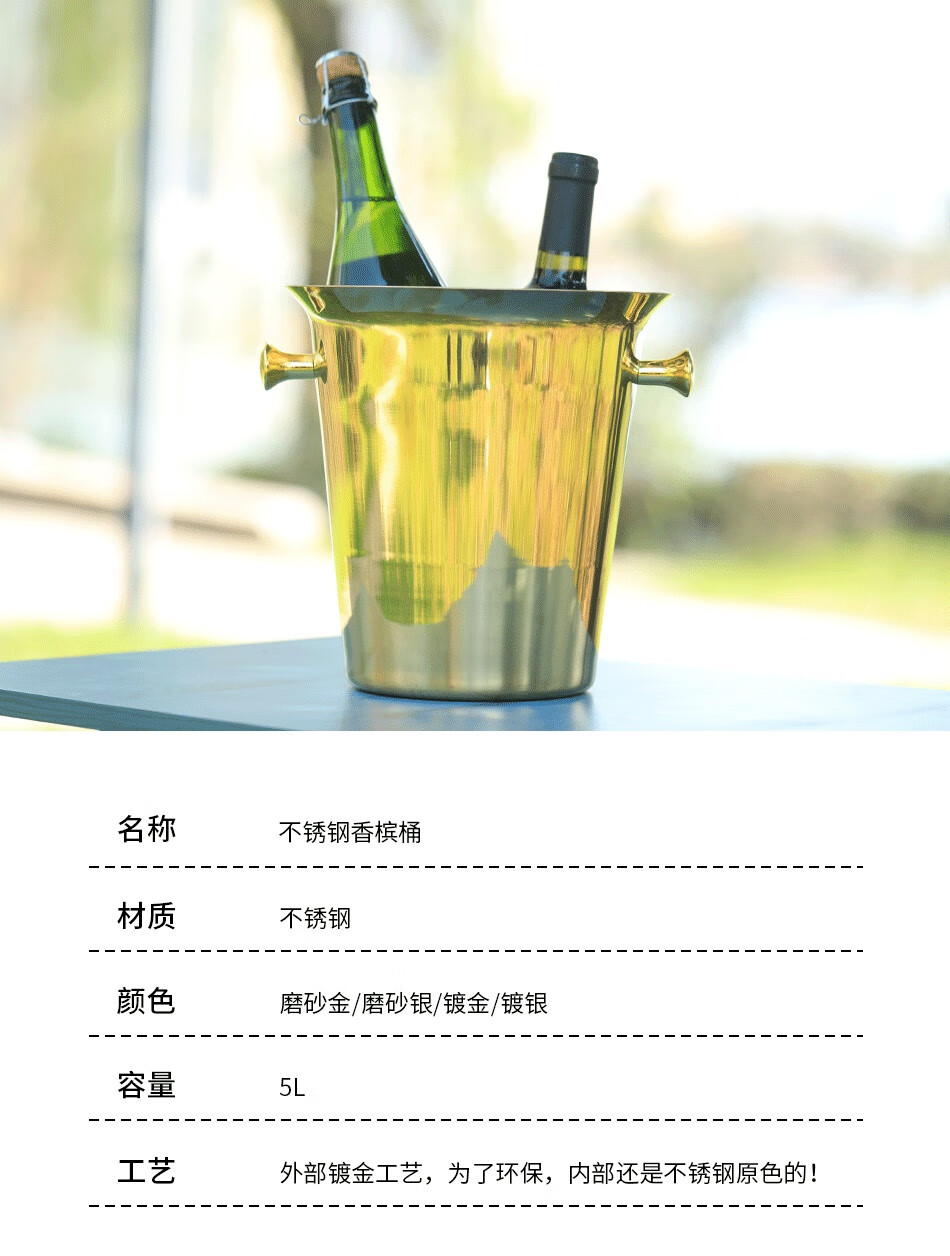 LANGUAGE OF CUP Golden Frosted Stainless Steel Ice Wine Bucket Retro Large Ice Wine Container Champagne Ice Wine Bucket Home Model Room Decoration Golden Frosted 5-liter Ice Bucket