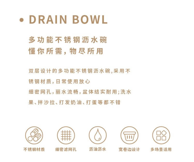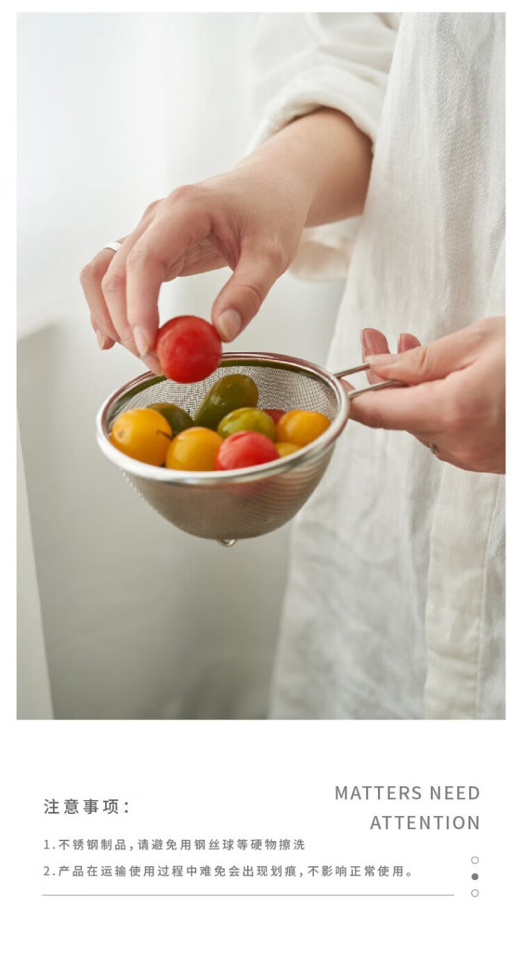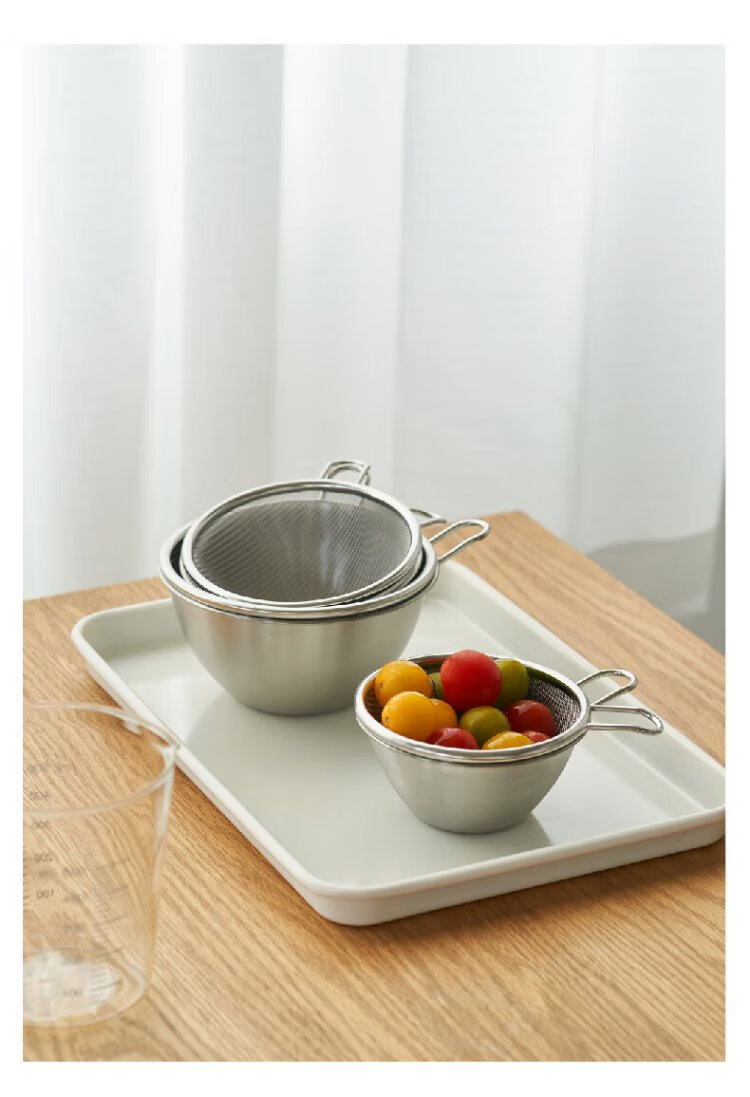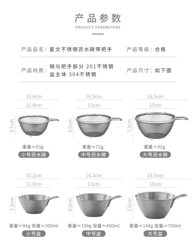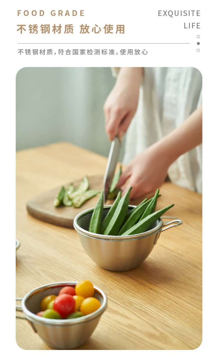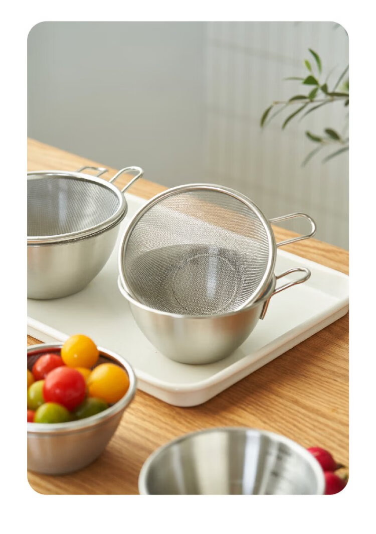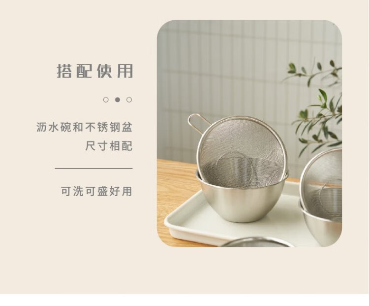 Siyue Mini 304 stainless steel drain basket with handle, fruit and vegetable basin, leaky bowl, mesh basket, rice cleaning artifact, 2-piece set, size S (basin + encrypted mesh basket)