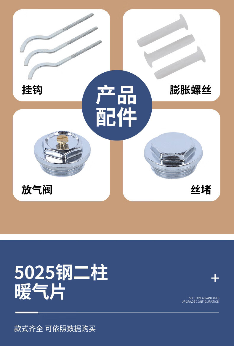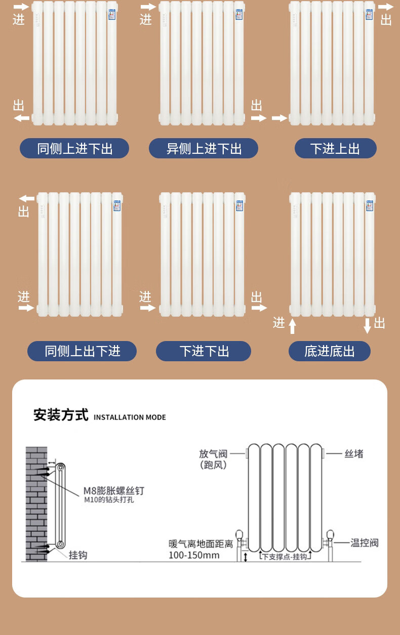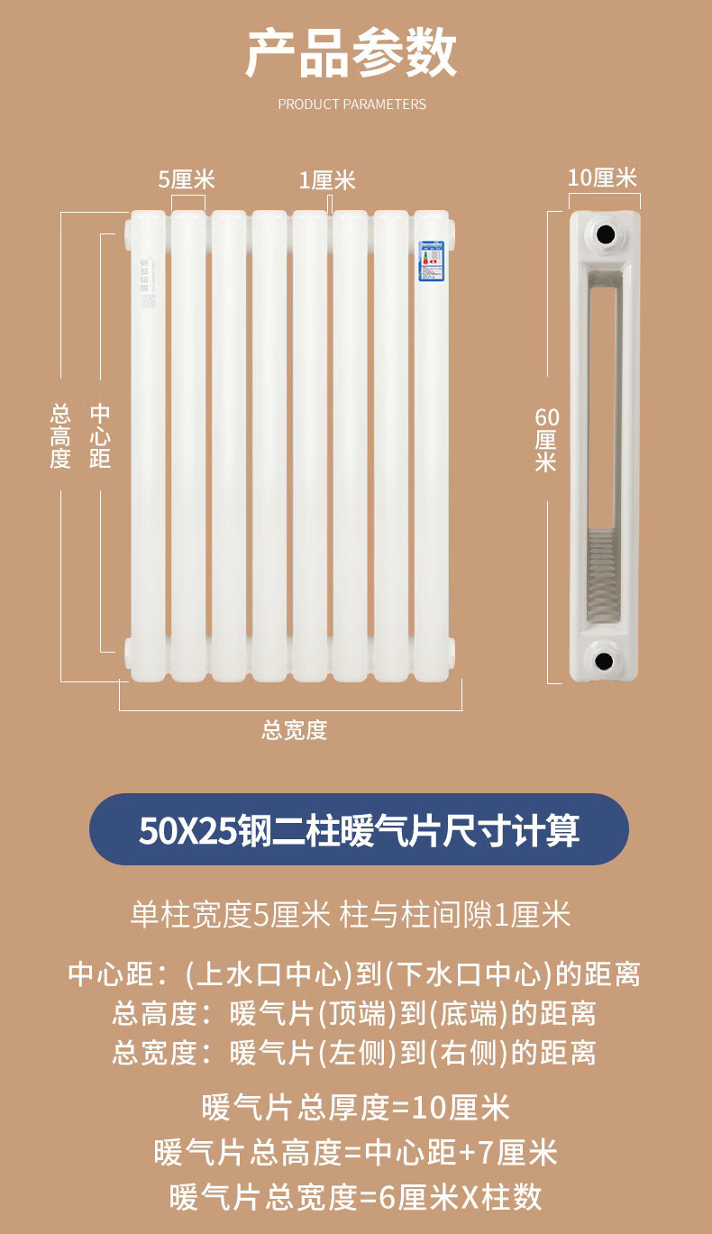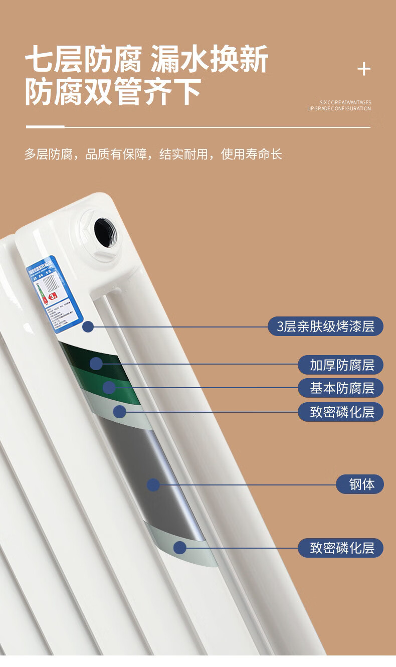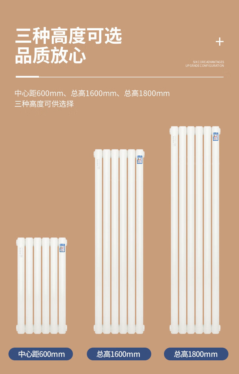 Yaotian water heating radiator household radiator central heating water circulation northern steel vertical 67 high 6 columns set 5025 wall thickness 2.0 mm style
