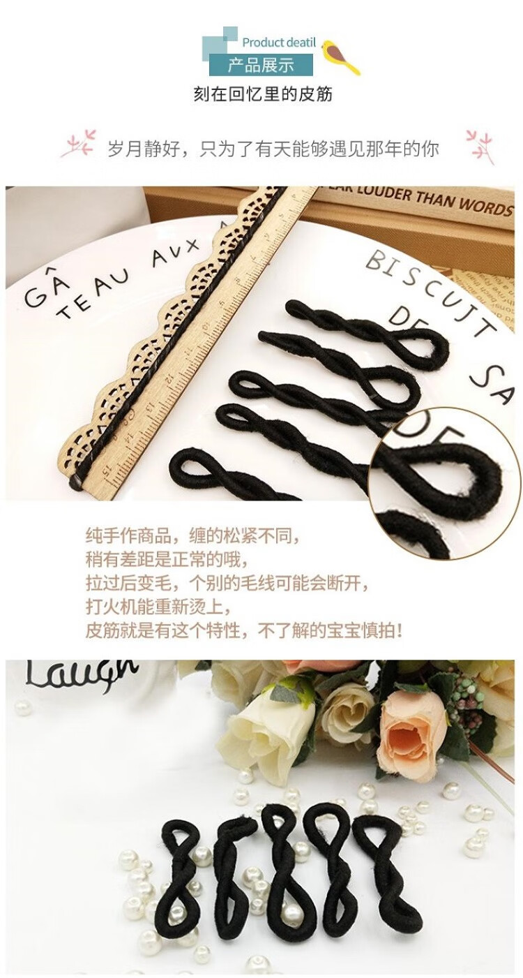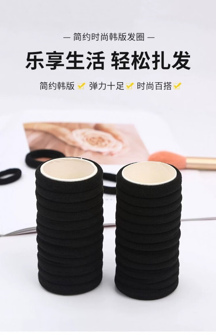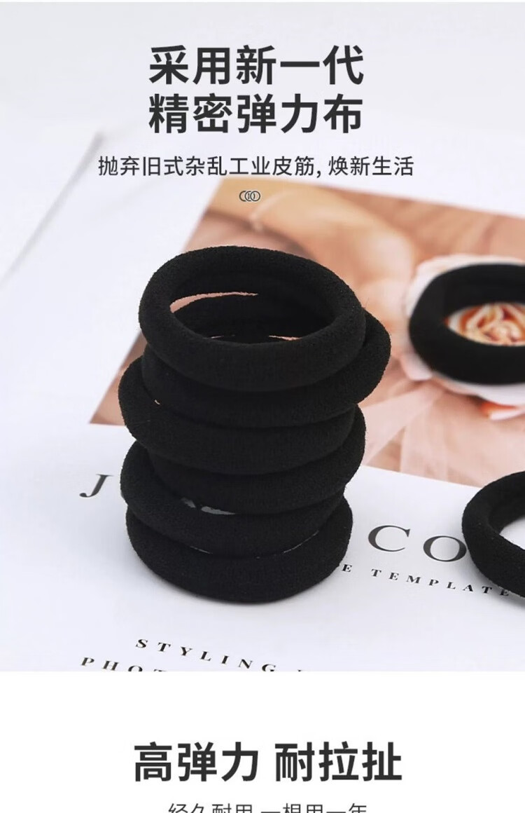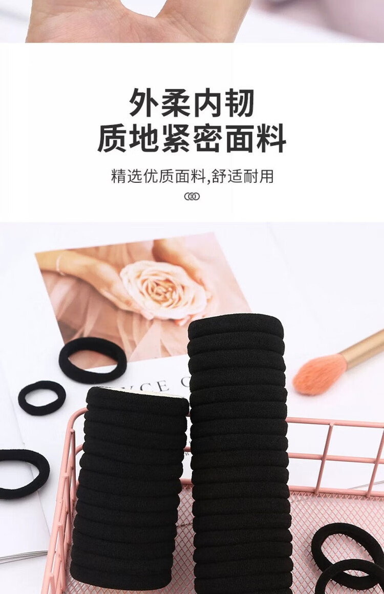 Highly elastic and thickened colored hairbands and hair ties, leather bands for tying hair for men and women, simple and durable, high elasticity/bold black hairbands, 50 pieces