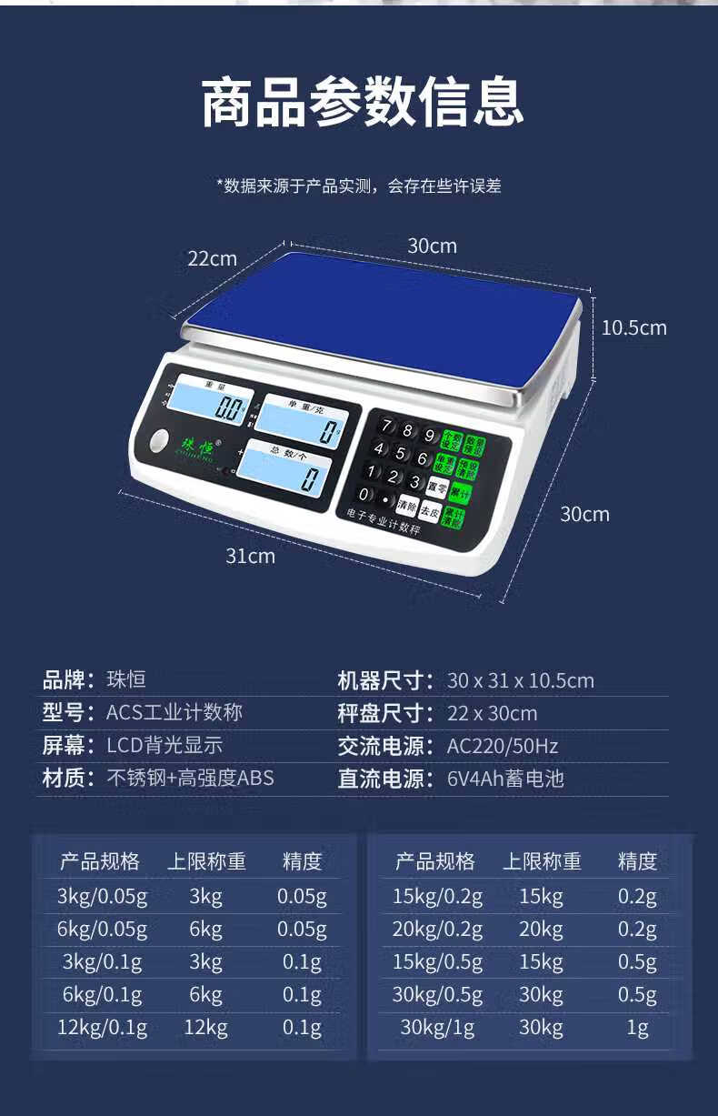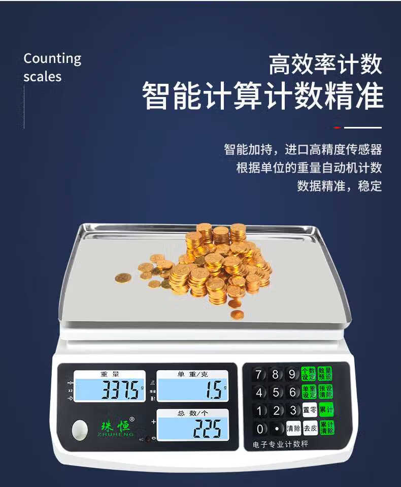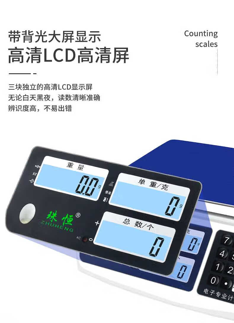 Zhuheng electronic scale 0.01 precision counting scale 30kg high-precision gram scale 0.1g precision electronic scale commercial industrial bench scale measuring range 30kg accuracy 1g