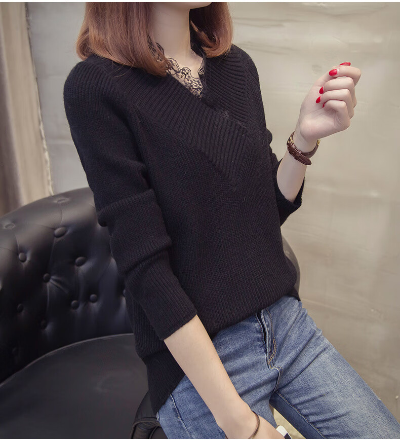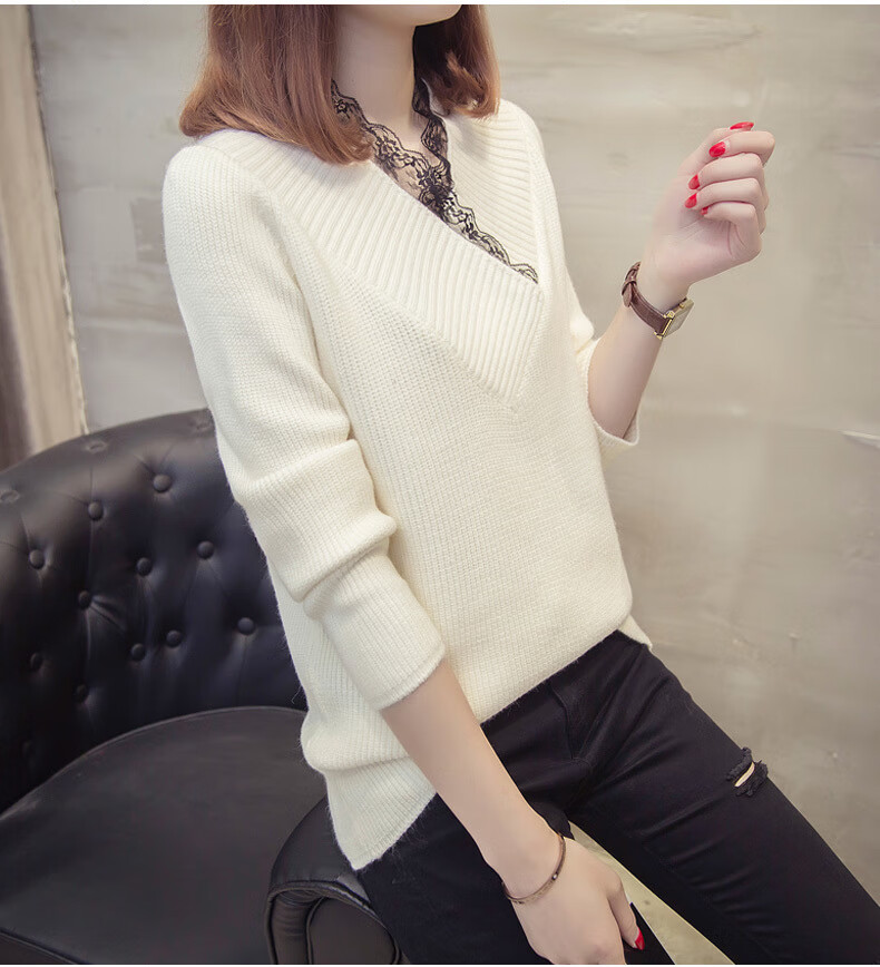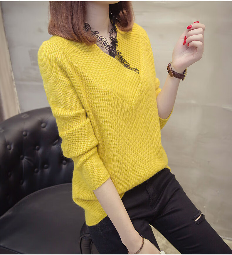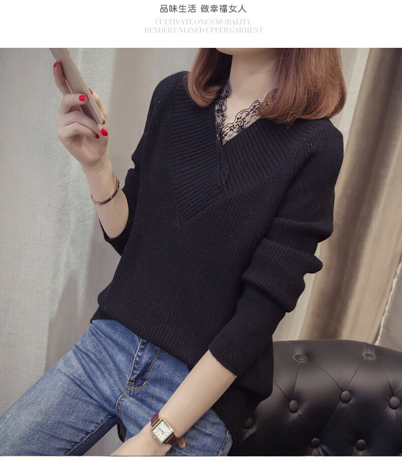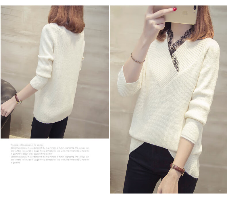 Fan Zhe Lang (FANZELANG) v-neck sweater women's loose Korean style lace 200 pounds plus fat plus size women's knitted bottoming shirt fat sister autumn and winter khaki color one size 80-120