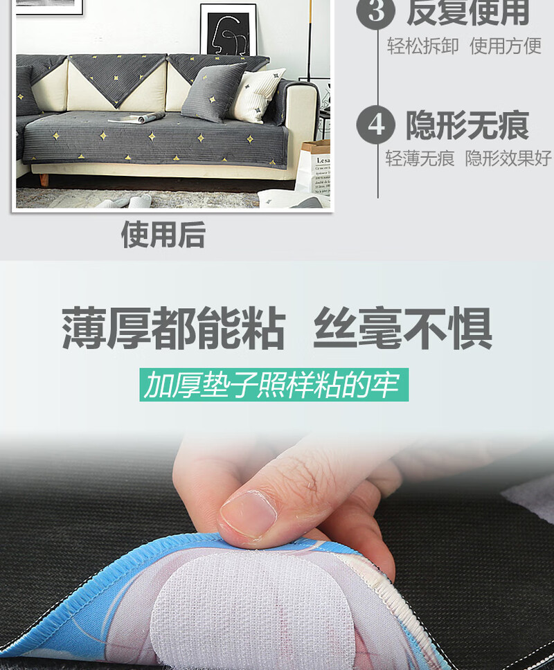 Bed sheet, sofa cushion holder, anti-run cushion sticker, magical magic patch, household fixation, needle-free invisible patch, black square 4*6CM 10 pairs