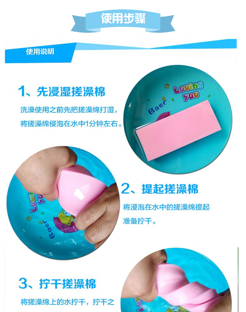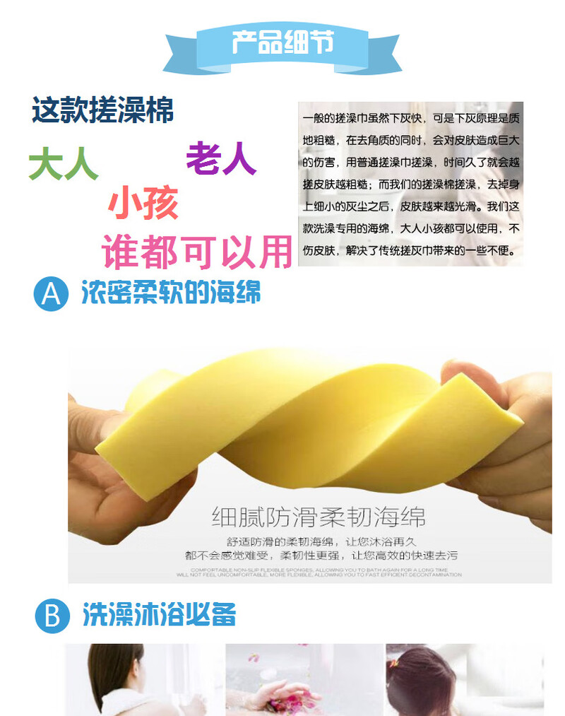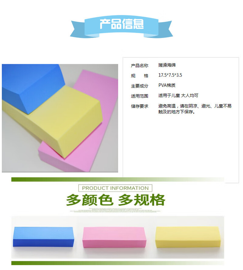 PVA clean square cotton super absorbent sponge bath artifact baby bath cotton rub dust and mud blue