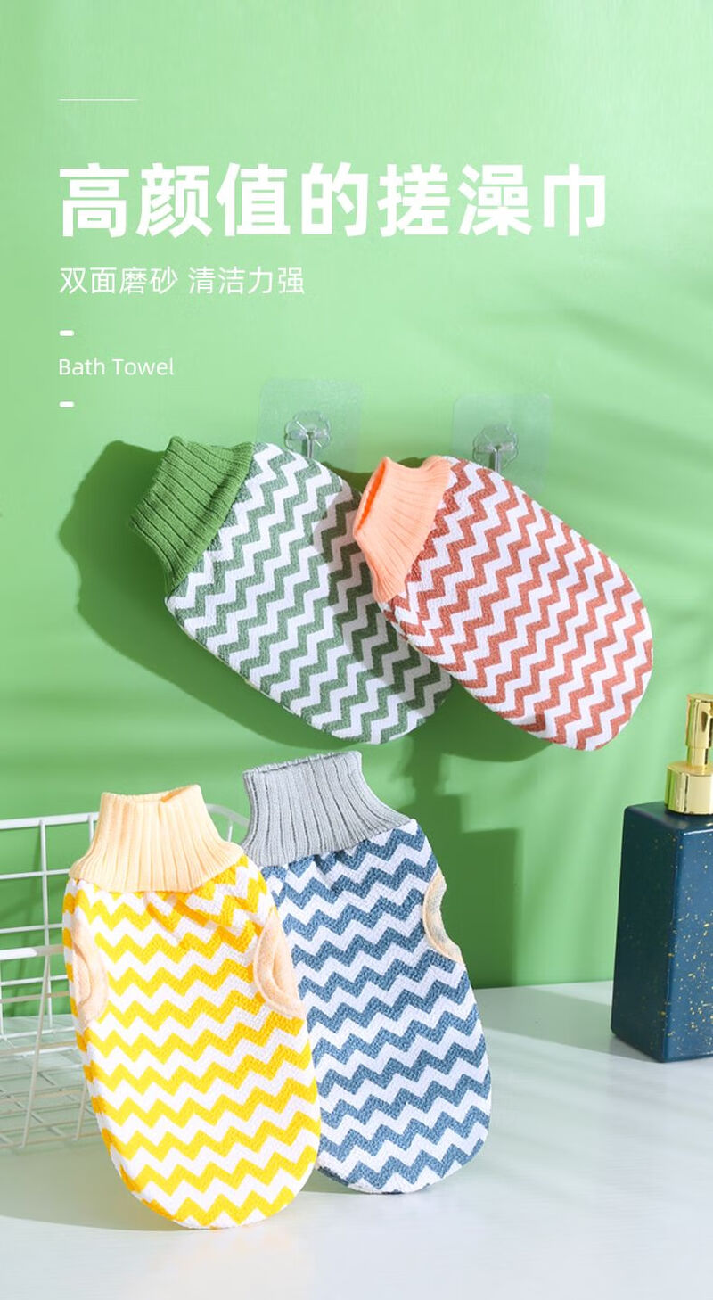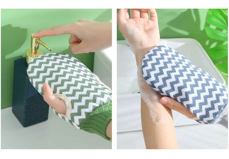 Bath towel for women, powerful mud rub and decontamination artifact, double-sided adult male bathing household back rub gloves, blue 1 pack, pink 1 pack