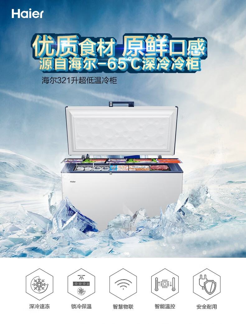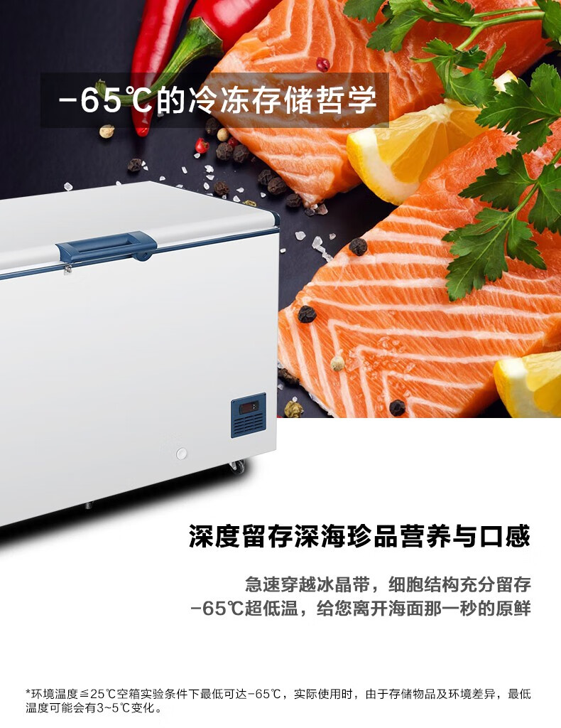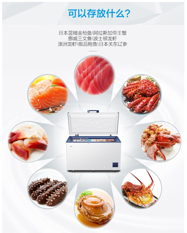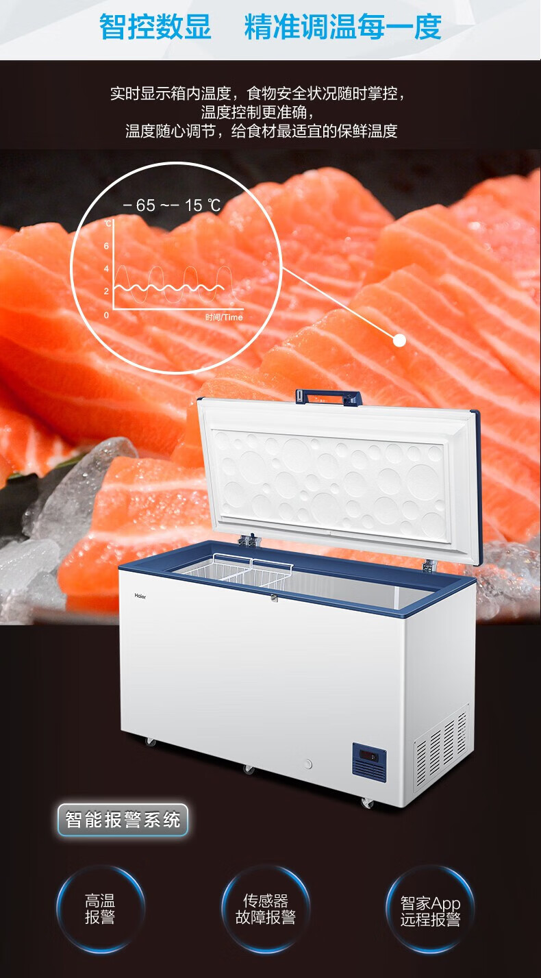 Haier freezer ultra-low temperature -65/-70 household large-capacity deep-sea fish seafood tuna salmon frozen deep-freezing quick-frozen freezer copper tube evaporator stainless steel liner 151 liters -70 degree frozen tuna DW-60W151EU1