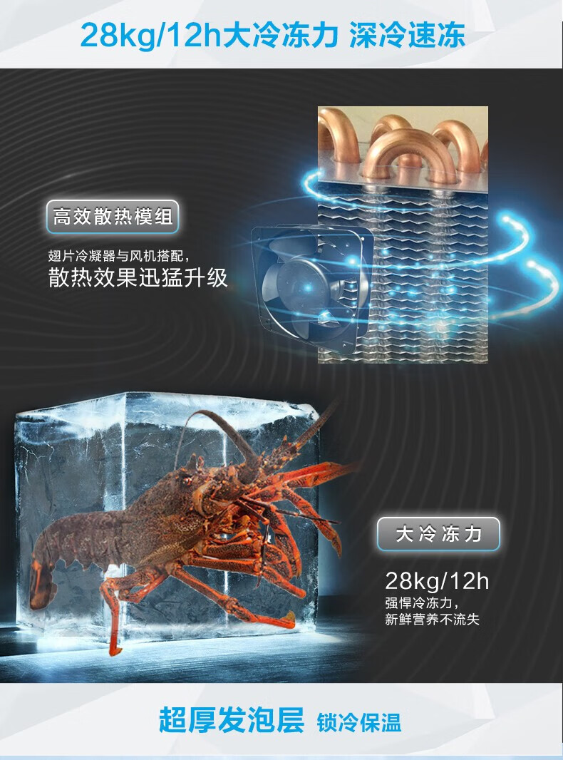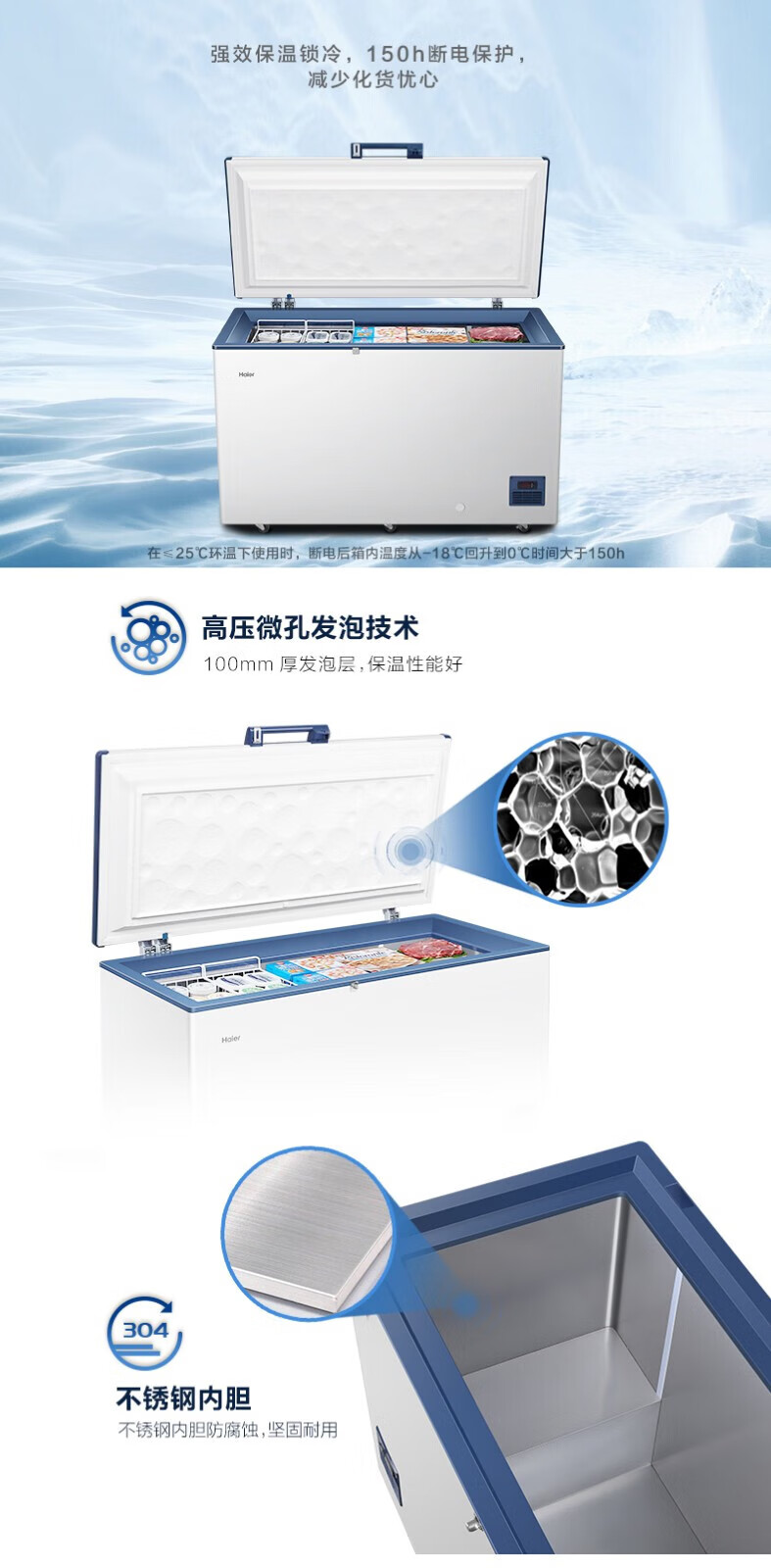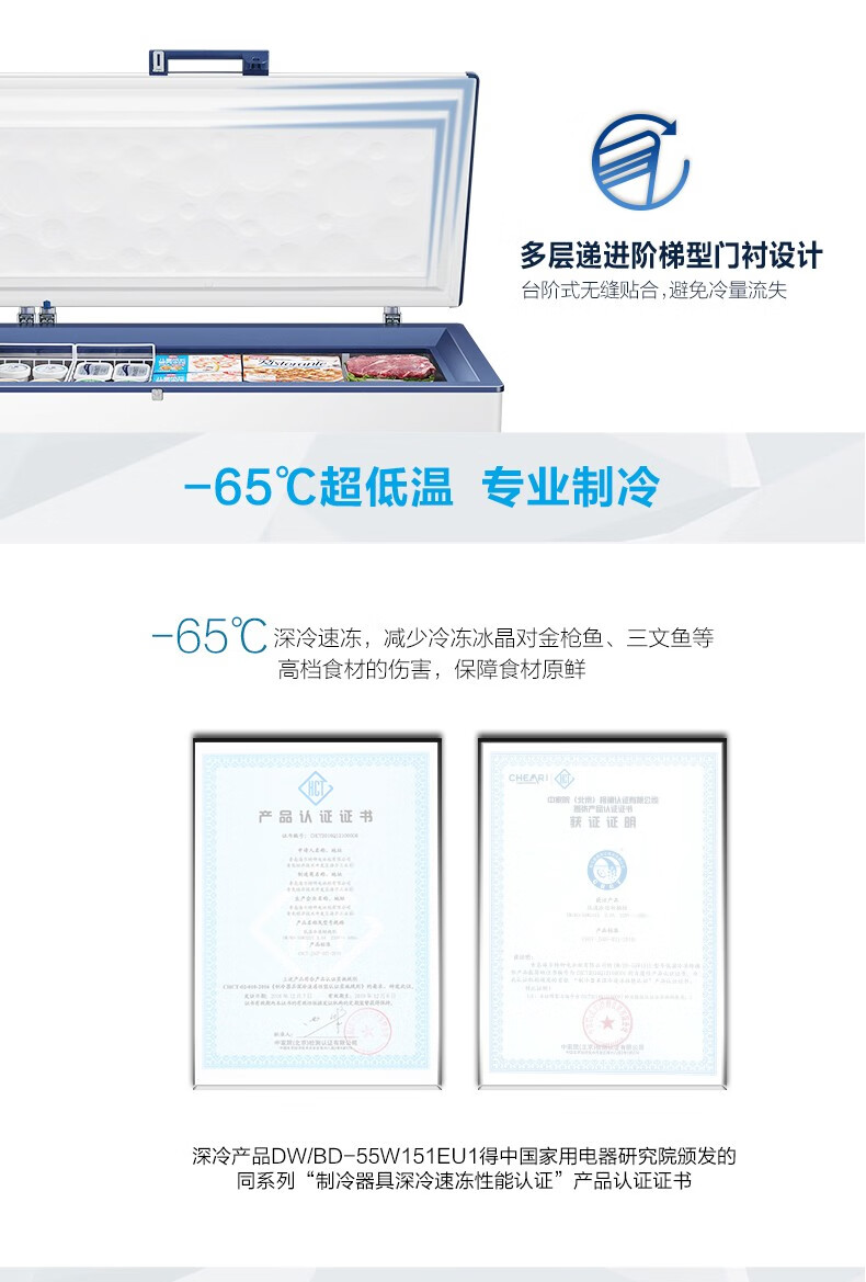 Haier freezer ultra-low temperature -65/-70 household large-capacity deep-sea fish seafood tuna salmon frozen deep-freezing quick-frozen freezer copper tube evaporator stainless steel liner 151 liters -70 degree frozen tuna DW-60W151EU1