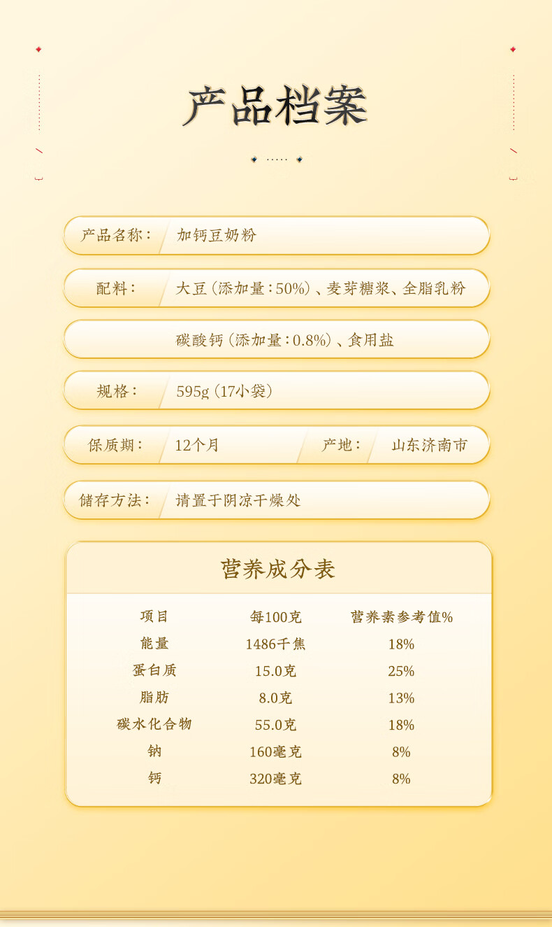 Mrs. Qin's calcium-fortified soy milk powder, nutritious breakfast instant drink, large bag of soy milk for middle-aged and elderly women and children, calcium-fortified soy milk powder 595g*1 bag