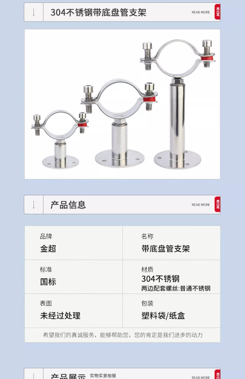 Jinchao 304 stainless steel pipe clamp pipe fixed bracket adjustable bracket water pipe clamp gas and natural gas clip buckle (19-22) 30-50mm adjustment