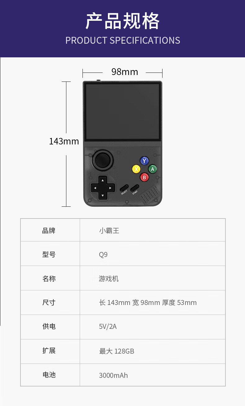 Xiaobawang 2025 new Q9 portable handheld game console connected to TV parent-child game console handheld joystick children's nostalgic retro classic arcade compact handheld game console Q9 128G dual wireless handle
