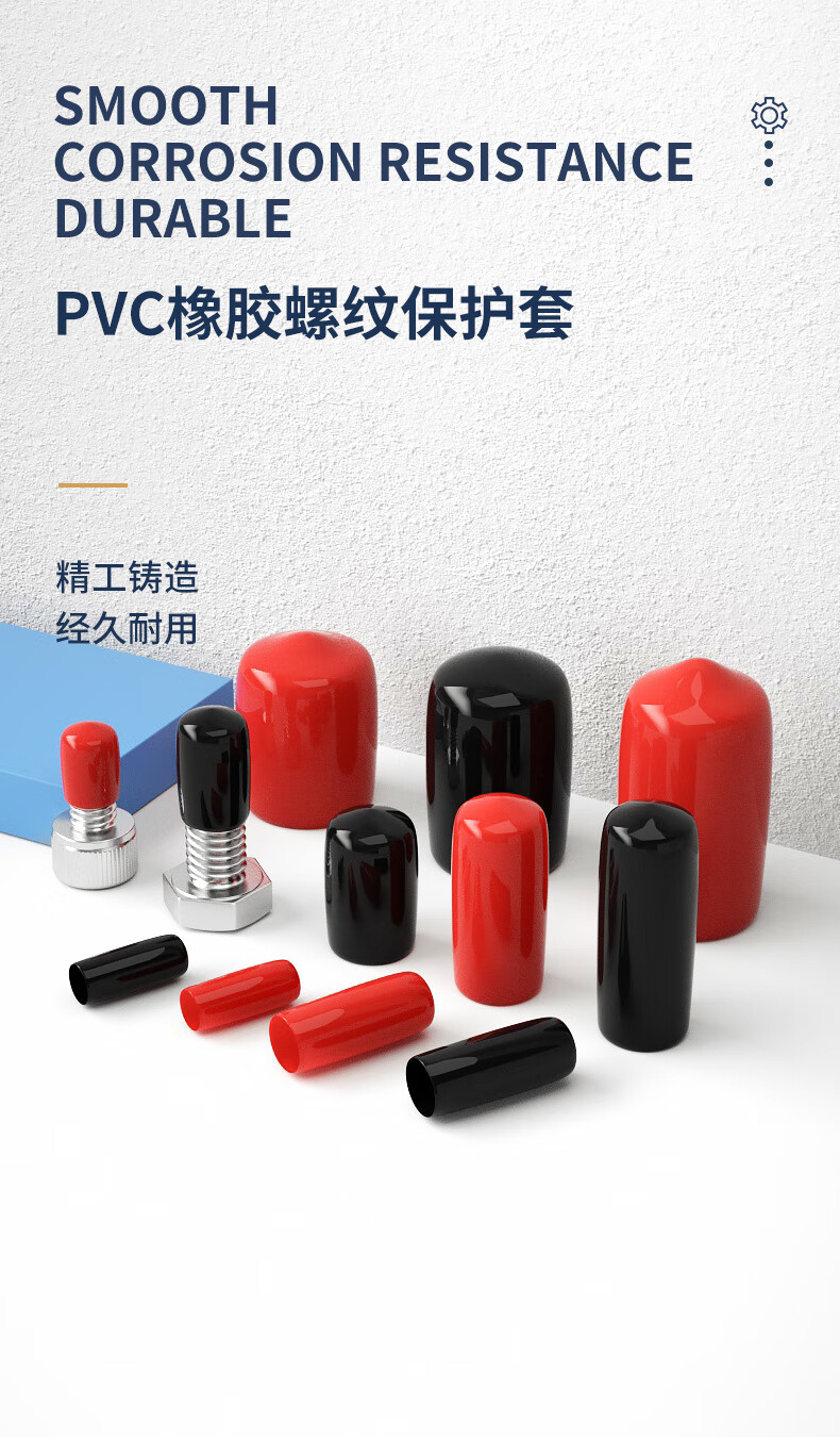 Guwanji PVC rubber protective cap external thread screw protective sleeve screw rod round cap plastic hose casing cap plug black 15x20 (50 pcs)