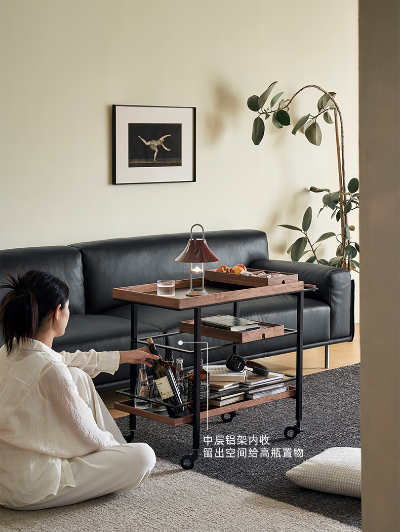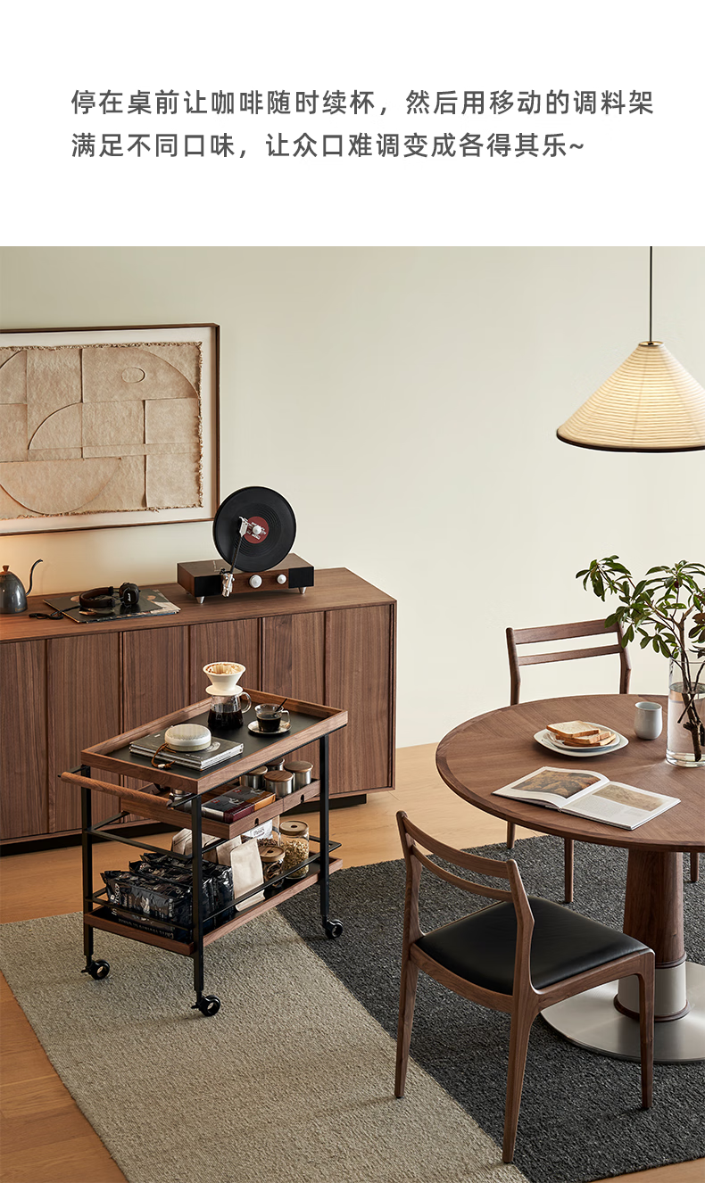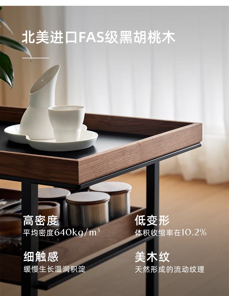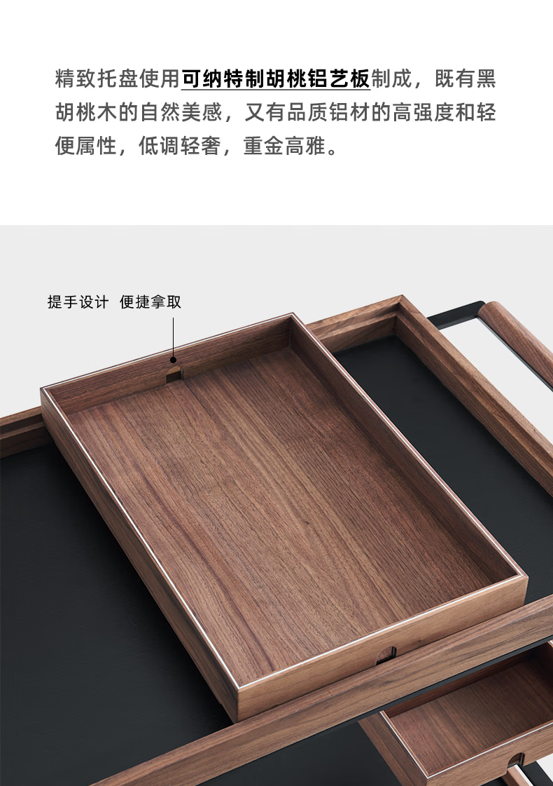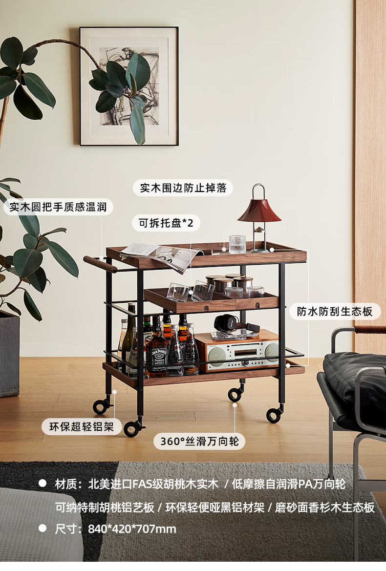 Kona Vans Black Walnut Solid Wood Trolley Storage Coffee Table Simple Living Room Movable Side Table Z Walnut-Ultra Light Aluminum Frame Trolley