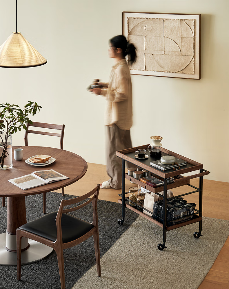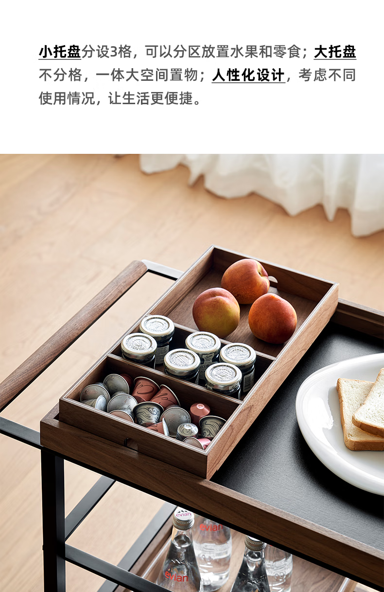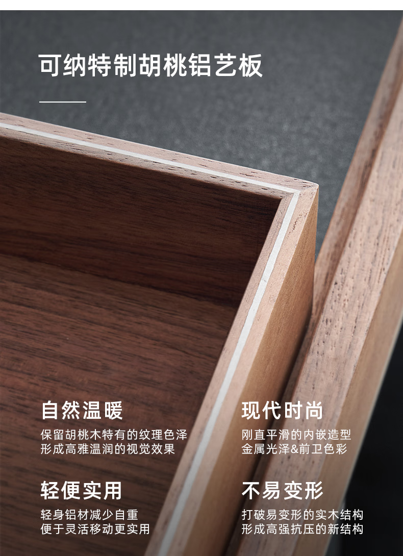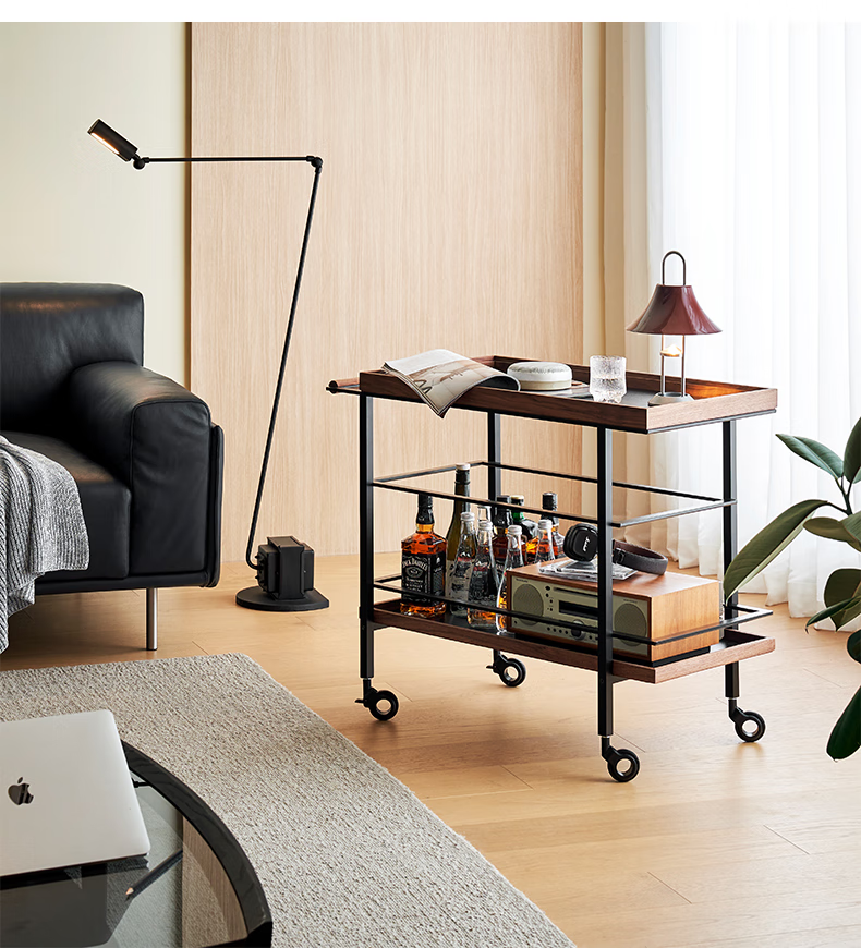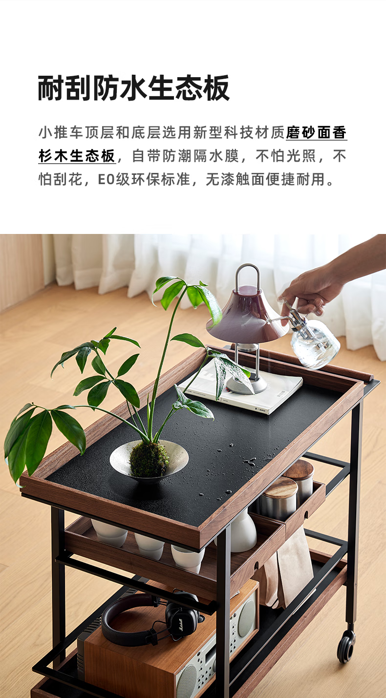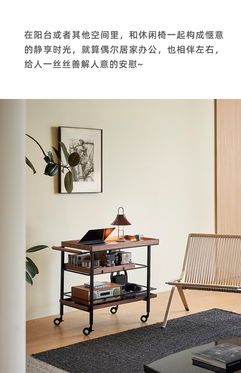 Kona Vans Black Walnut Solid Wood Trolley Storage Coffee Table Simple Living Room Movable Side Table Z Walnut-Ultra Light Aluminum Frame Trolley