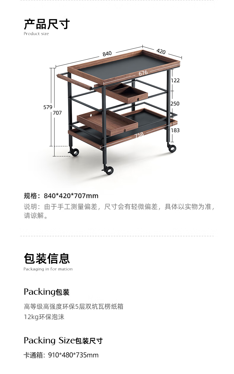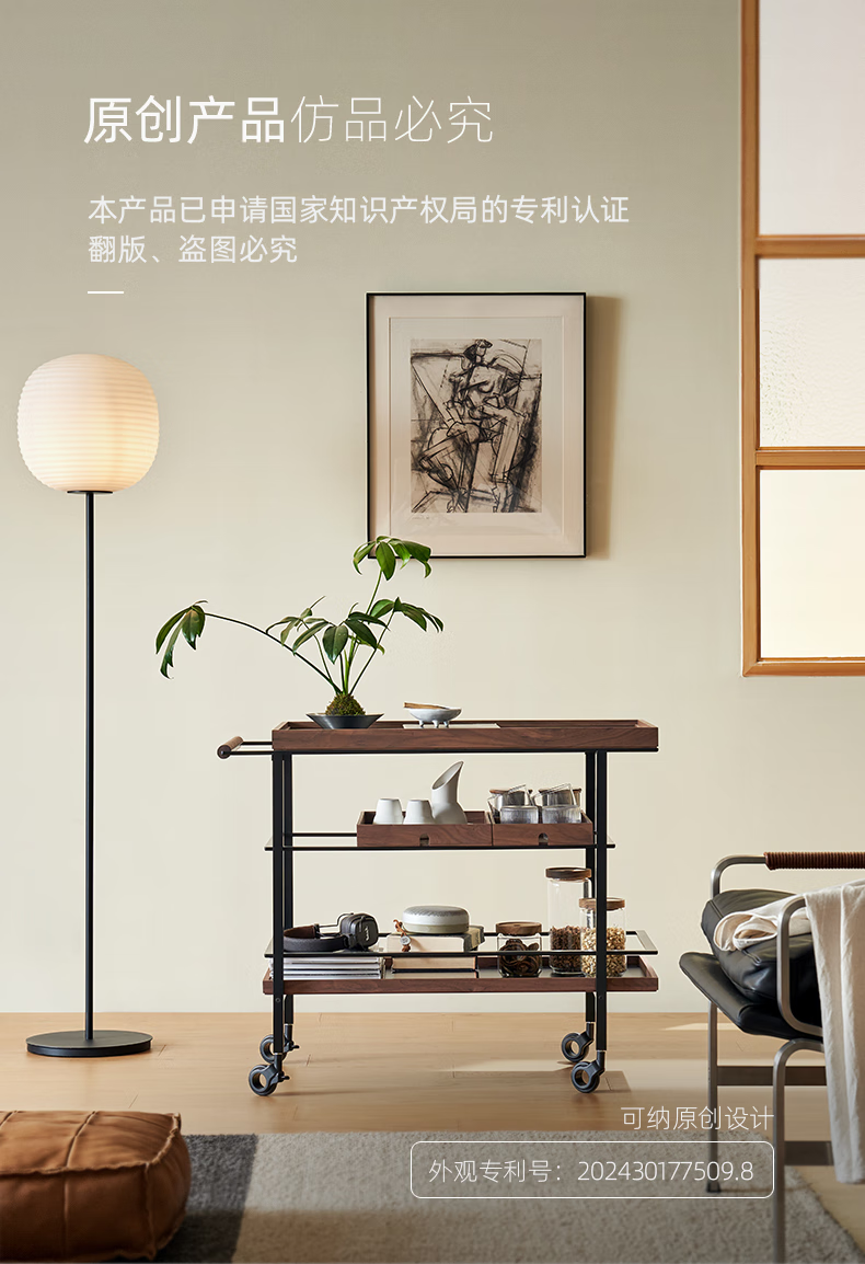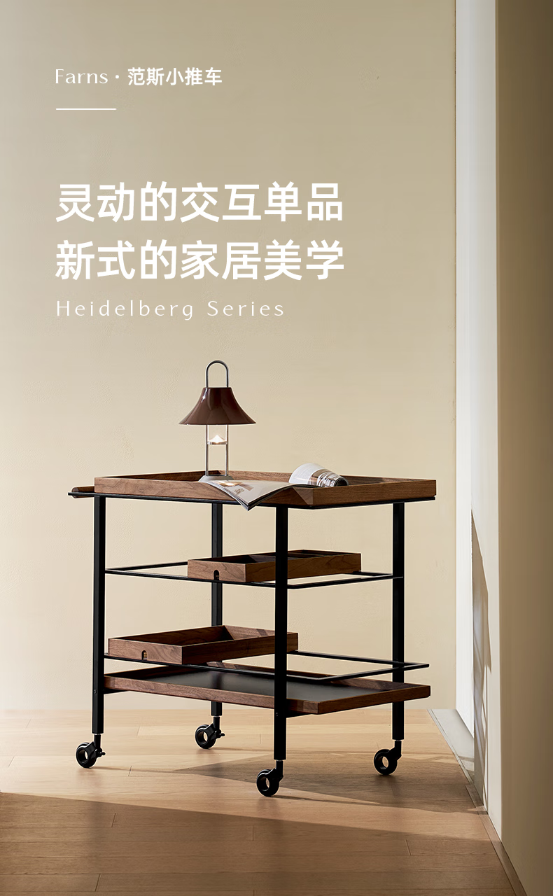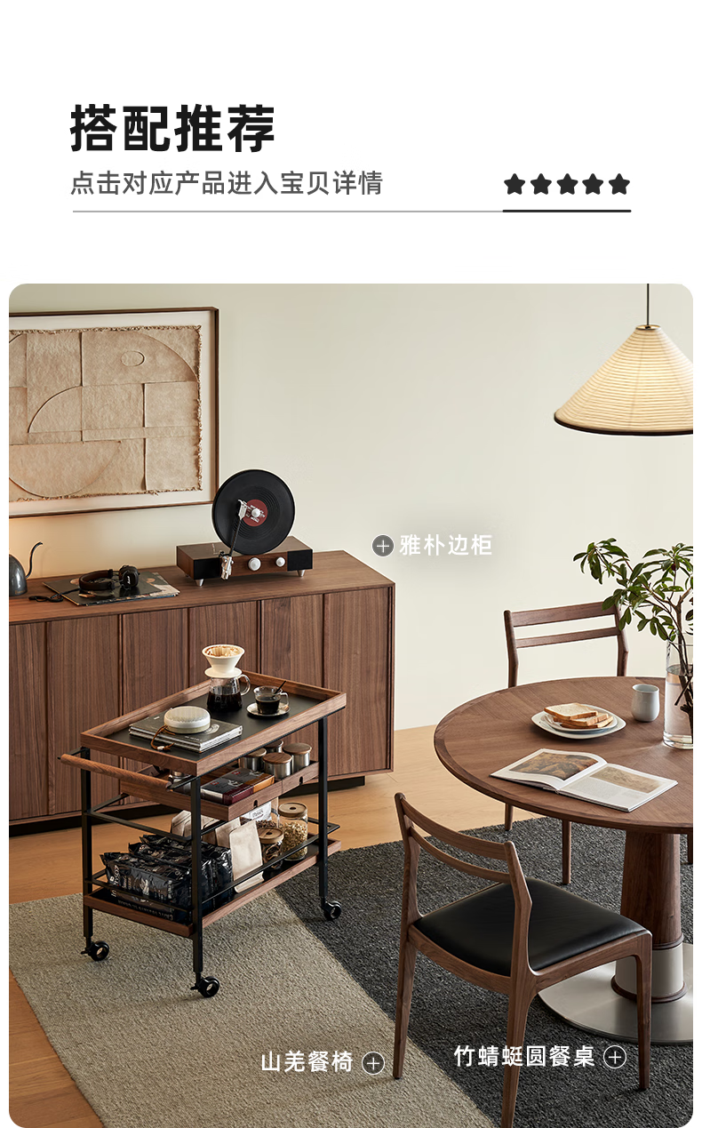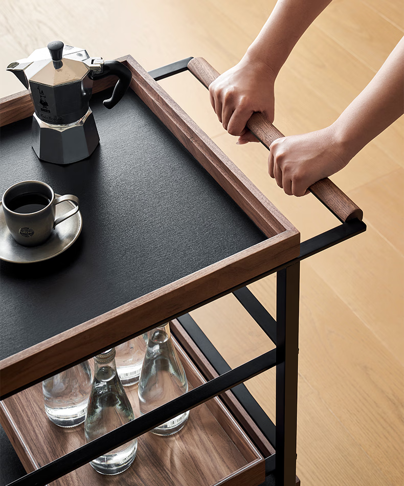 Kona Vans Black Walnut Solid Wood Trolley Storage Coffee Table Simple Living Room Movable Side Table Z Walnut-Ultra Light Aluminum Frame Trolley