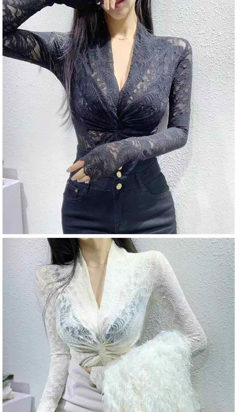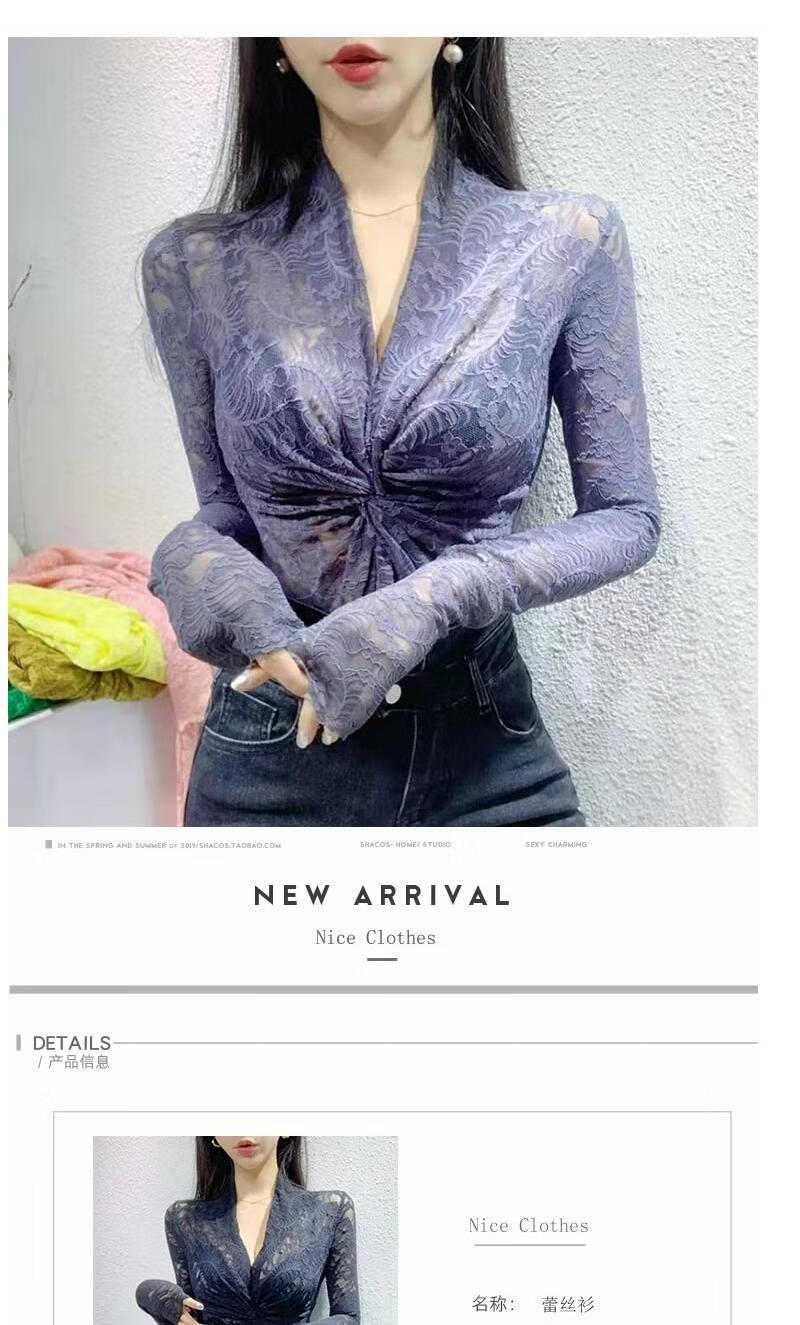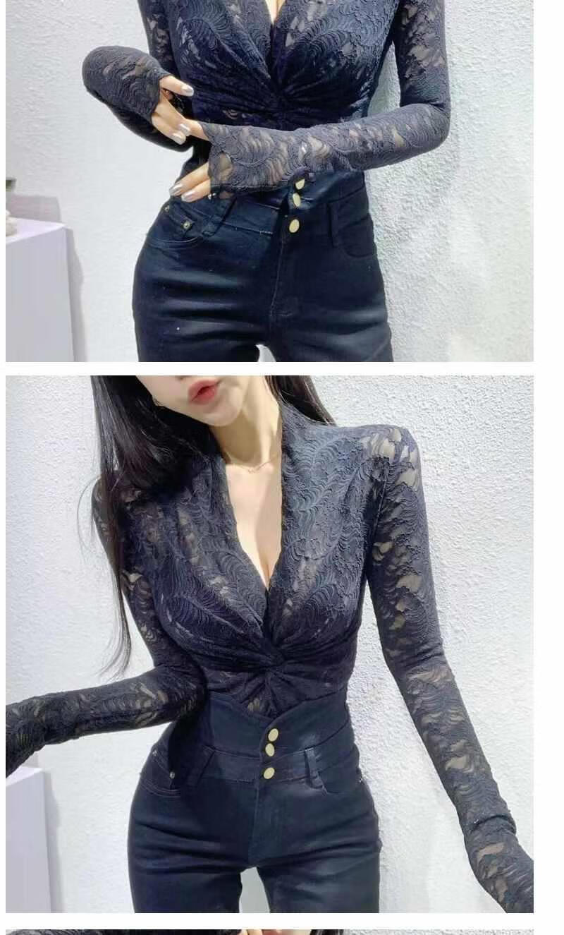 Baichao Sexy V-neck Lace Shirt Women's Long Sleeve 2020 Spring Shirt New Korean Style Slim Fit Western Style Bottoming Shirt Top Black S Recommended for a slim fit of 70-80 pounds