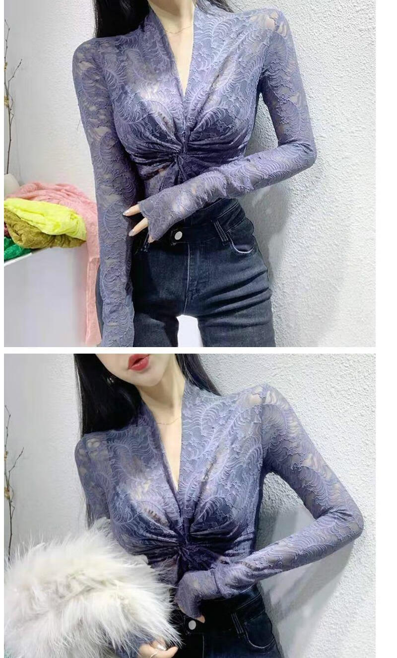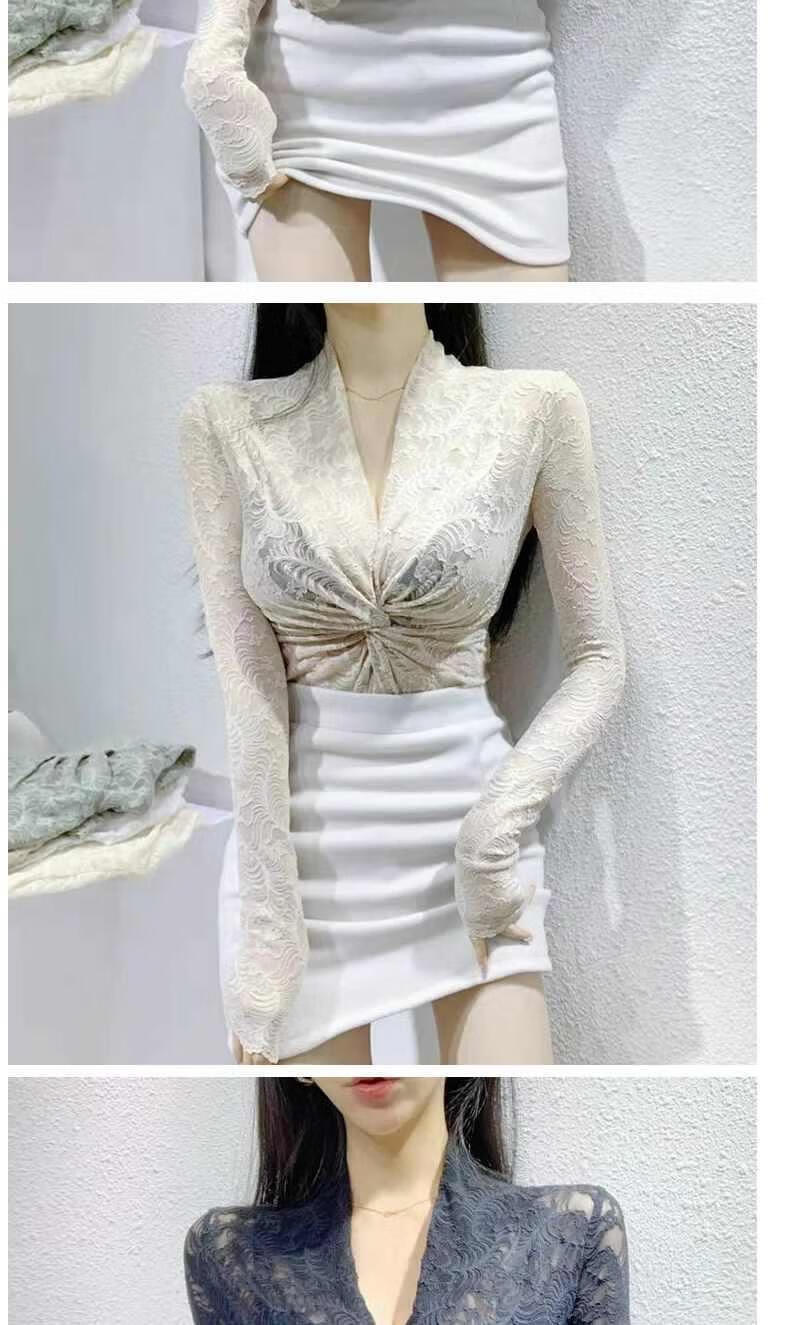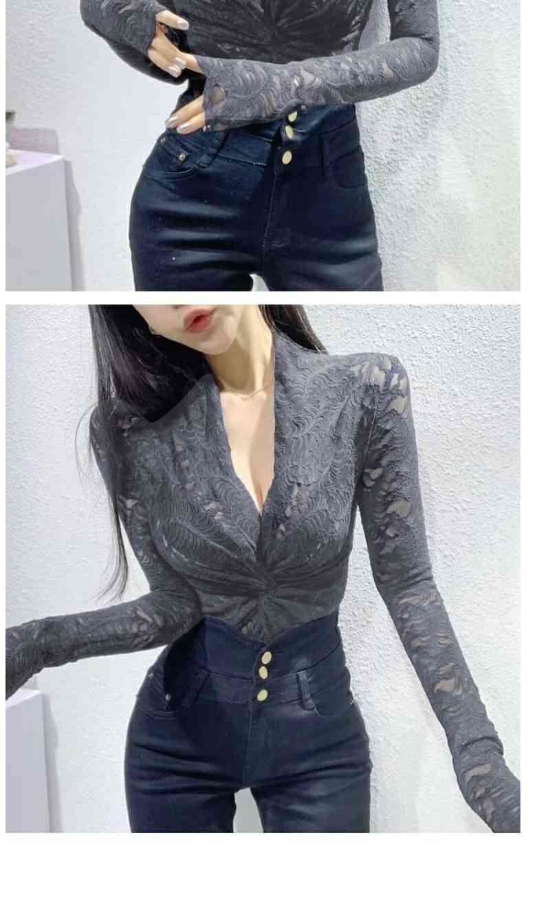 Baichao Sexy V-neck Lace Shirt Women's Long Sleeve 2020 Spring Shirt New Korean Style Slim Fit Western Style Bottoming Shirt Top Black S Recommended for a slim fit of 70-80 pounds