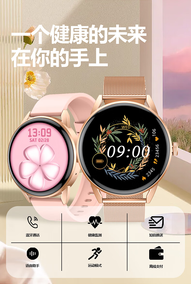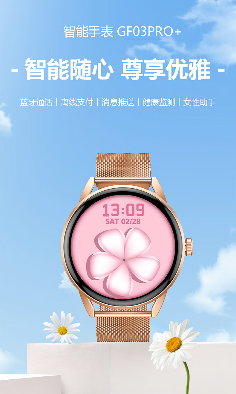 Zhuodi is suitable for Apple machines and Huawei machines. Goddess gift. 2026 new women's smart watch. Valentine's Day gift. Huaqiangbei Bluetooth phone message reminder. Sports payment. Noble gold. 24h health monitoring. Payment. HD call. Voice assistant.