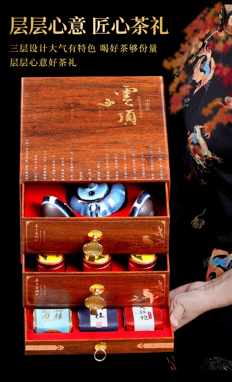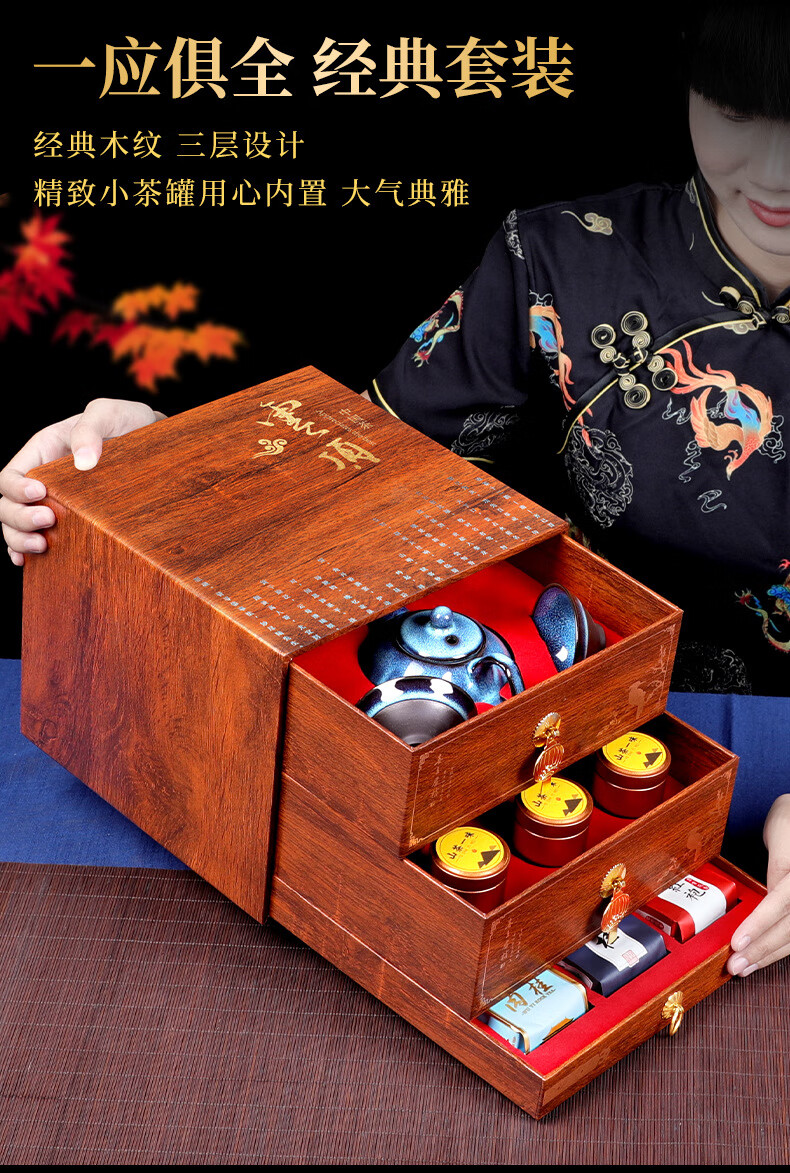 Chajin Junmei black tea Dahongpao Tieguanyin tea gift box high-end gift giving Douyin Kuaishou one generation to rule the world Tieguanyin