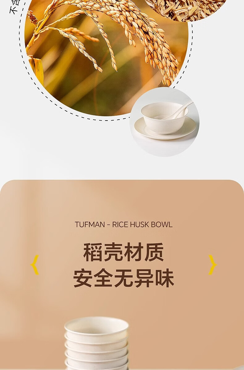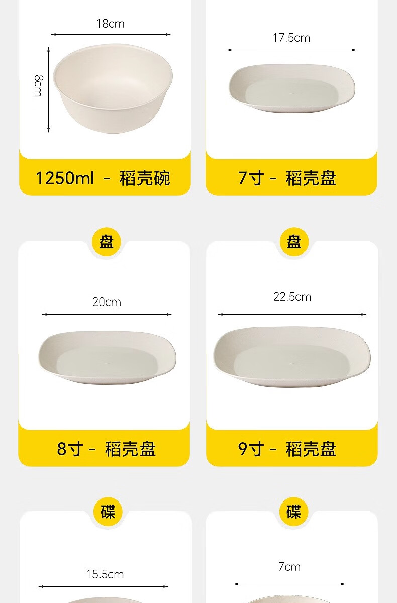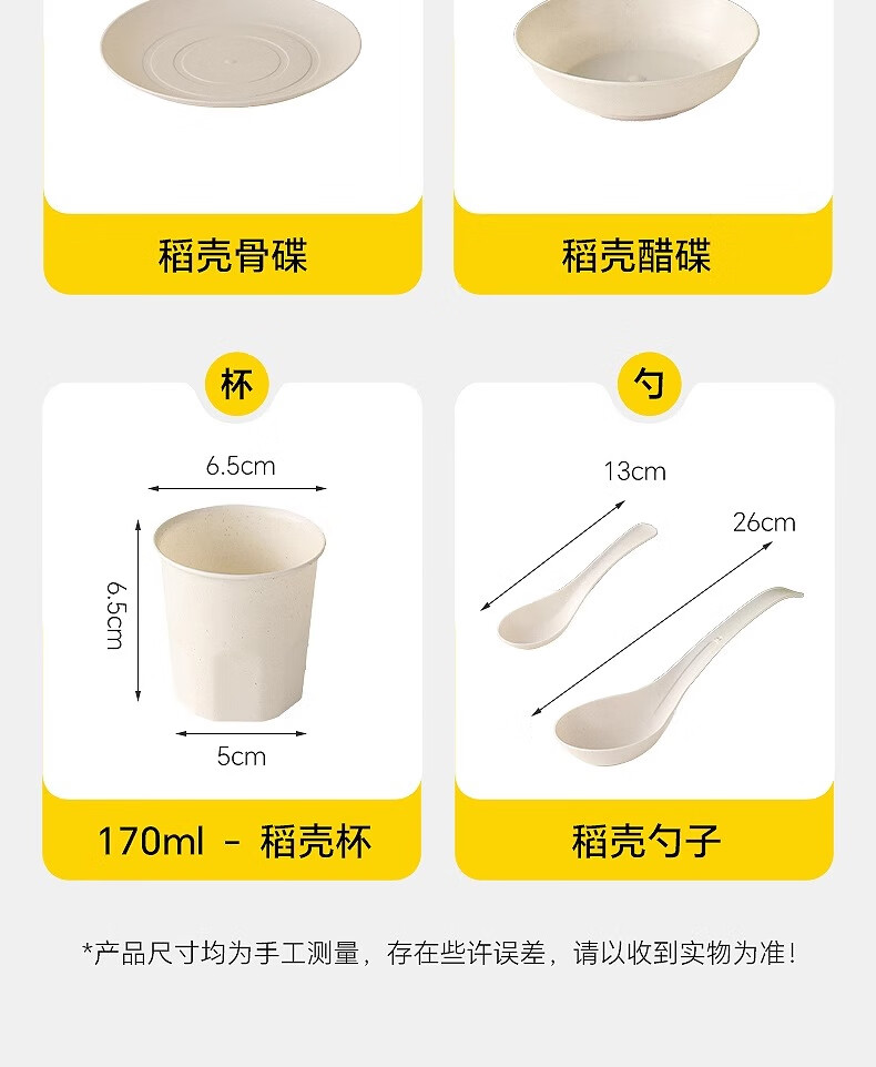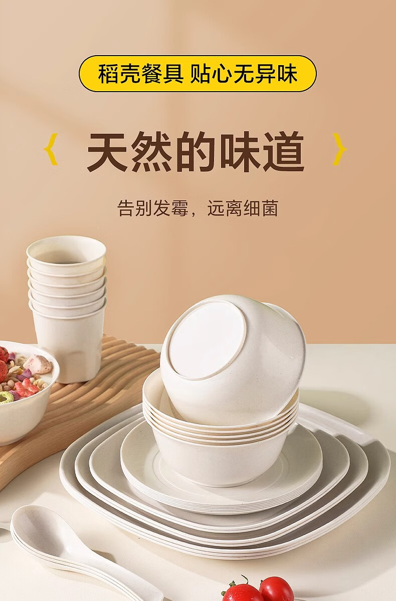 Yuling disposable tableware set spoon cup rice husk biodegradable food grade household commercial picnic four-five piece set four-piece set 10 sets individually packed bowl + cup + saucer + spoon