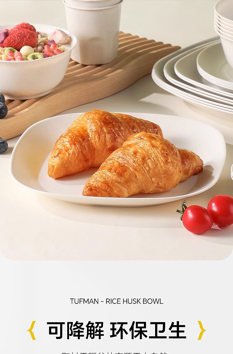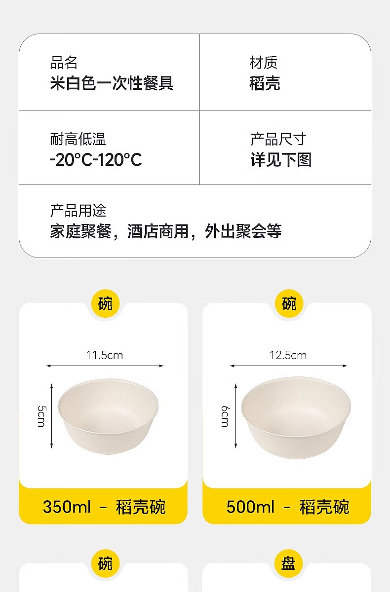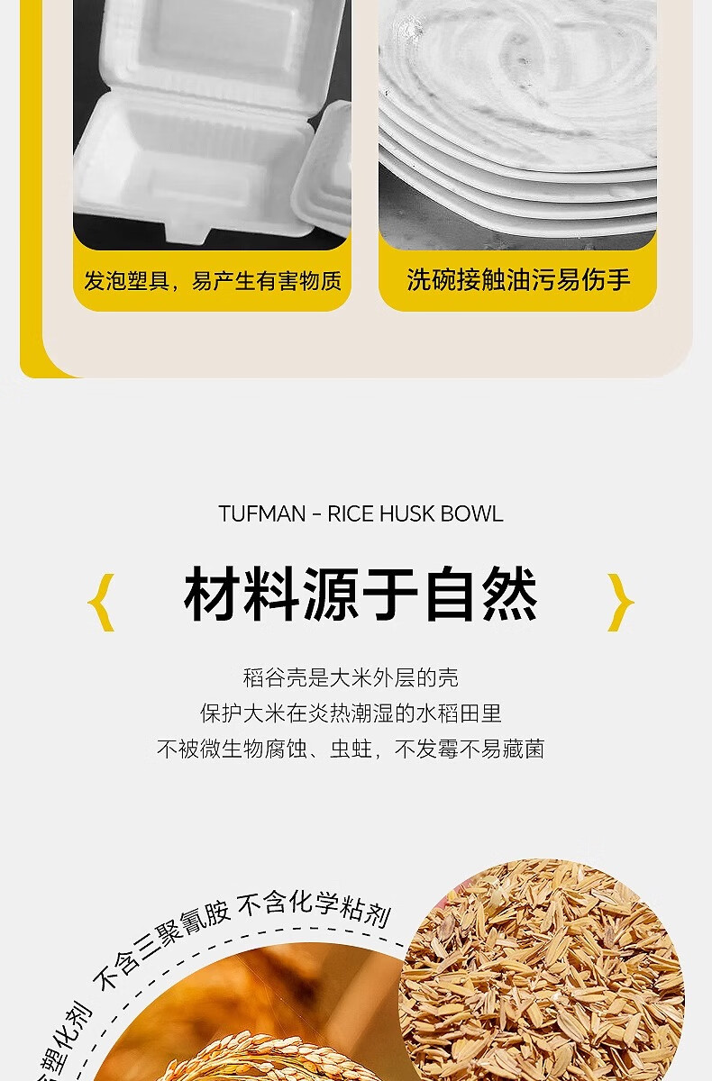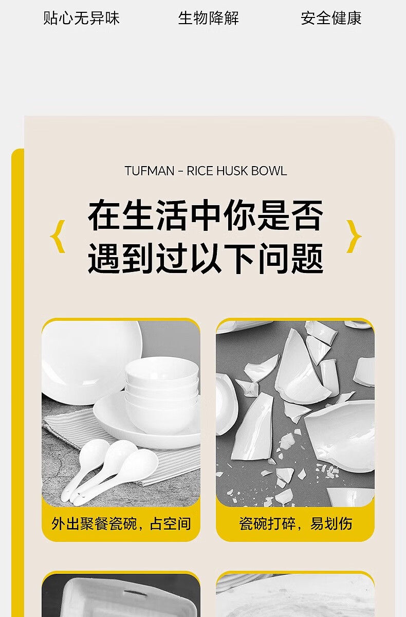 Yuling disposable tableware set spoon cup rice husk biodegradable food grade household commercial picnic four-five piece set four-piece set 10 sets individually packed bowl + cup + saucer + spoon