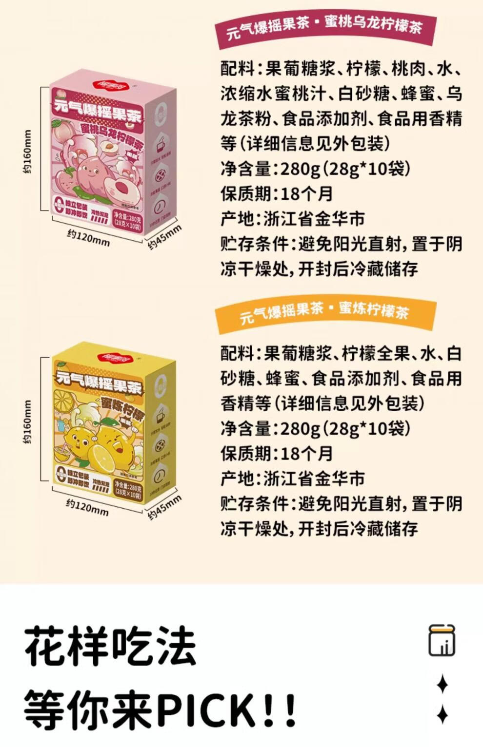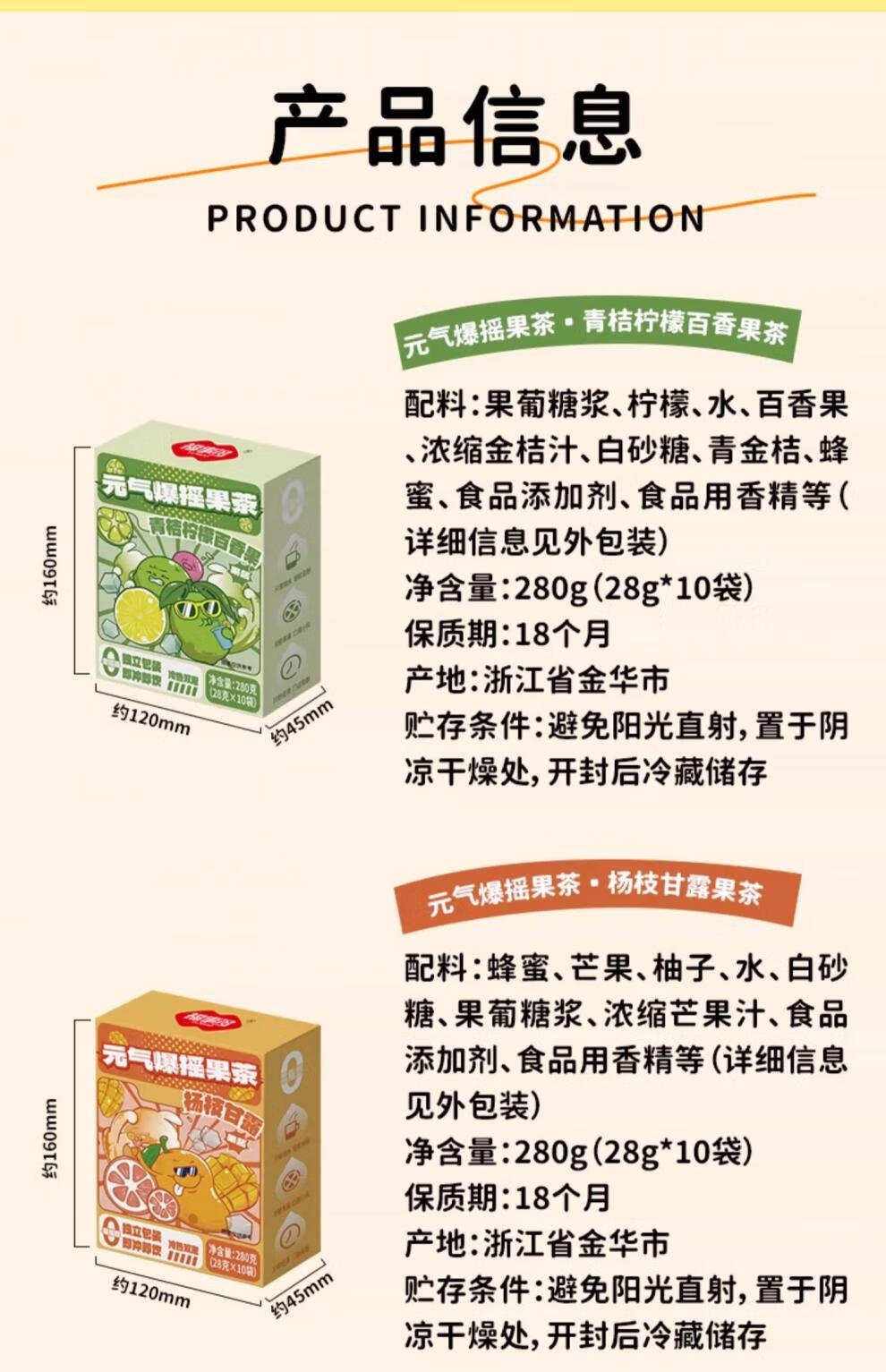 Bliss Multi-energy Explosive Shake Fruit Tea Green Orange Lemon Passion Fruit Tea Honey Refined Lemon Tea Drink Poplar Nectar Tea Poplar Nectar + Peach Oolong 1 box each