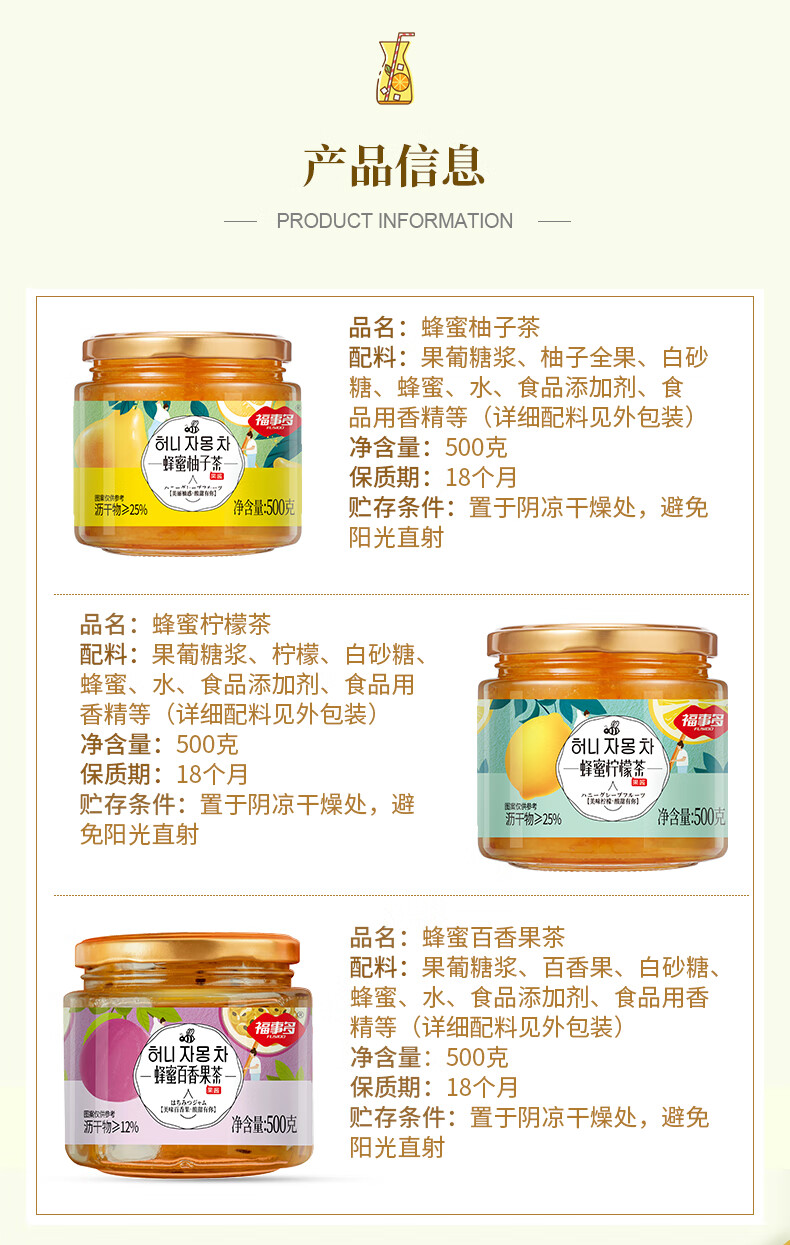 Fushido Honey Grapefruit Tea Lemon Passion Fruit Tea Make something to drink with water Jam Tea Honey Passion Fruit Tea 240g/can