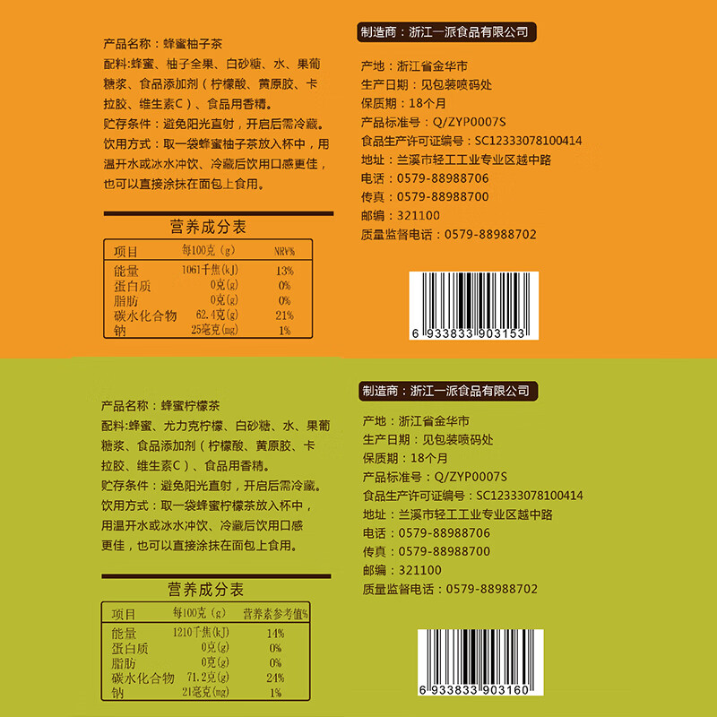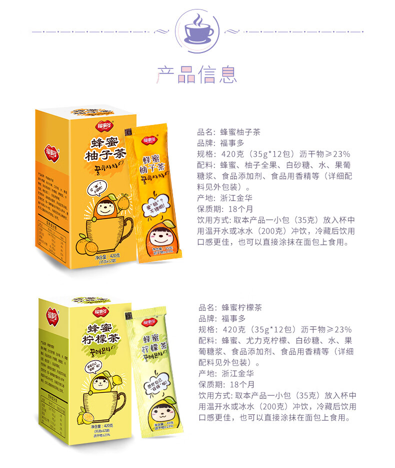 Fushiduo honey grapefruit lemon tea portable fruit tea brewed with water for brewing grapefruit tea 450g + lemon tea 450g