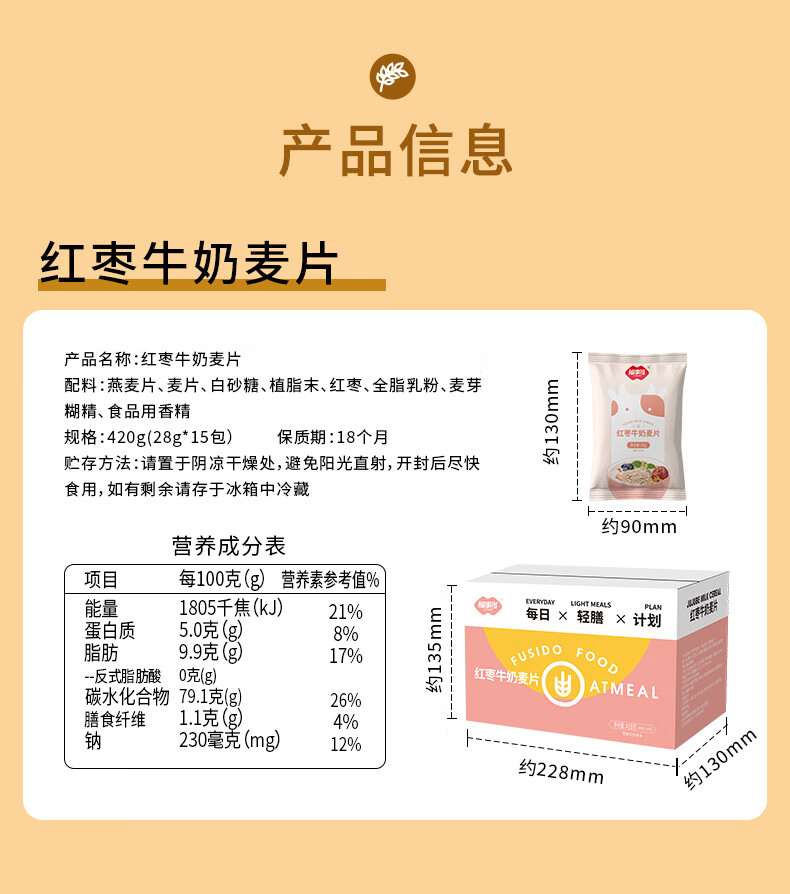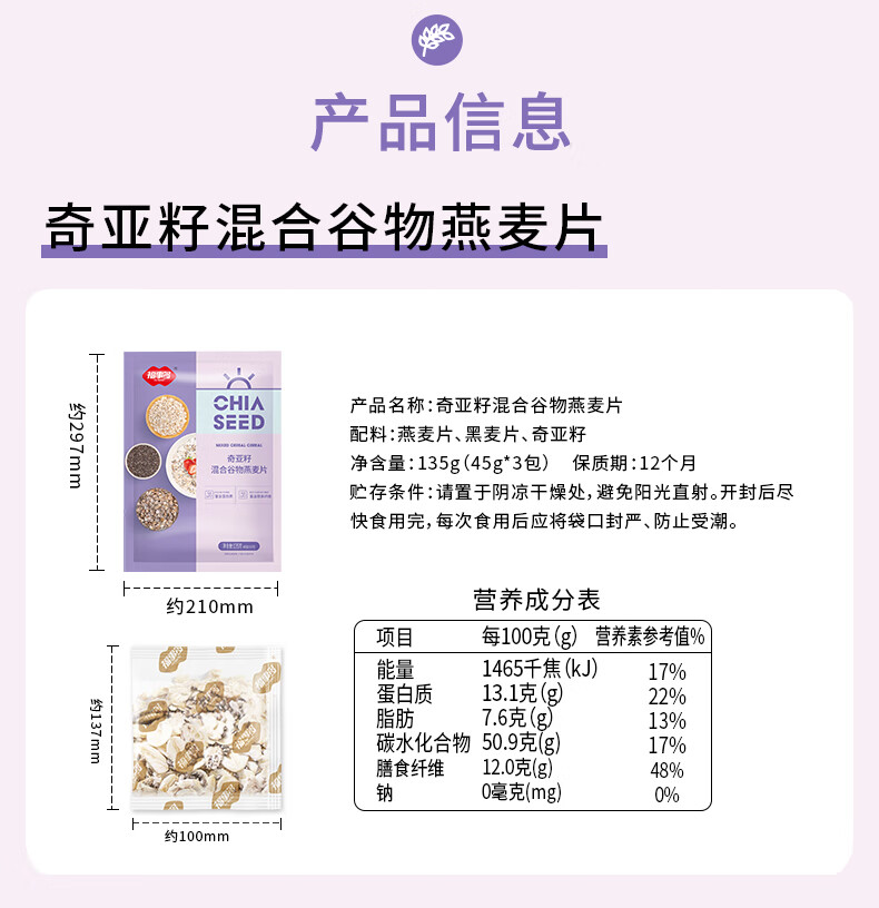 Fushido High Fiber Oatmeal Nutritious Breakfast Drink Ready-to-Eat Chia Seed Cereal Instant Infusion Chia Seed Cereal Oatmeal 135g*2 Bags