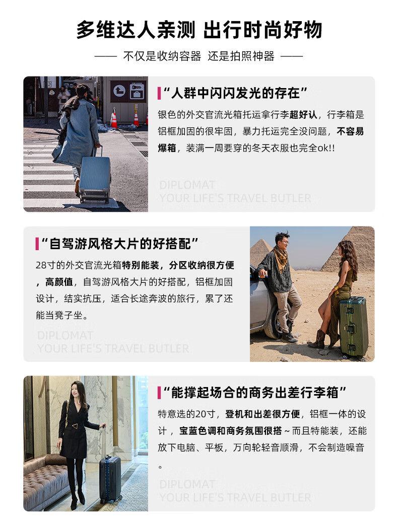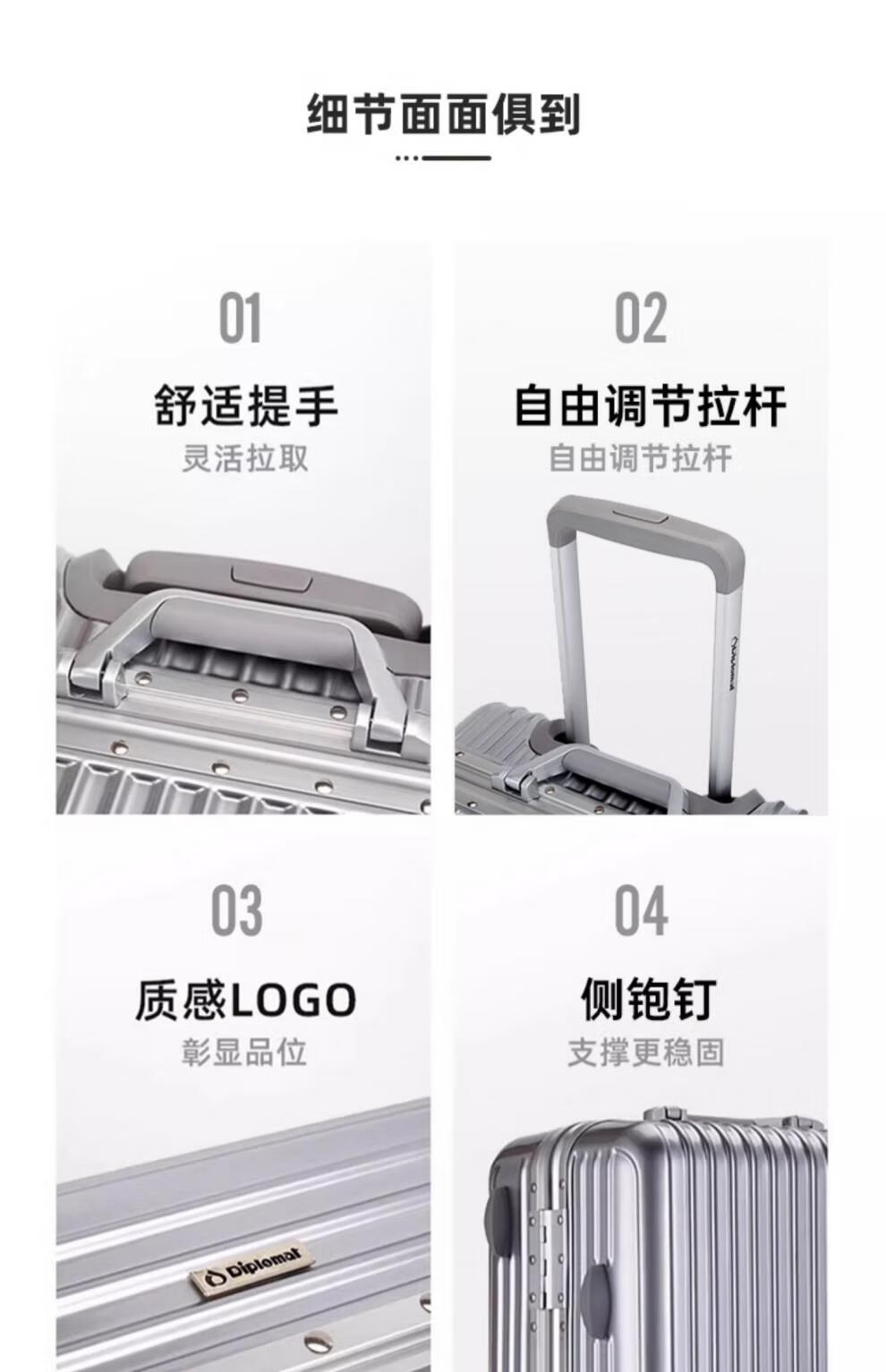 Diplomat Diplomat Luggage Aluminum Frame Streamer Trolley Case Men's and Women's Suitcase Password Box Silver Case Cover 20 Inch Carry-on Suitable for 1-5 Days Short Trip