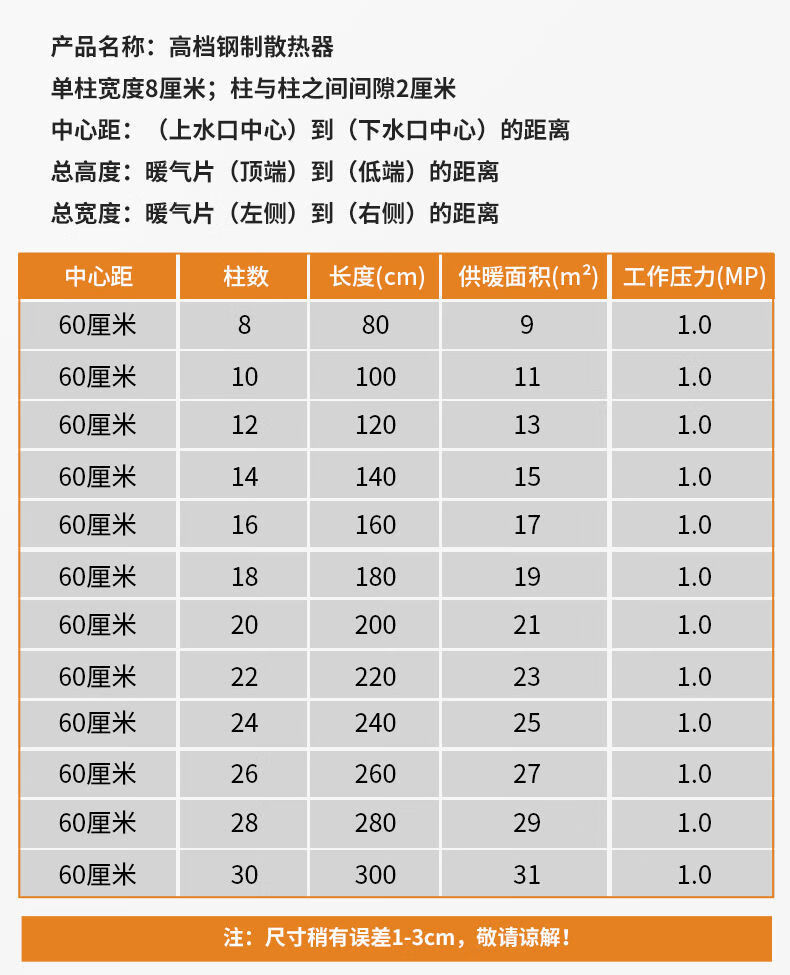 DIONO household carbon steel radiator 8050 steel thickened water heating radiator hanging radiator central heating heater center distance 60 6 columns low carbon steel radiator wall thickness 1.8