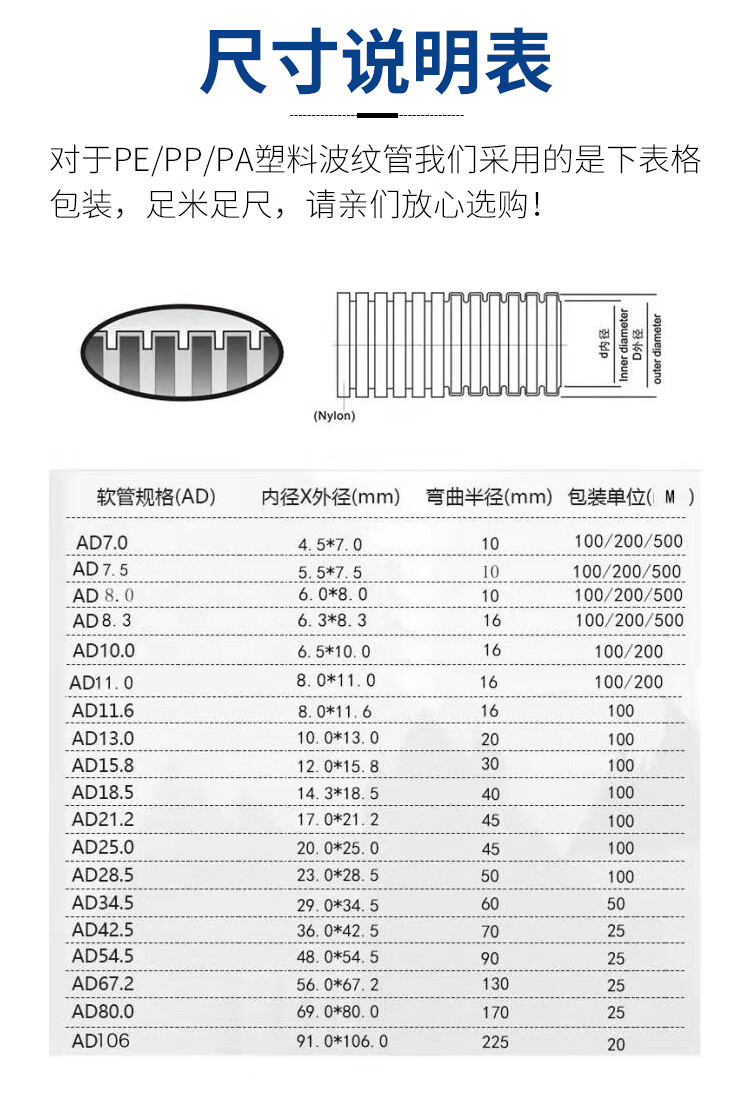 Huili material corrugated pipe pe threading hose wire and cable pa flame retardant pipe protective sleeve threaded pipe hose PE ordinary AD13 (inner diameter 10) 100 meters price
